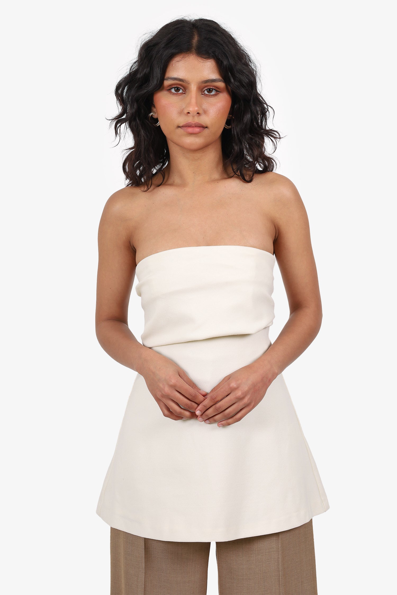 Refresh availabilityToteme White Wool-Blend Sleeveless Top. Pull-on. Rear zip closure. Interior rubber grip on top hem. Lined interior. Tonal stitching.
