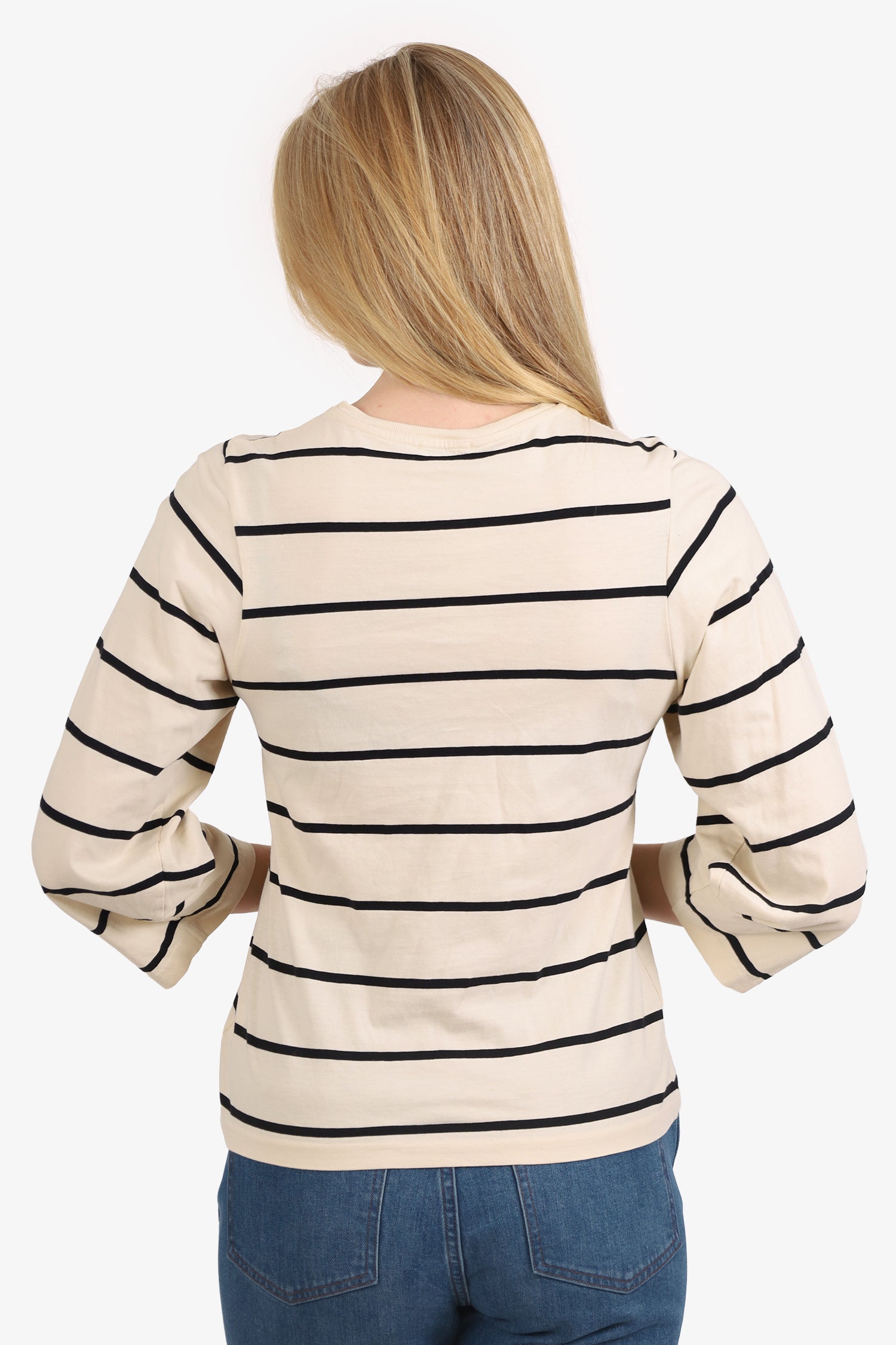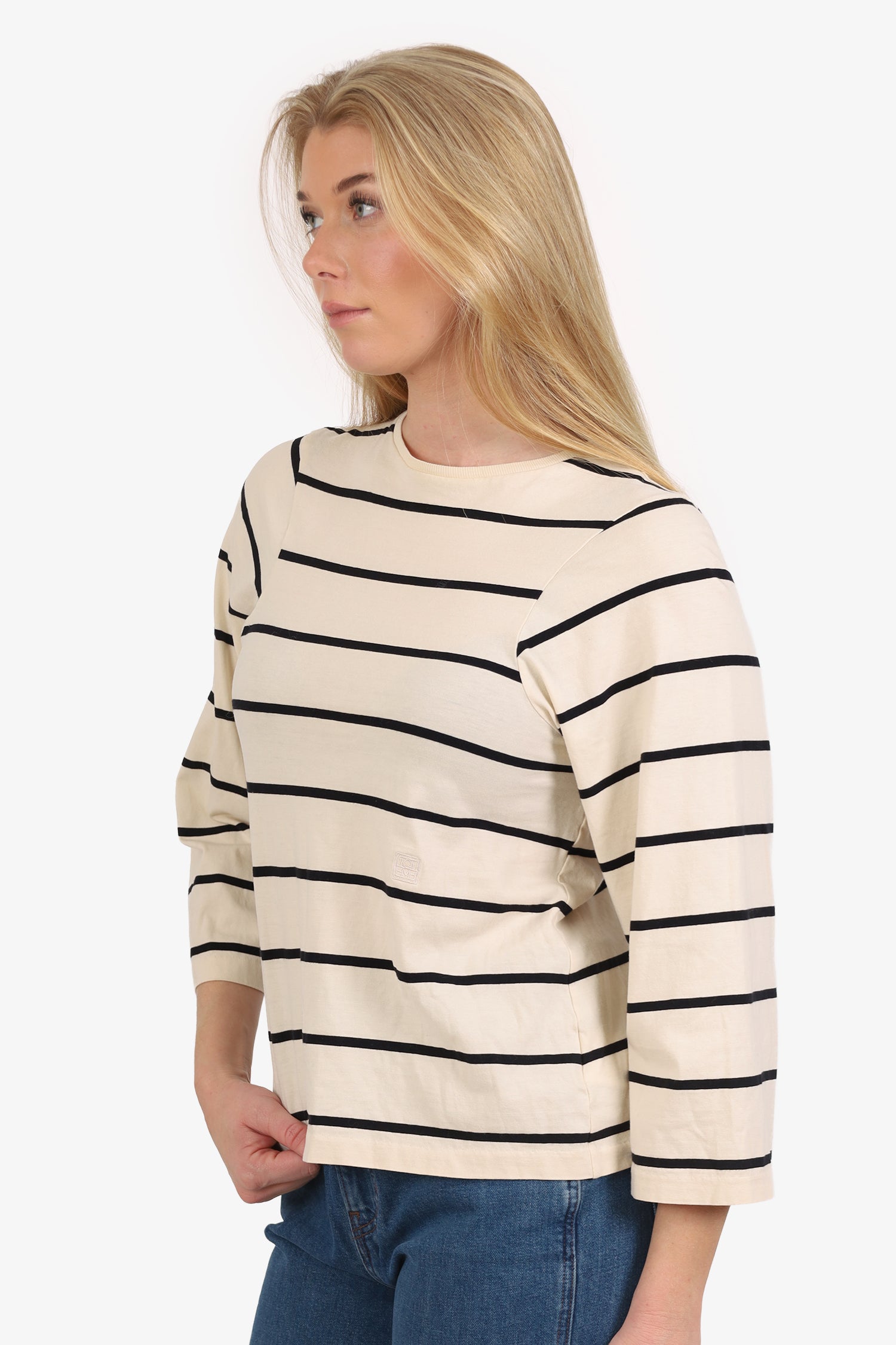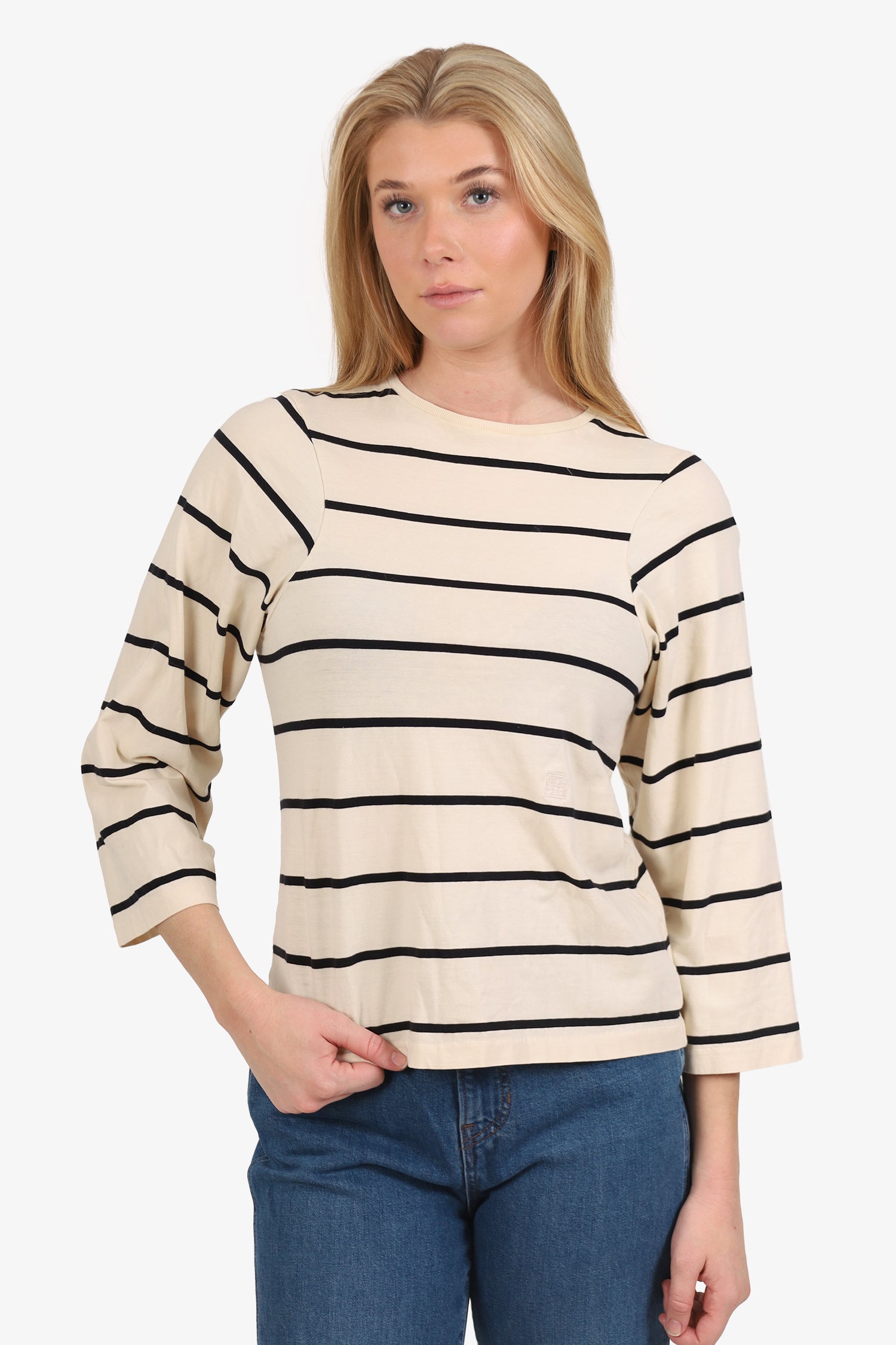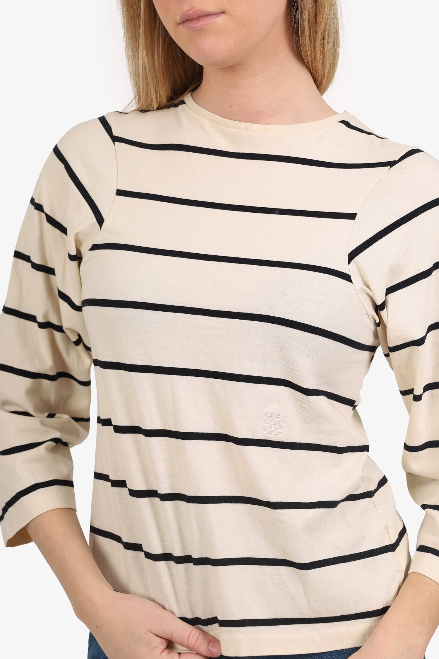 Refresh availabilityToteme White/Black Striped Logo Embroidery Long Sleeve Top. Pull-on. Round neckline. Tonal stitching.