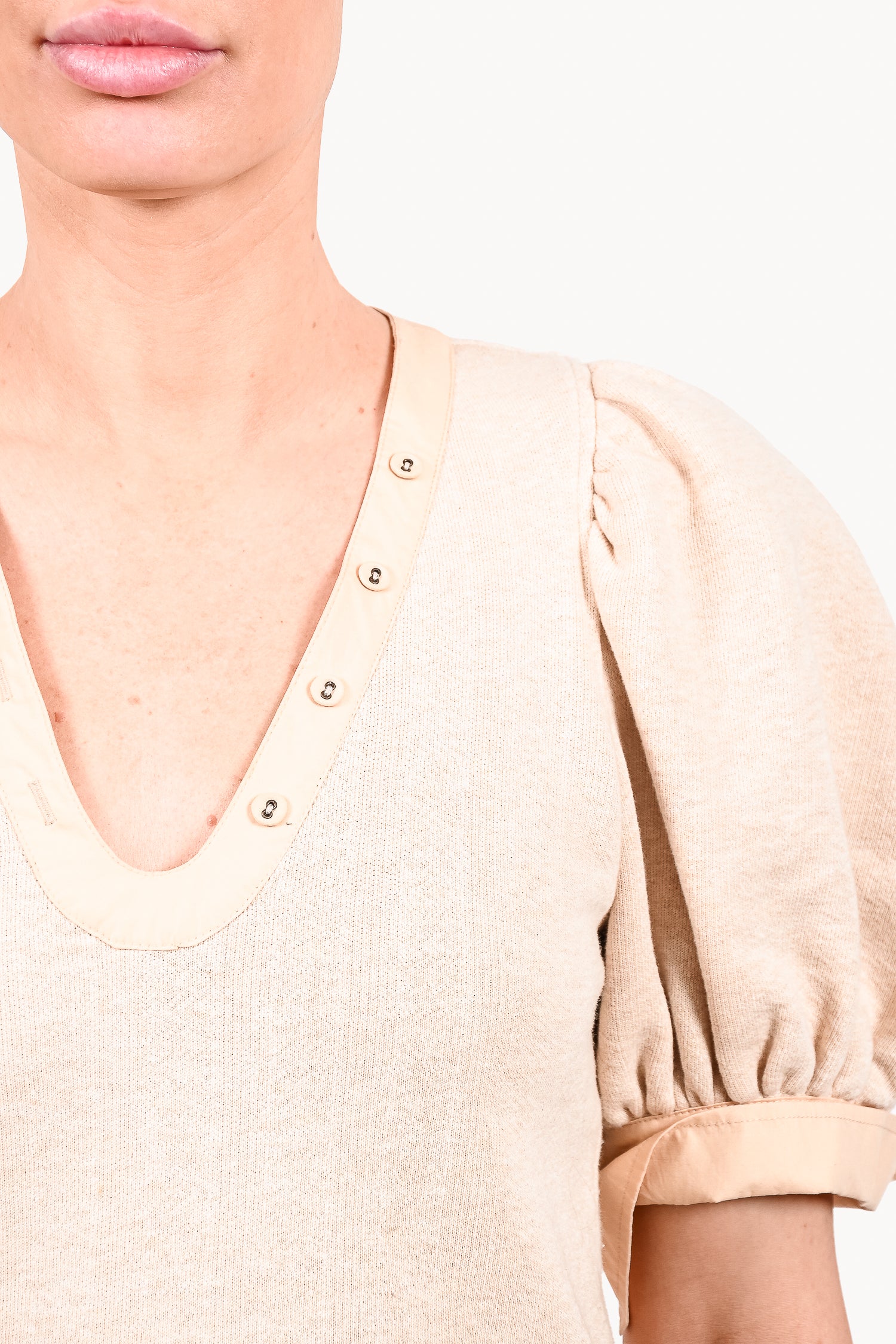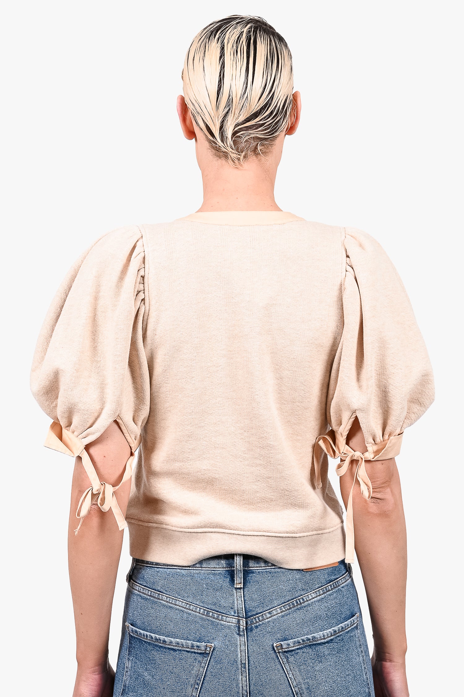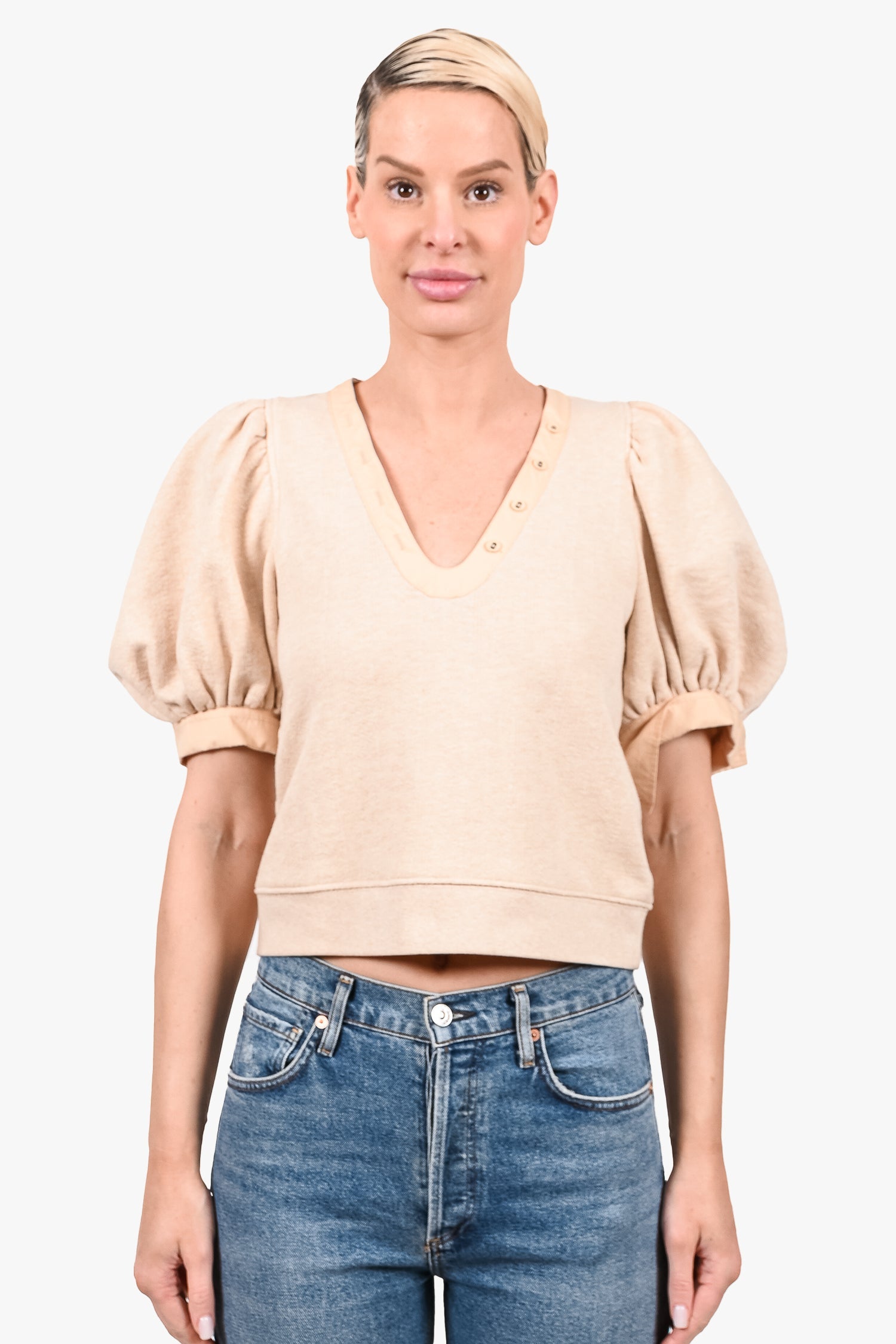 Ulla Johnson Beige Cotton Knit Puff Sleeve 'Pia' Top