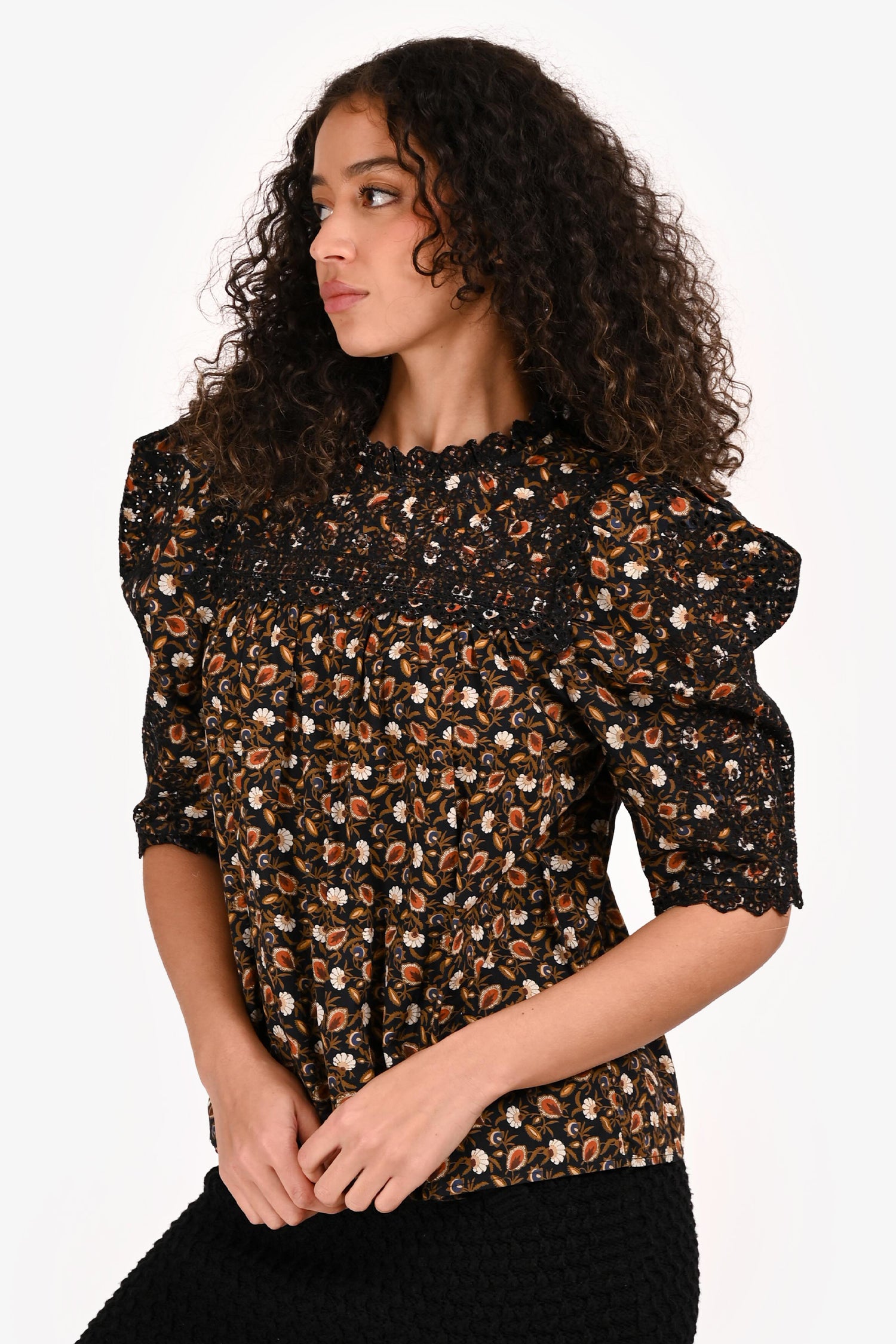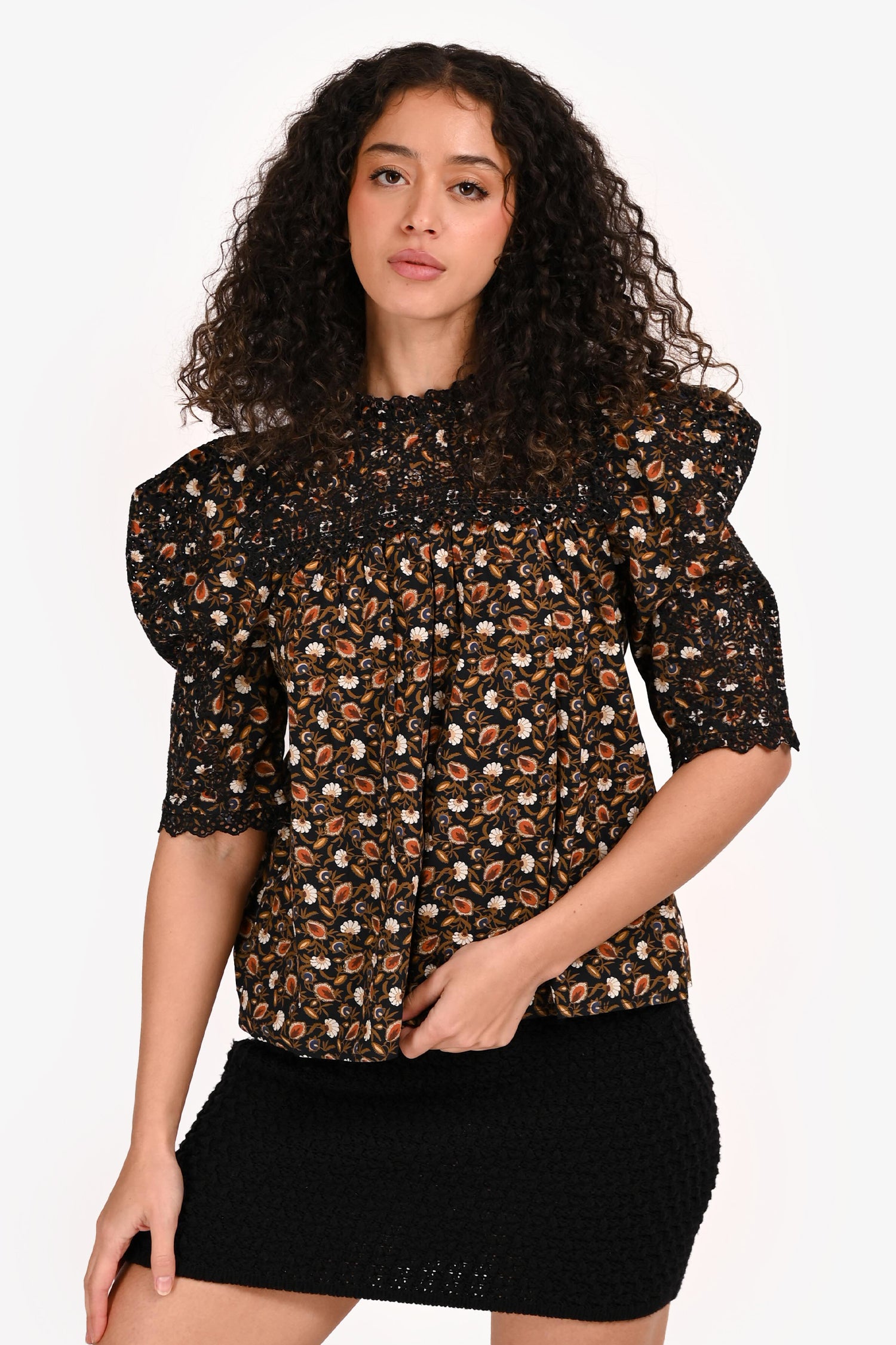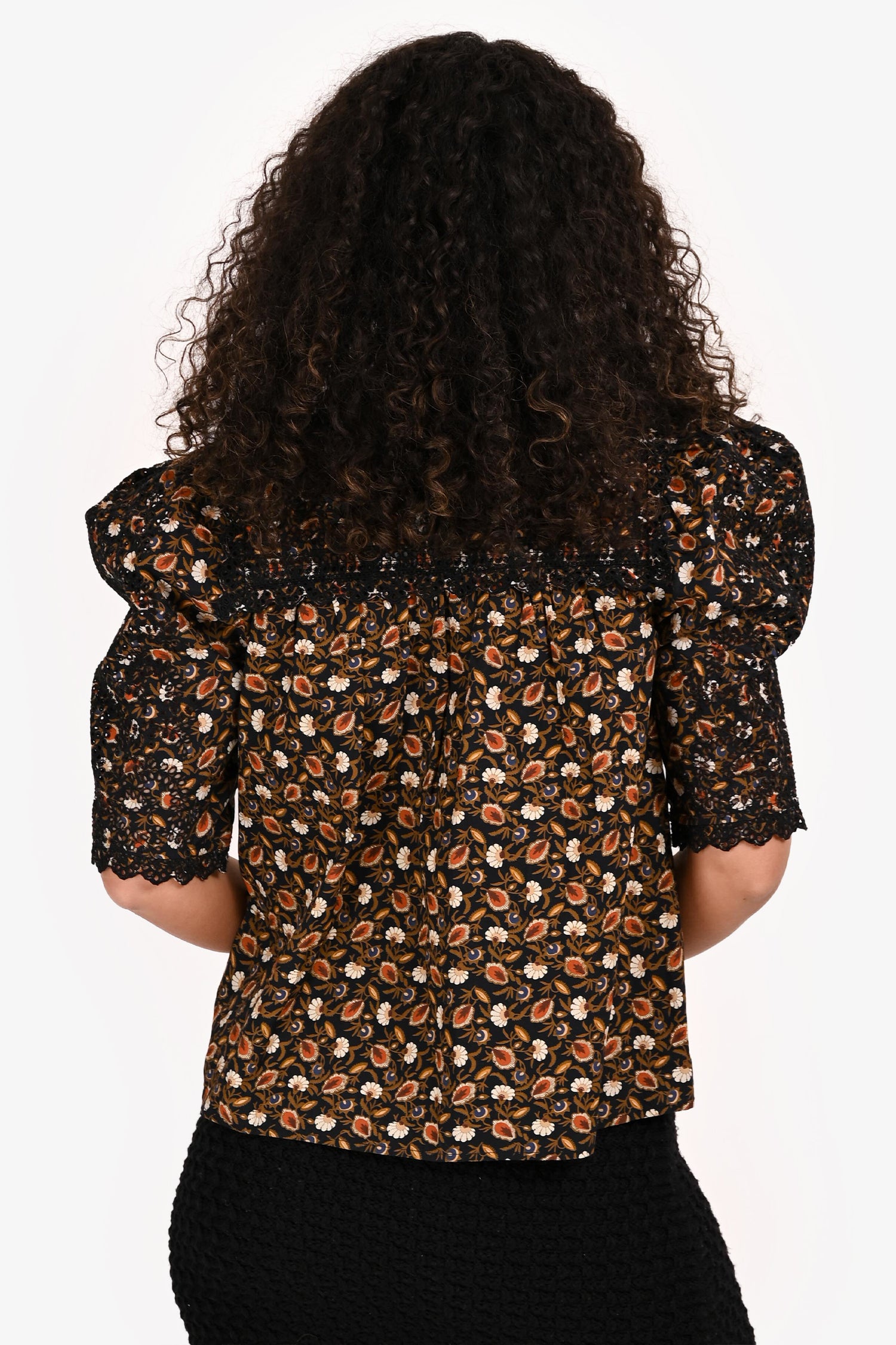 Ulla Johnson Black Floral Eyelet Short Sleeve Top Size 4