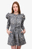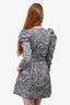 Ulla Johnson Blue/Cream Printed Denim Puff Sleeve Belted Mini Dress Size 0