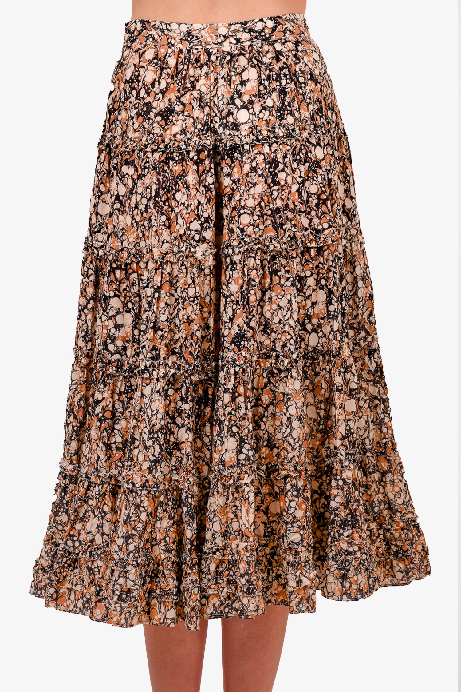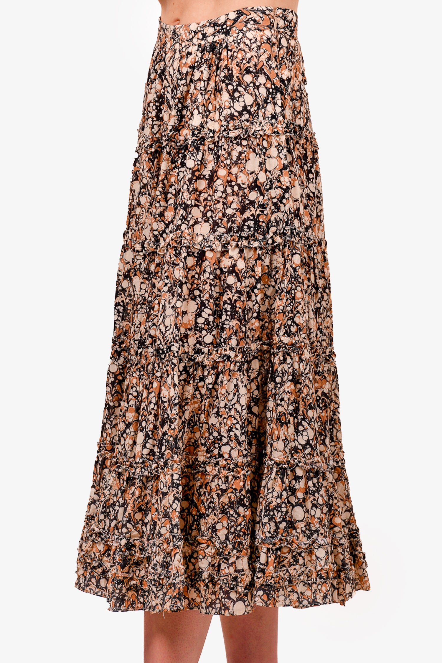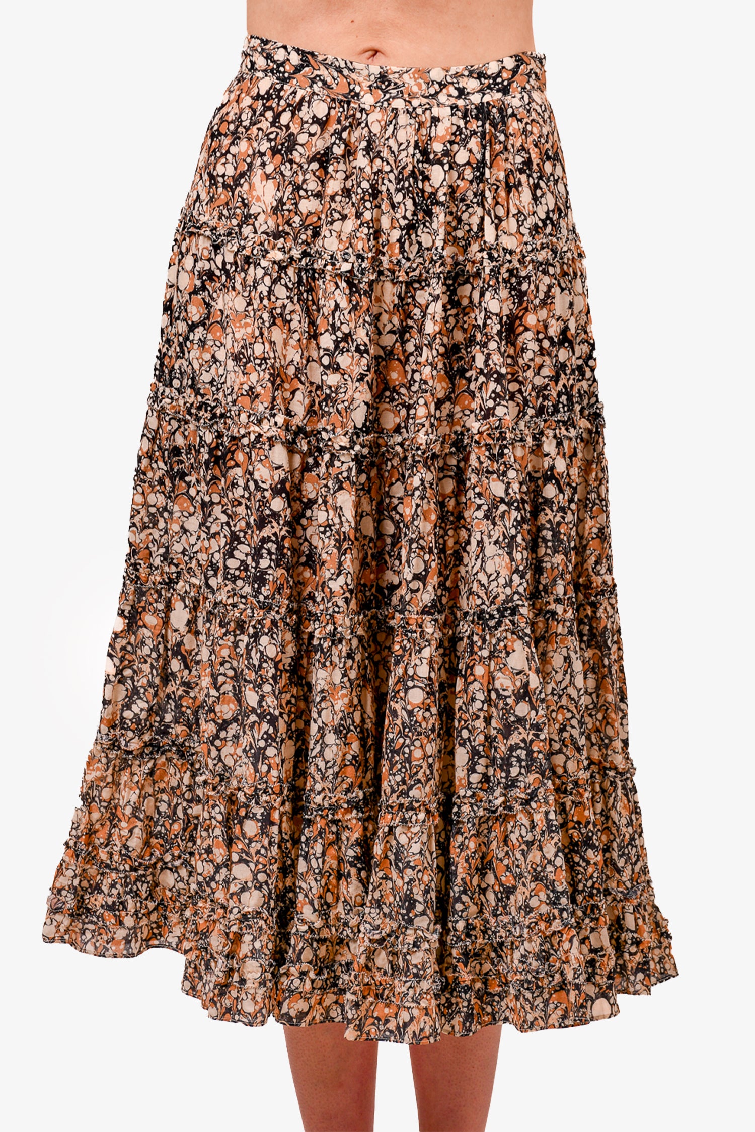 Ulla Johnson Brown Patterned Raffle Midi Skirt Size 2