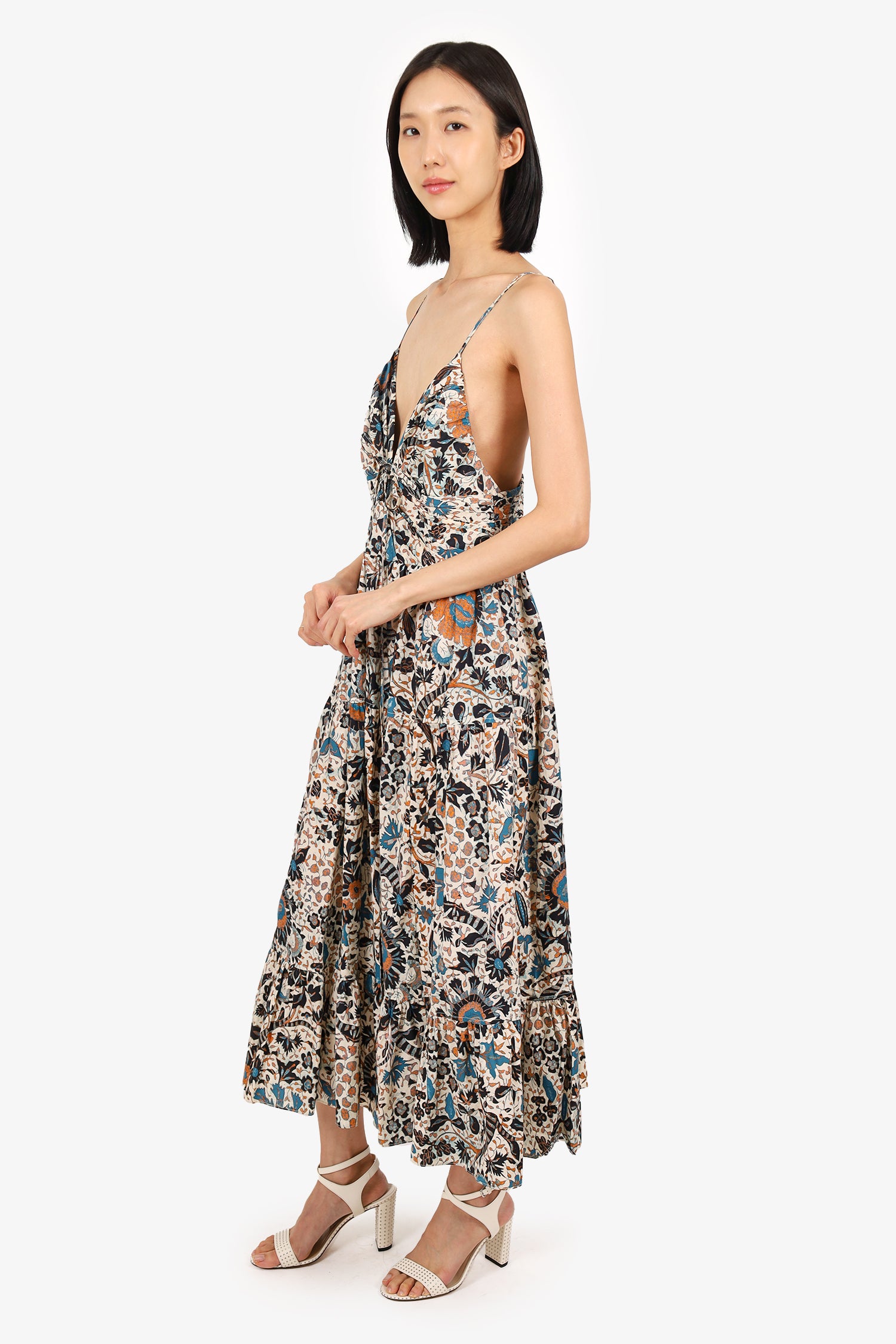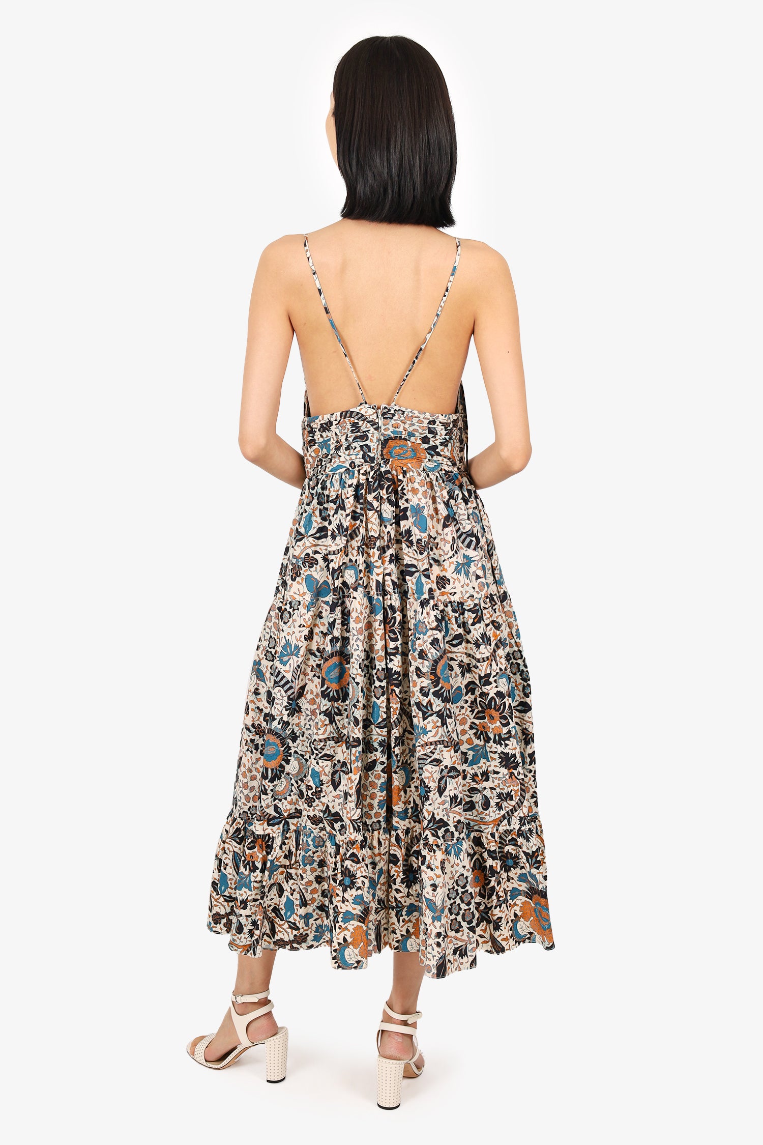 Ulla Johnson Cream/Orange Floral Printed Stappy Midi Dress Size 6