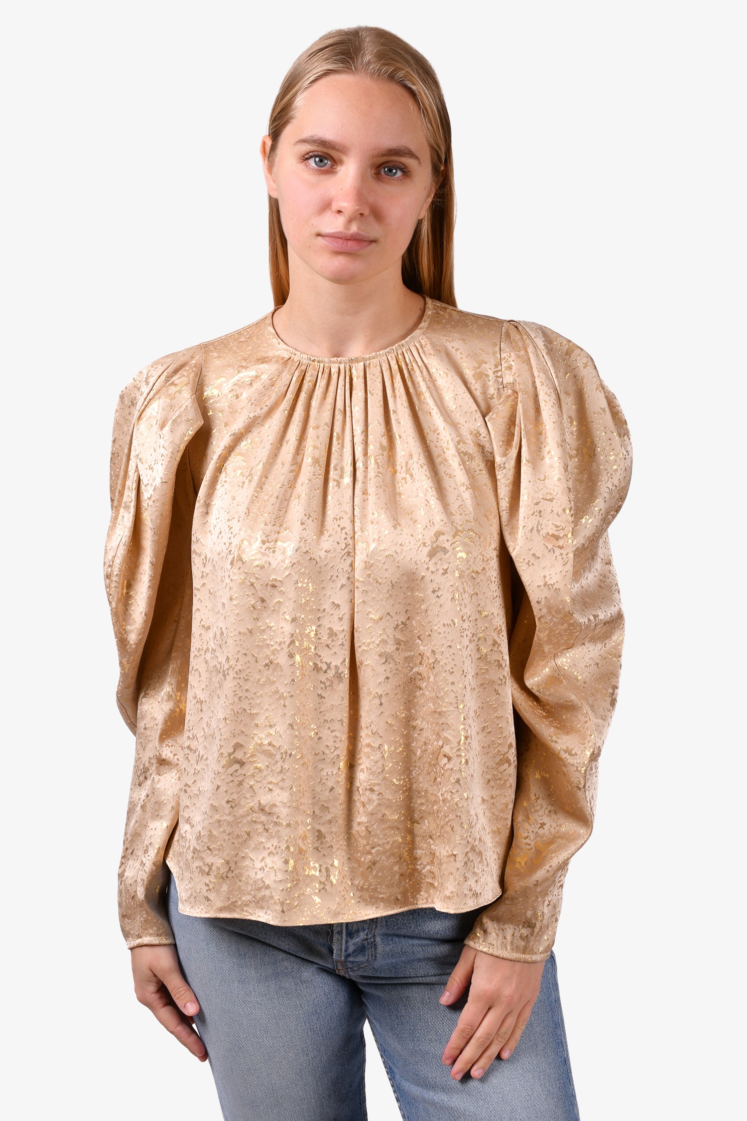 Ulla Johnson Gold Silk Blend Puff Blouse Size 2