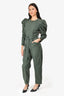 Ulla Johnson Green Denim Puff Sleeve Belted Jumpsuit Size 6