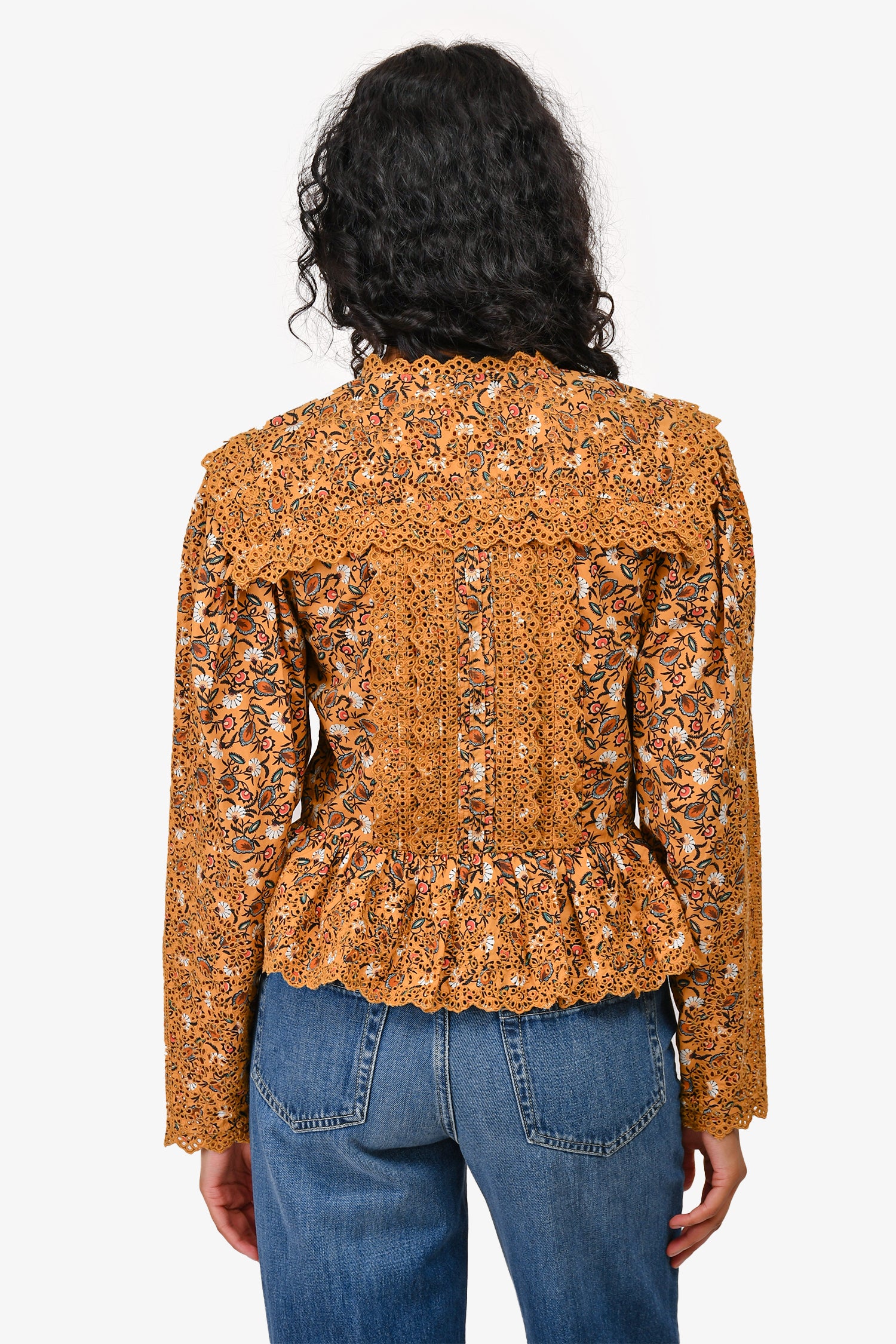 Ulla Johnson Mustard Printed Eyelet Detail Blouse Size 4