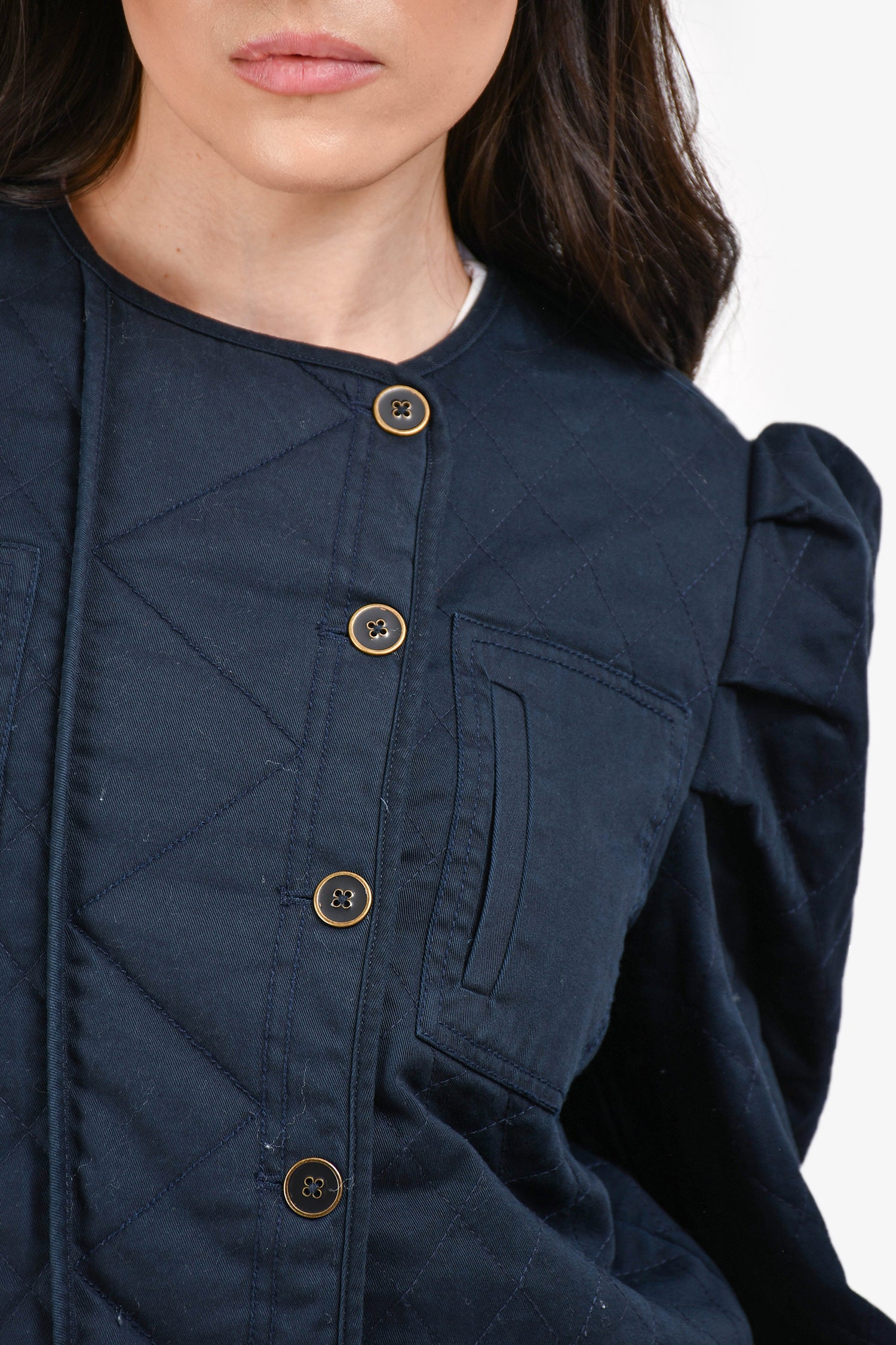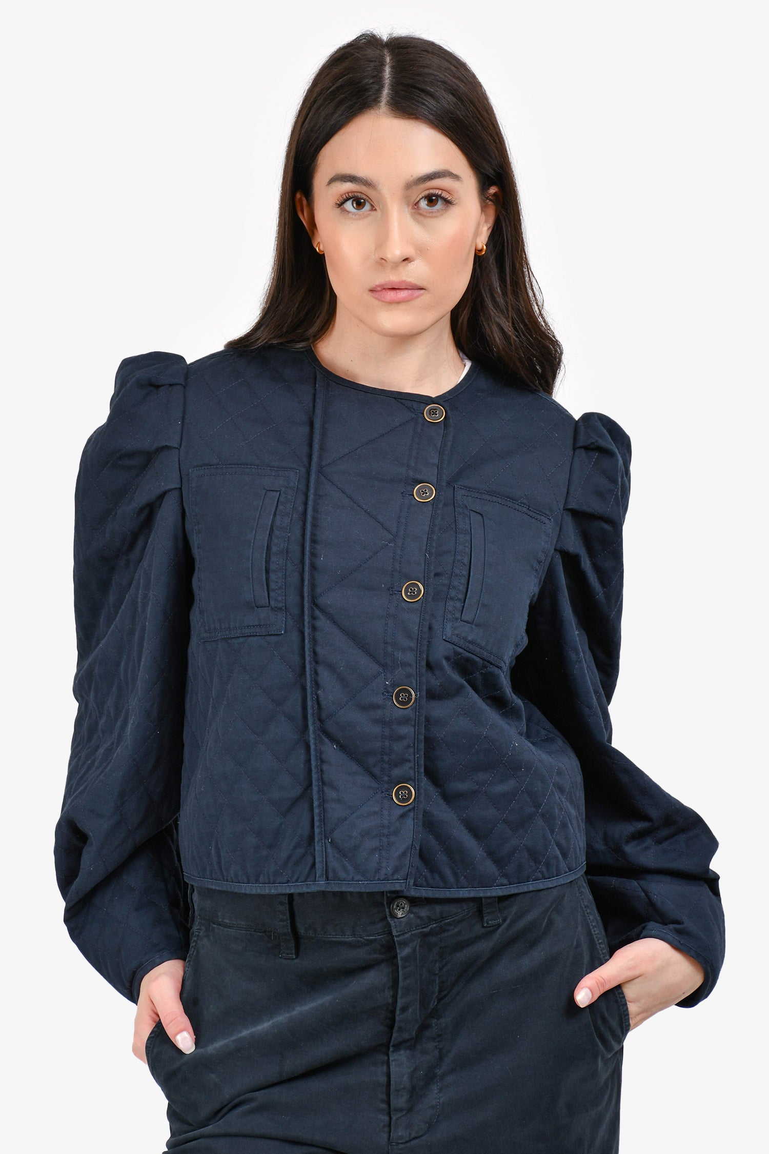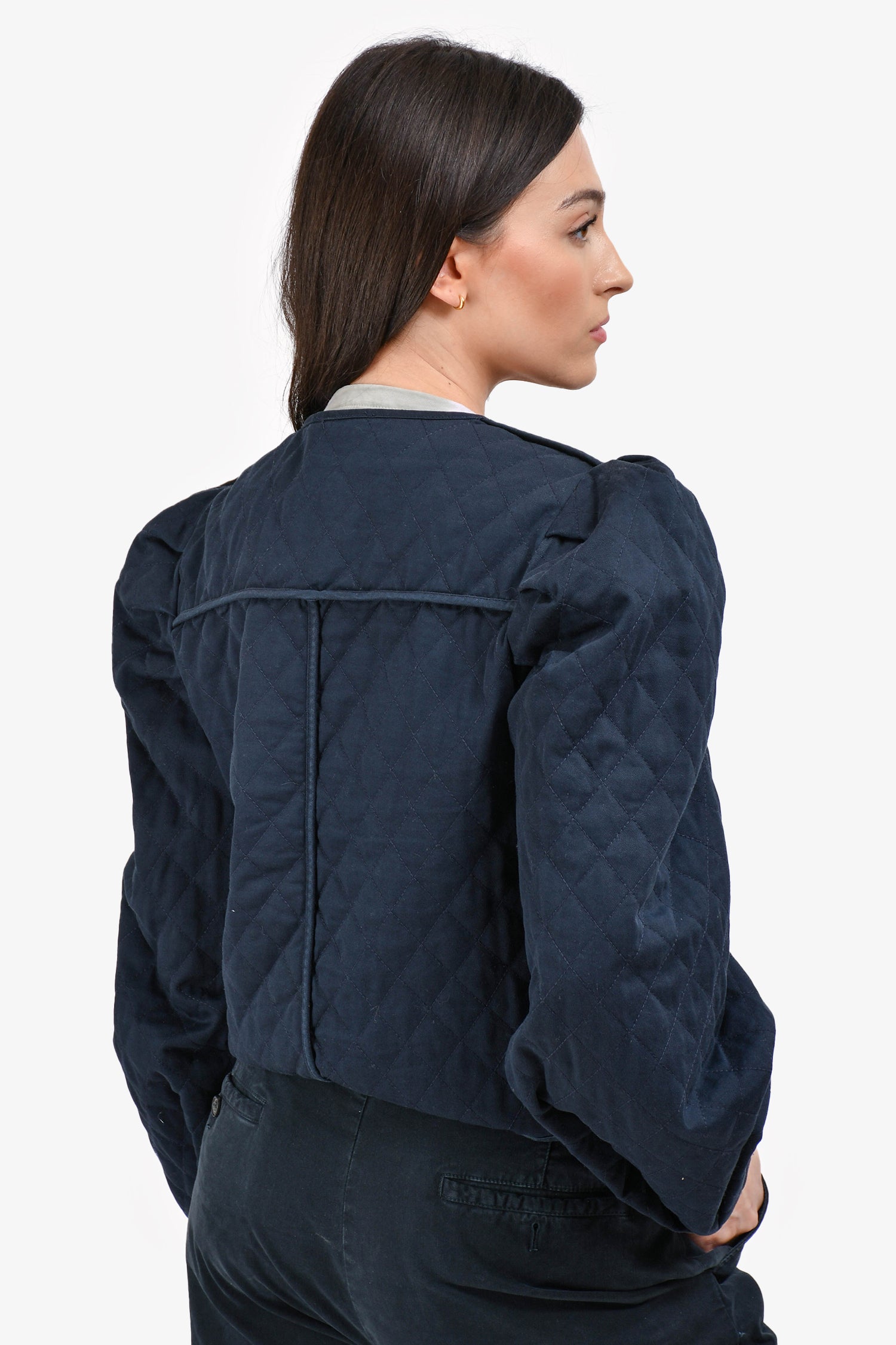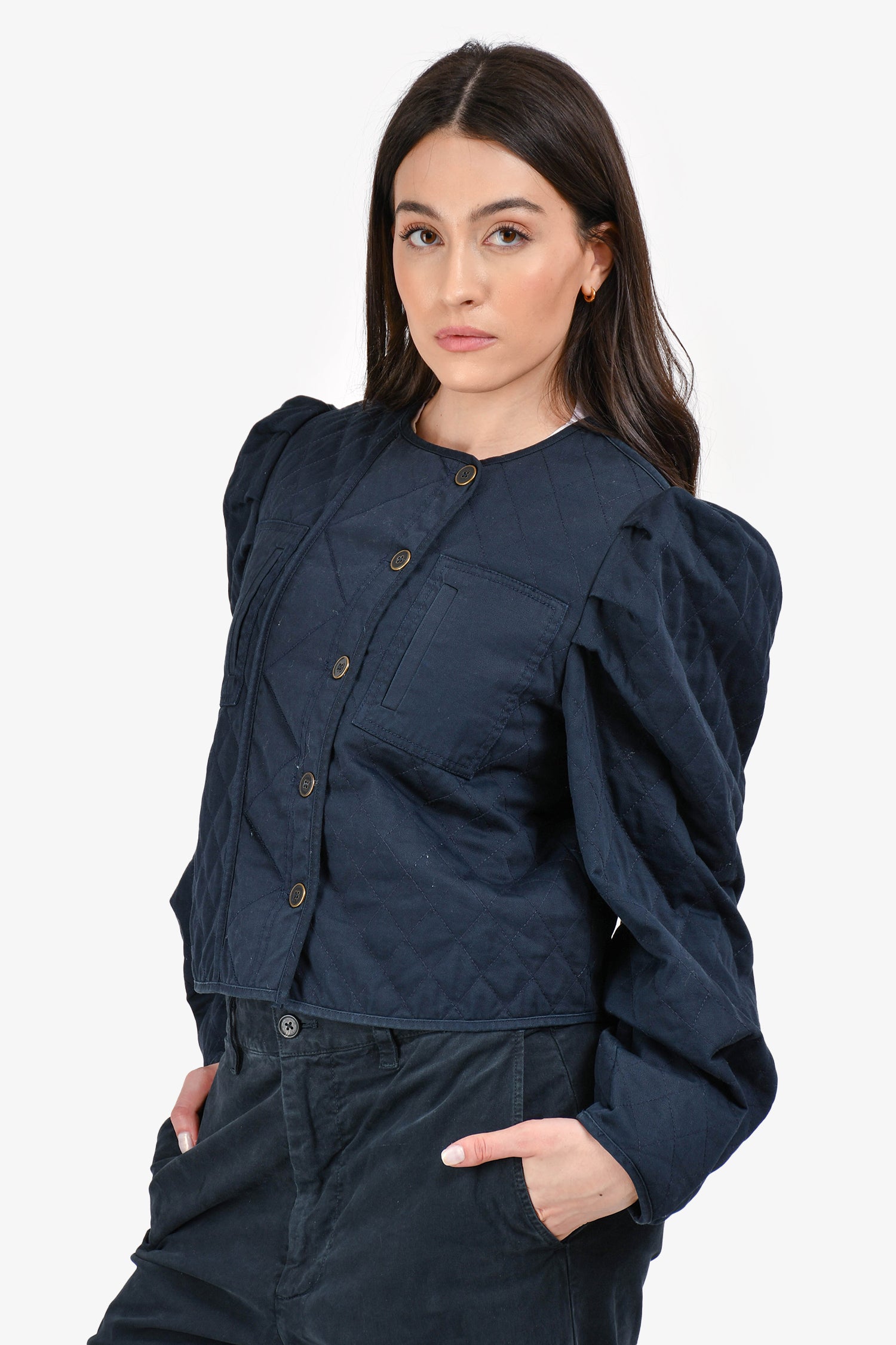 Ulla Johnson Navy Blue Quilted Cotton 'Ario' Puff Sleeve Jacket Size S