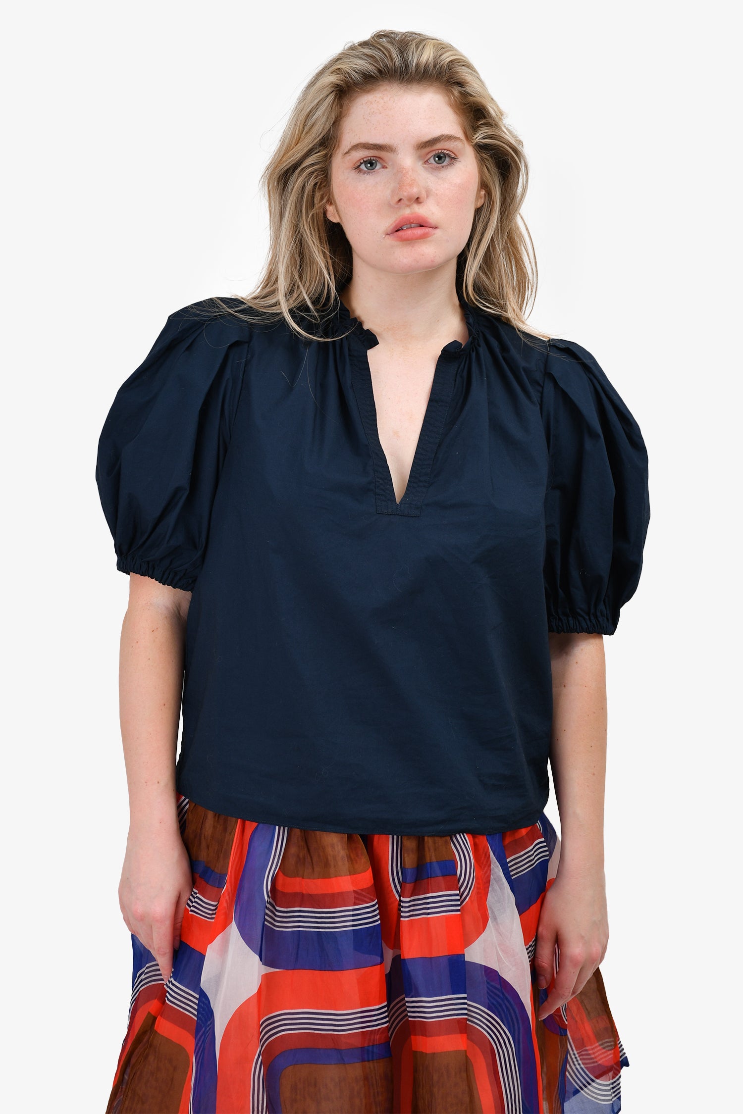 Ulla Johnson Navy Puff Sleeve V-Neck Top Size 6