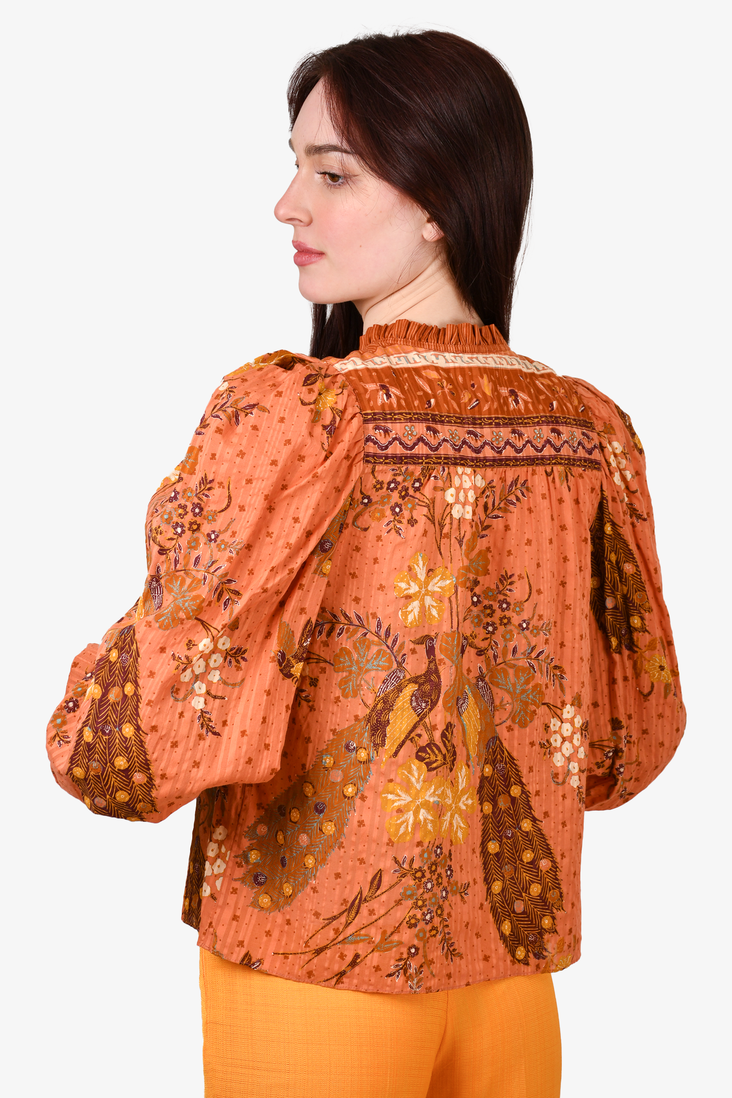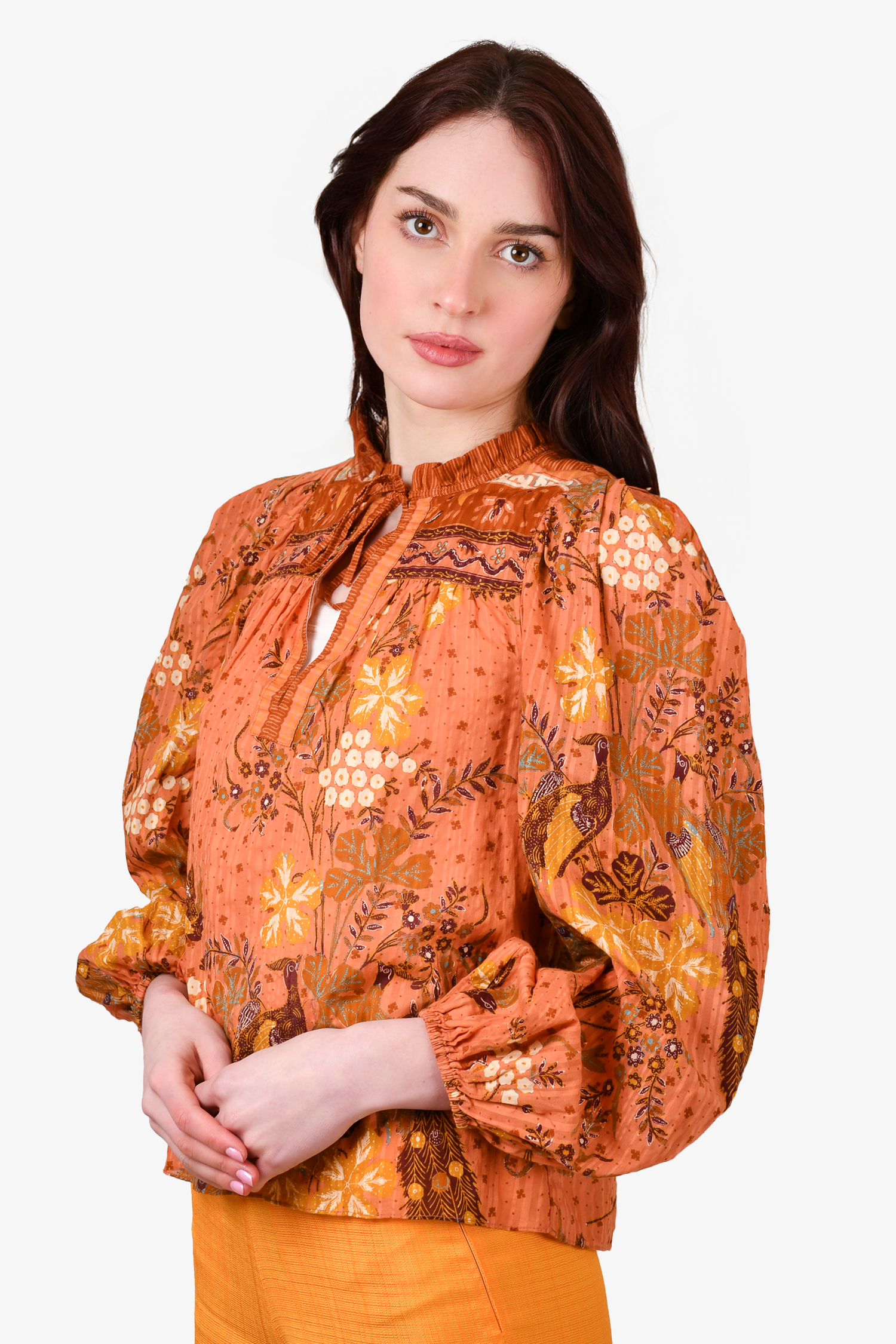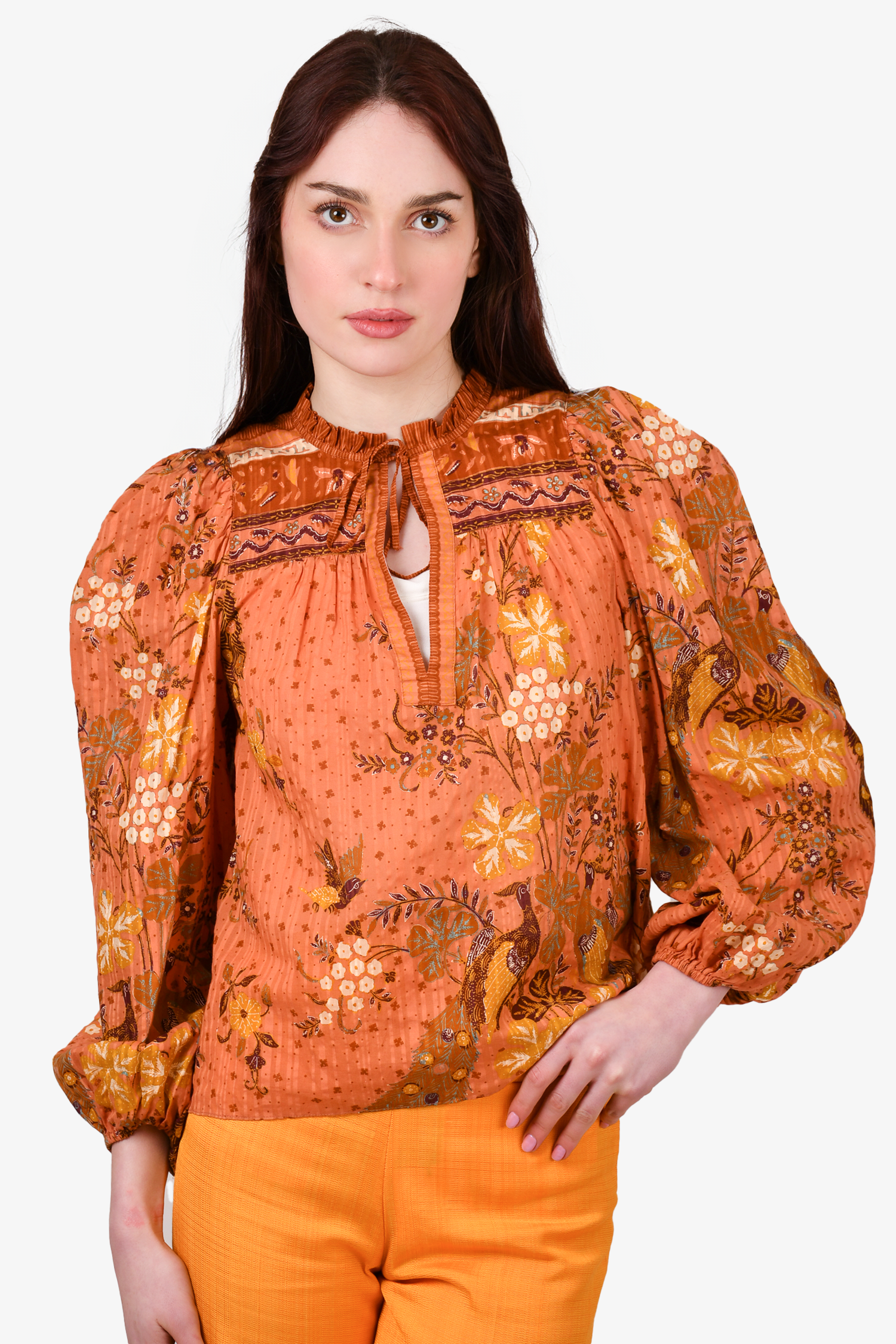 Ulla Johnson Orange Cotton Blend Floral Blouse Size 4