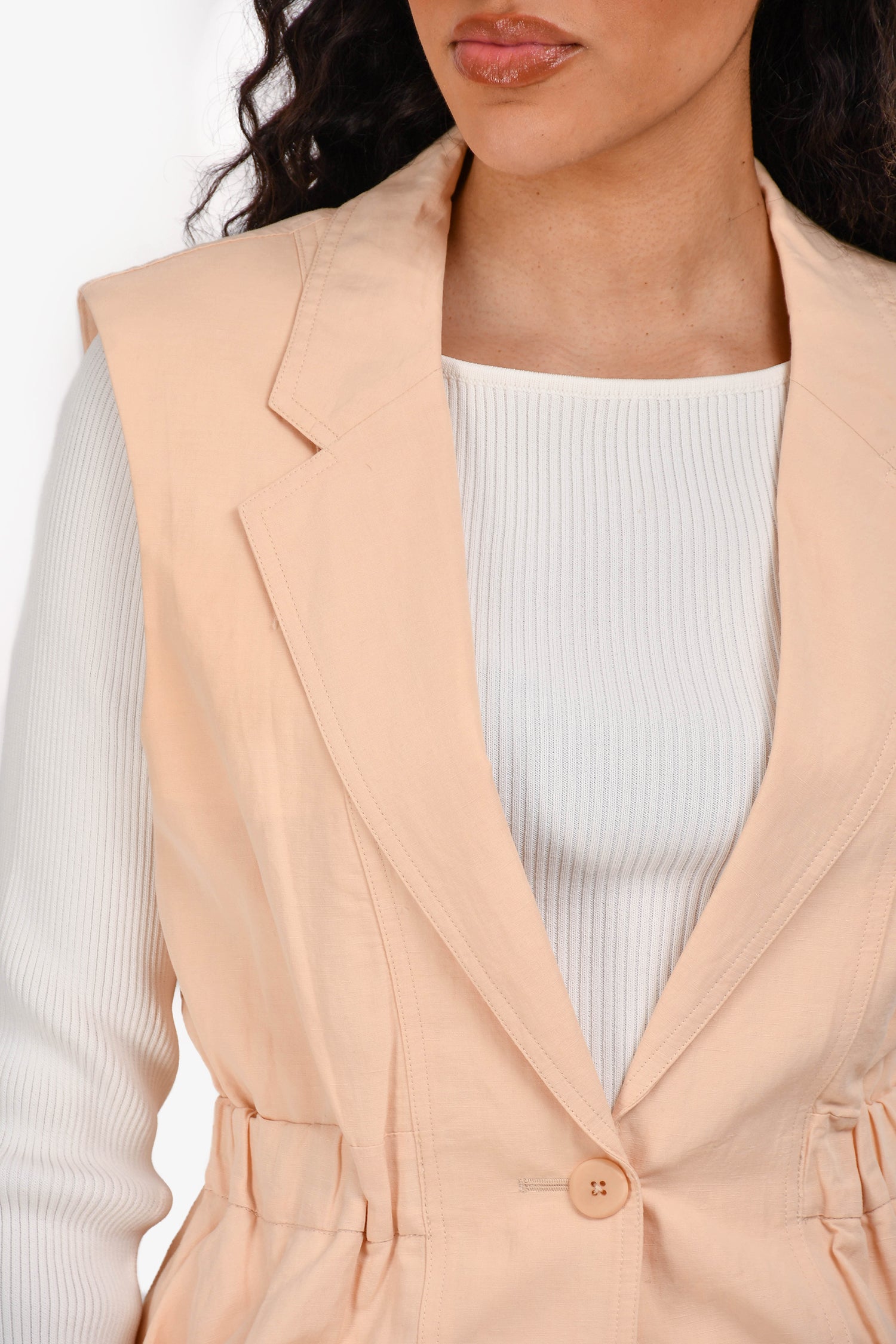 Refresh availabilityUlla Johnson Orange Linen Ruched Vest. V-neckline. Sleeveless. Front single button closure. Elasticized waistband. Tonal stitching.