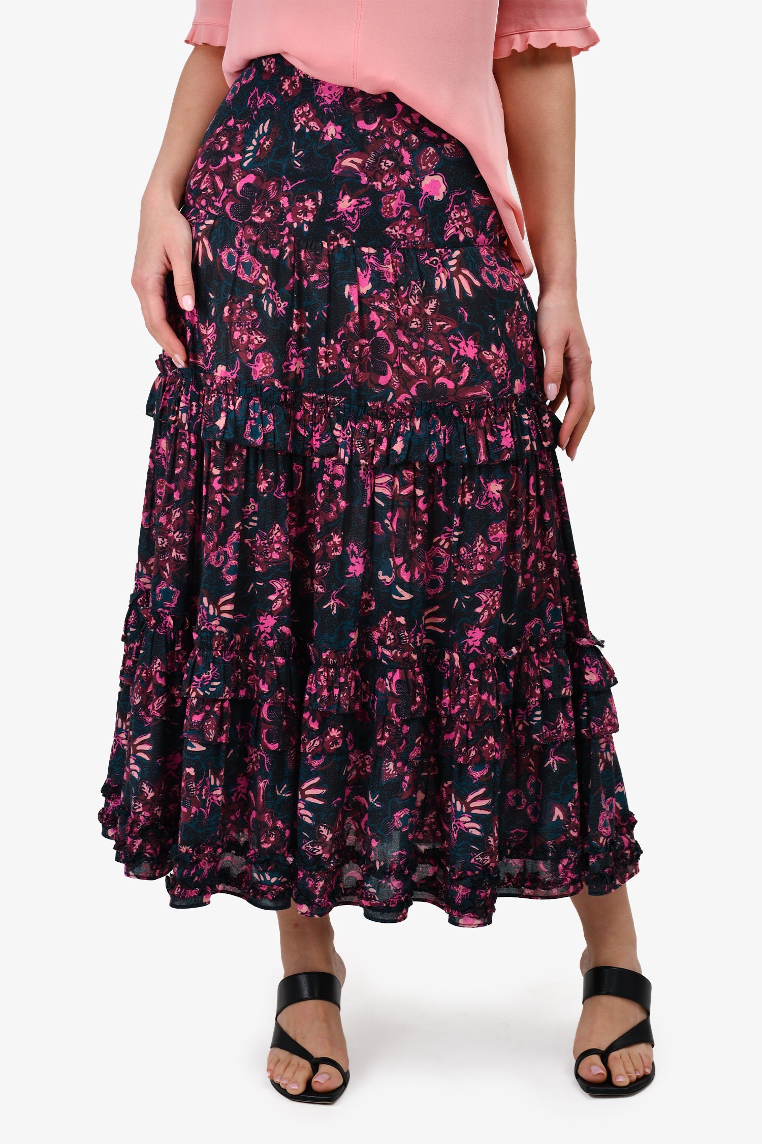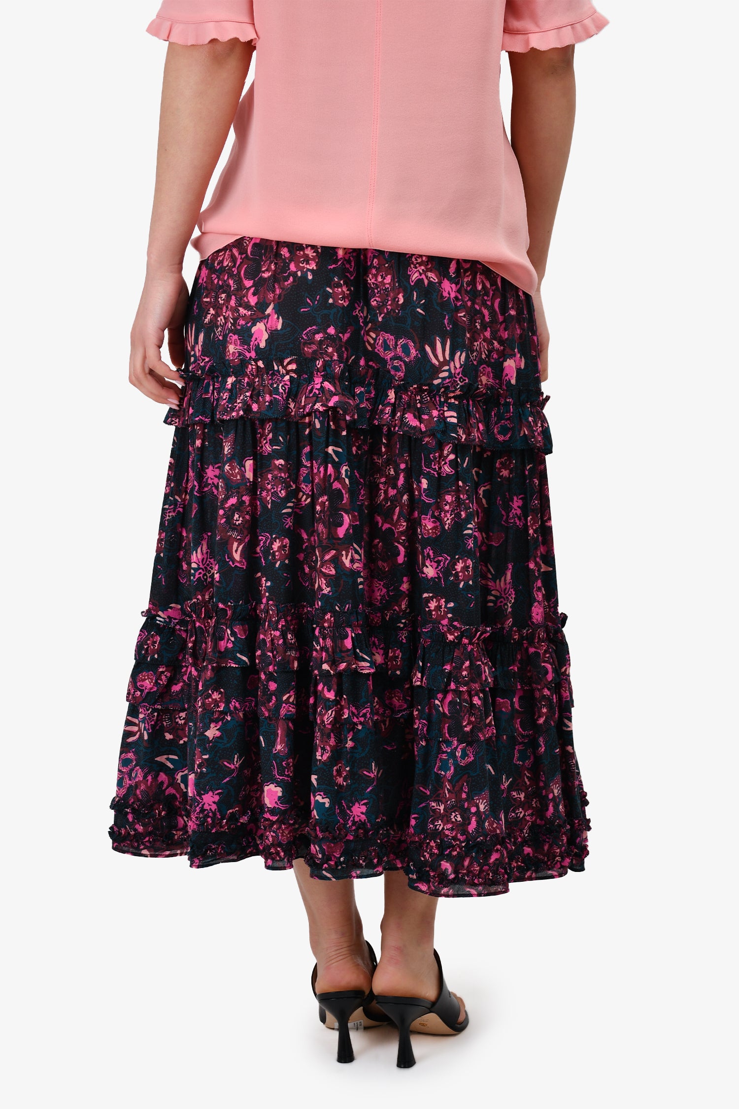 Refresh availabilityUlla Johnson Pink/Black Floral Patterned Midi Skirt. Side zip and hook closure. Unlined.