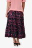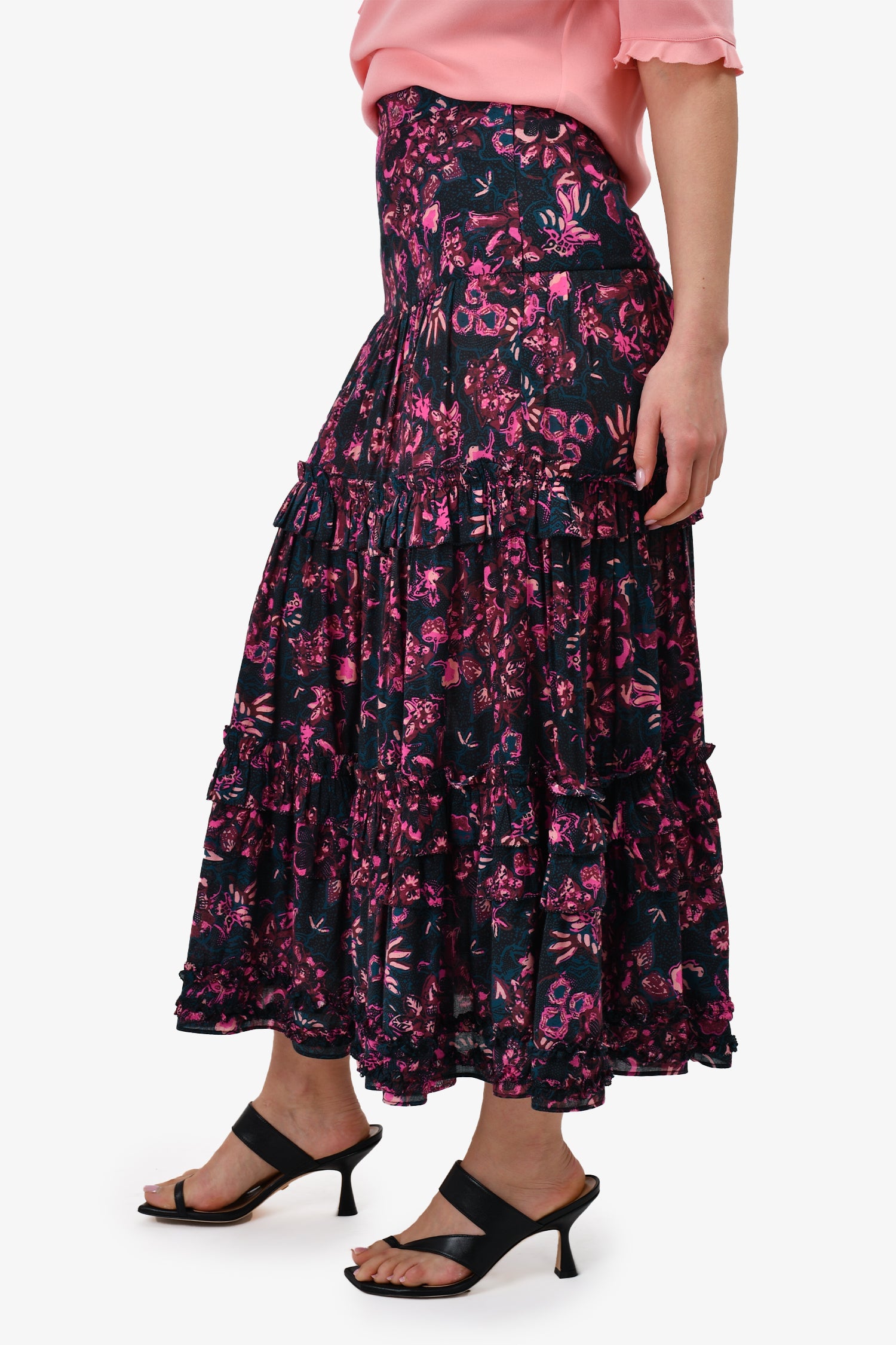 Ulla Johnson Pink/Black Floral Patterned Midi Skirt Size 0