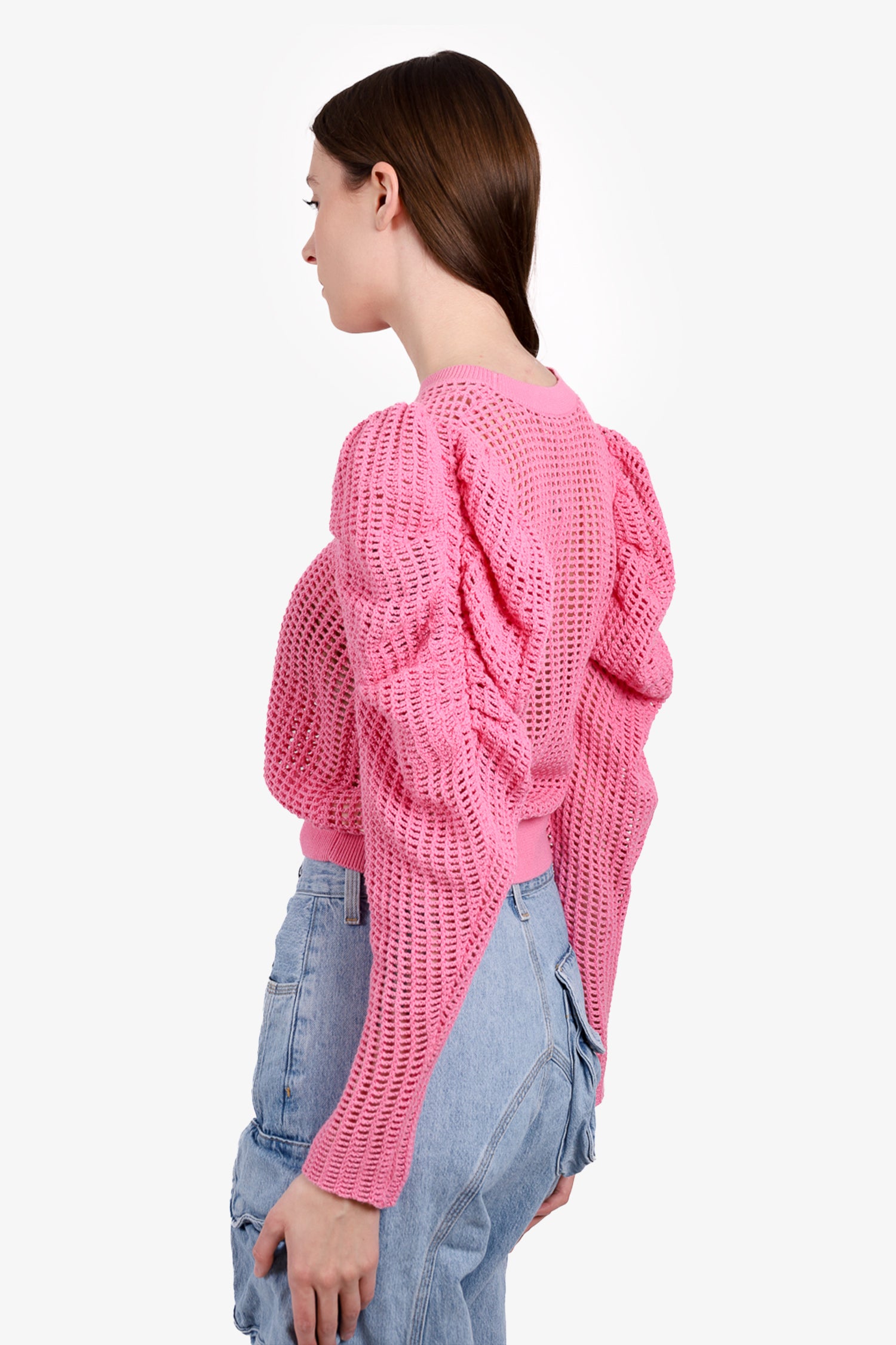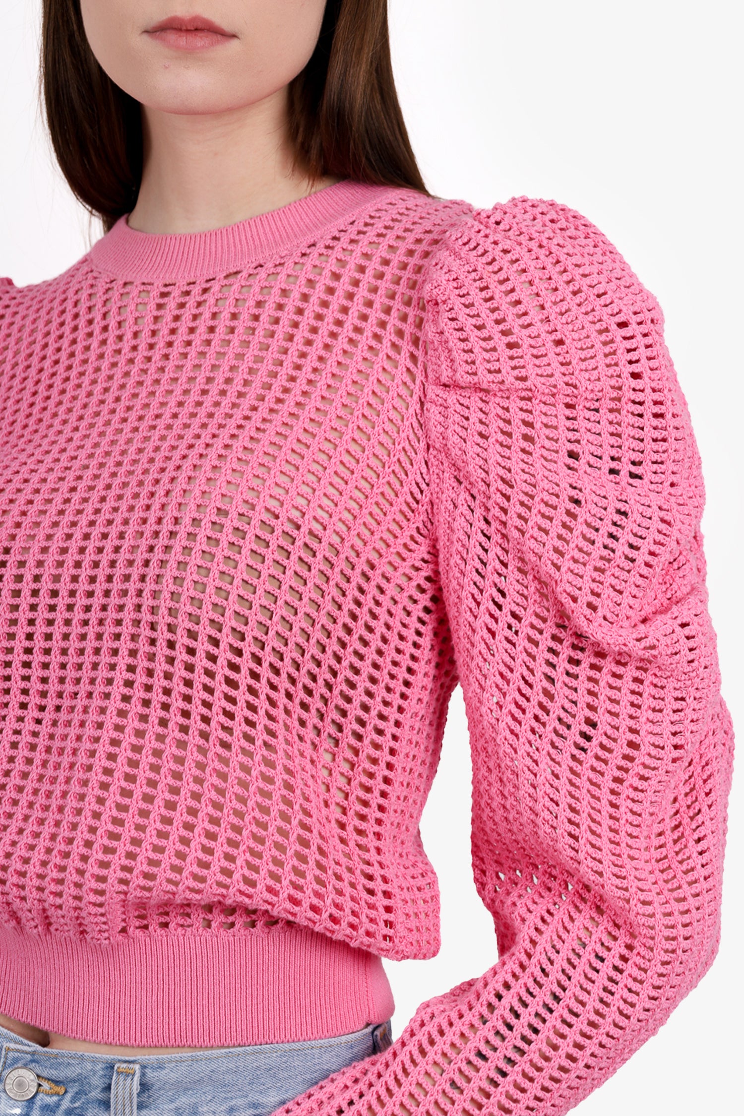 Refresh availabilityUlla Johnson Pink Delaney Puff-Sleeve Mesh Top. Round neckline. Long-sleeve. Unlined. Tonal stitching.