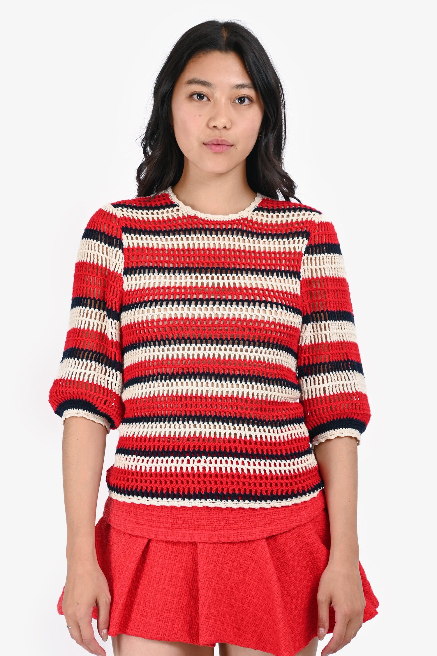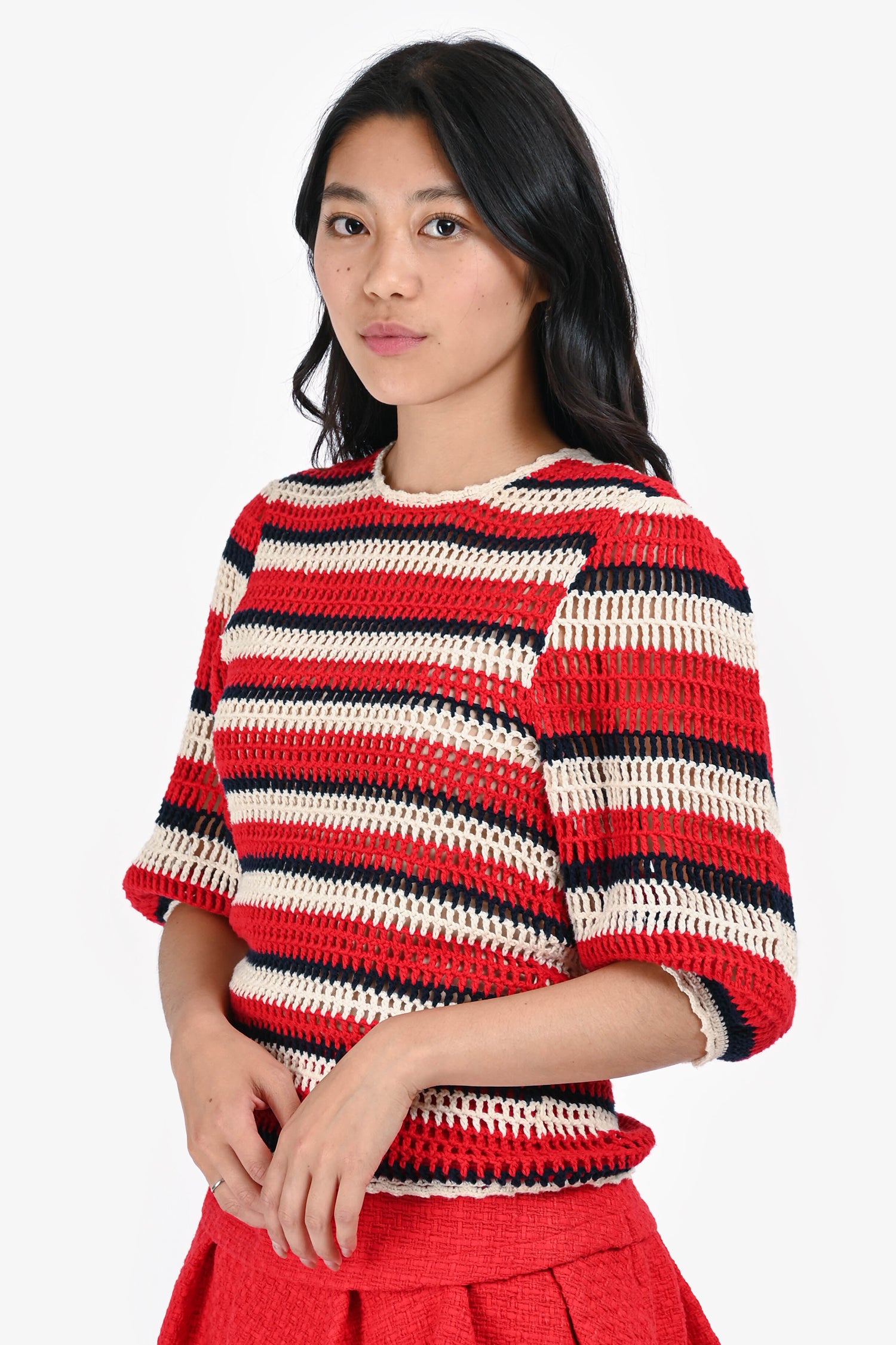 Ulla Johnson Red/White and Navy Striped Crochet Top Size S