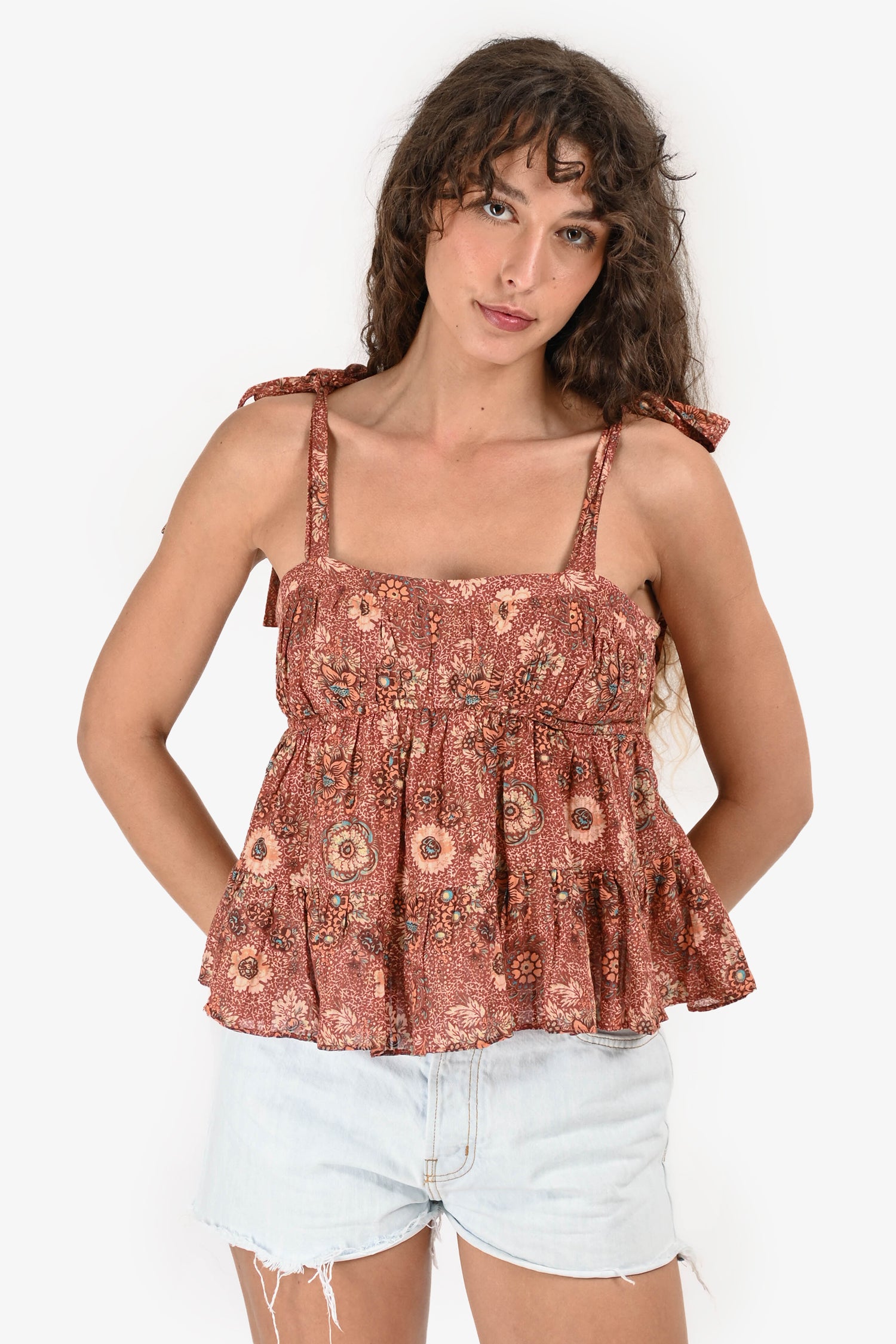 Ulla Johnson Sleeveless 2022 Brown Floral Print Top Size 4