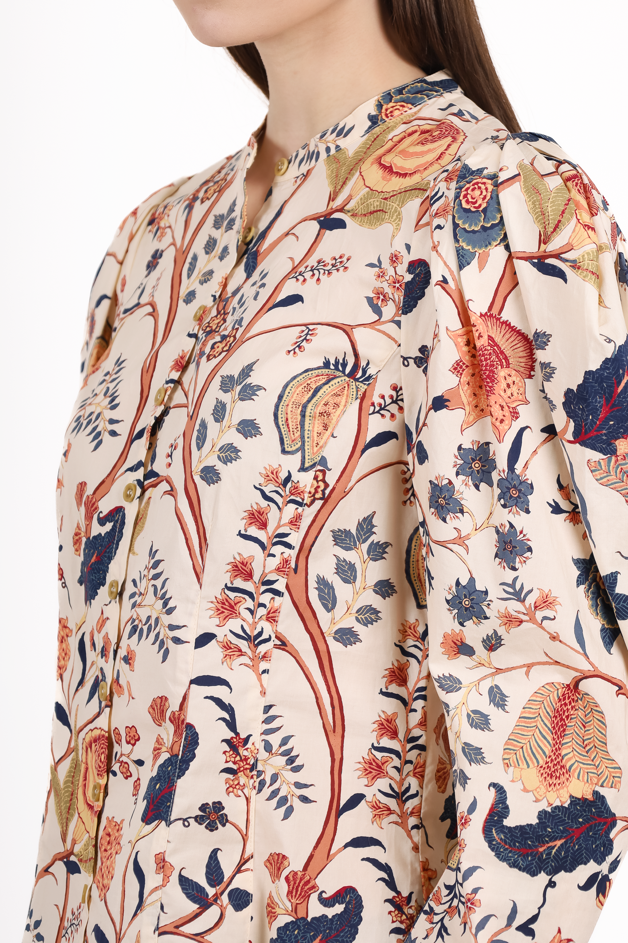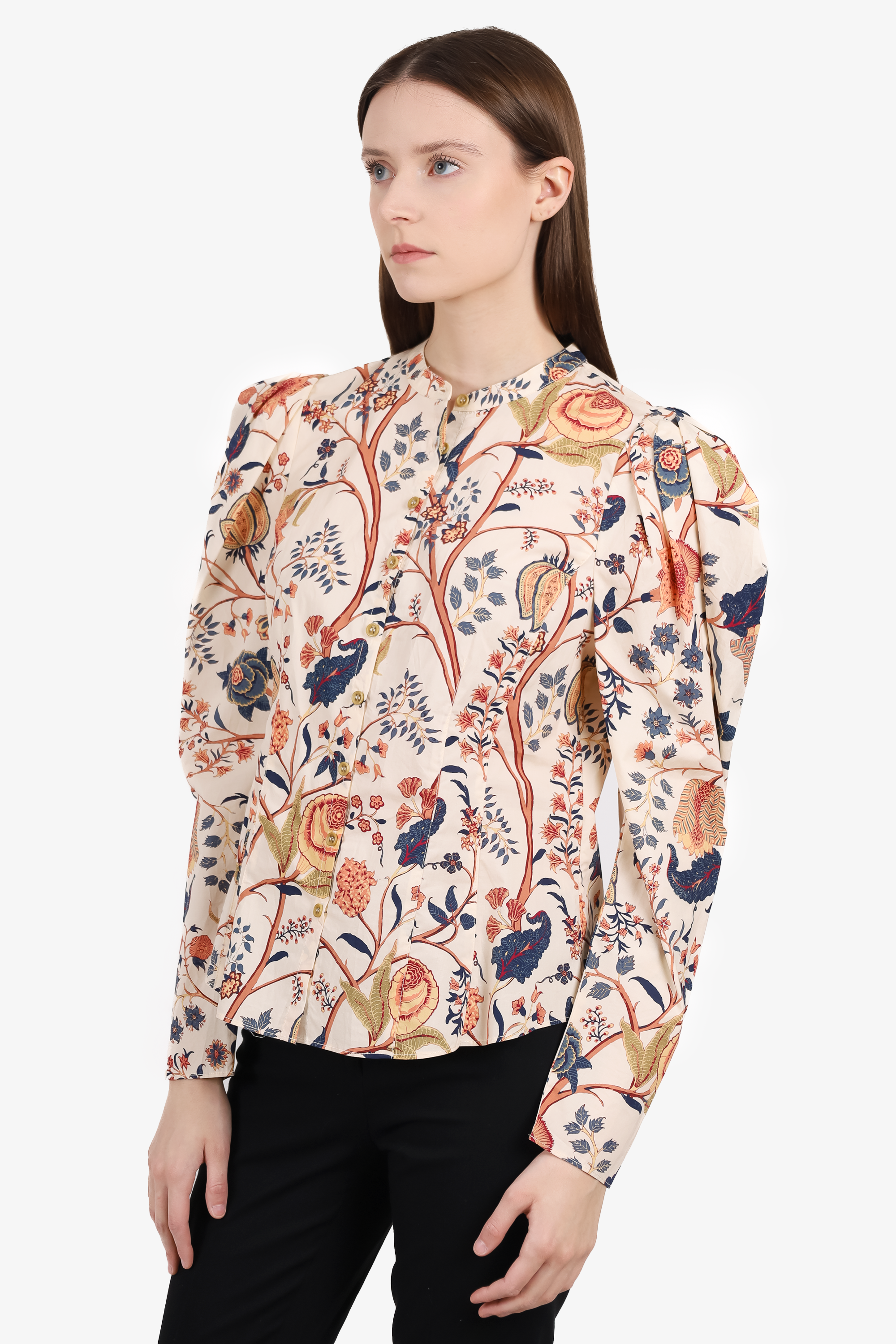 Refresh availabilityUlla Johnson White/Multicolour Floral Print Puff Sleeve Blouse. Front button-up closure. Unlined. Tonal stitching.