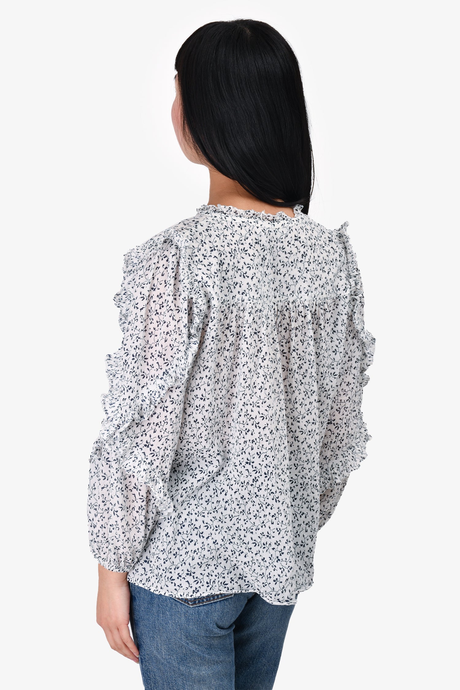 Ulla Johnson White/Navy Foliage Ruffled Detailed Top Size 2