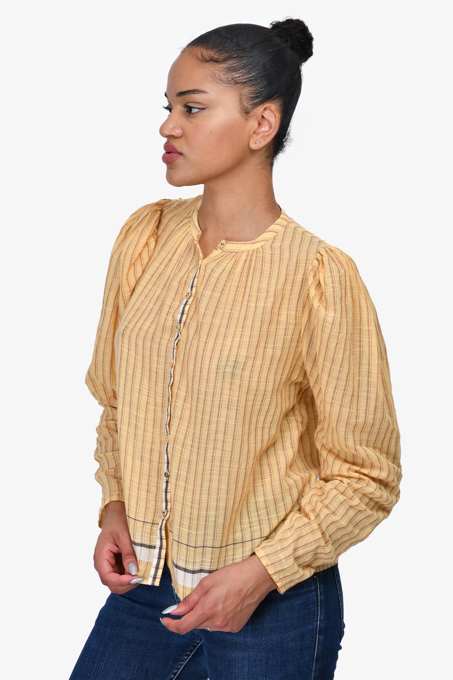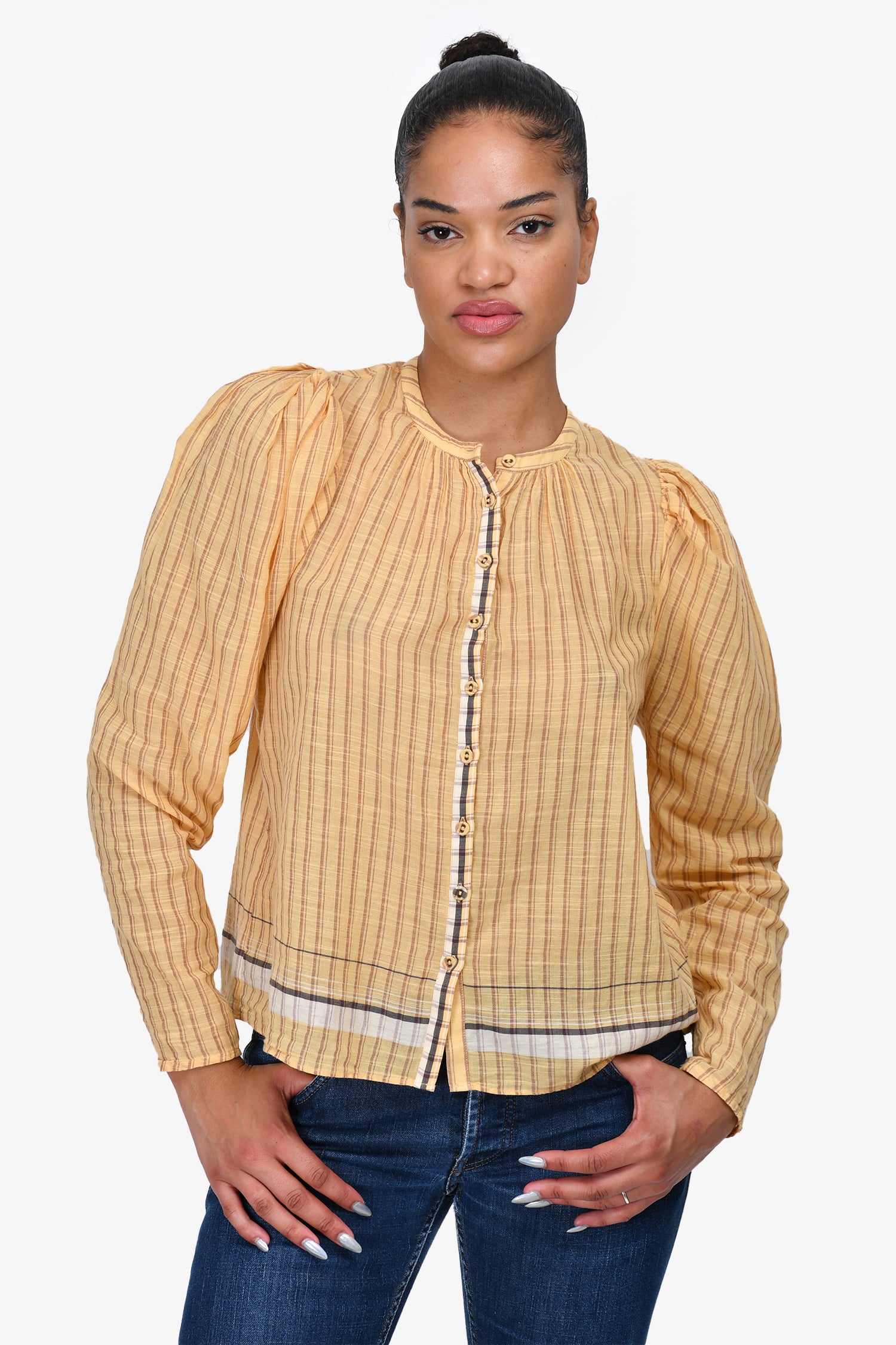 Refresh availabilityUlla Johnson Yellow Striped Cotton Blouse. Front button-up closure.