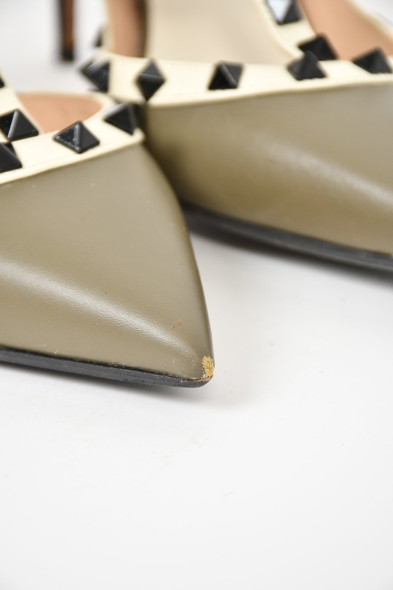 Valentino Army Green/Cream Rockstud Heels Size 40