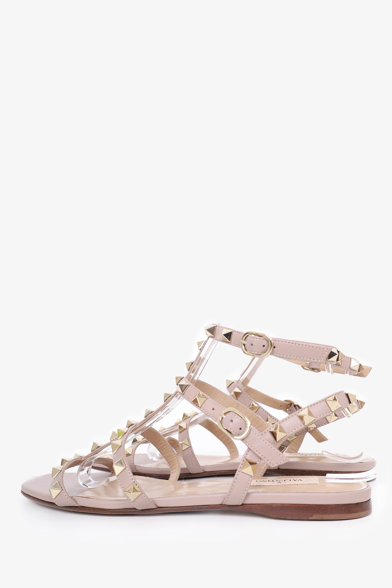 Refresh availabilityValentino Beige Leather Rockstud Cage Sandals. Ankle strap closure. Open round toe. Tonal stitching.