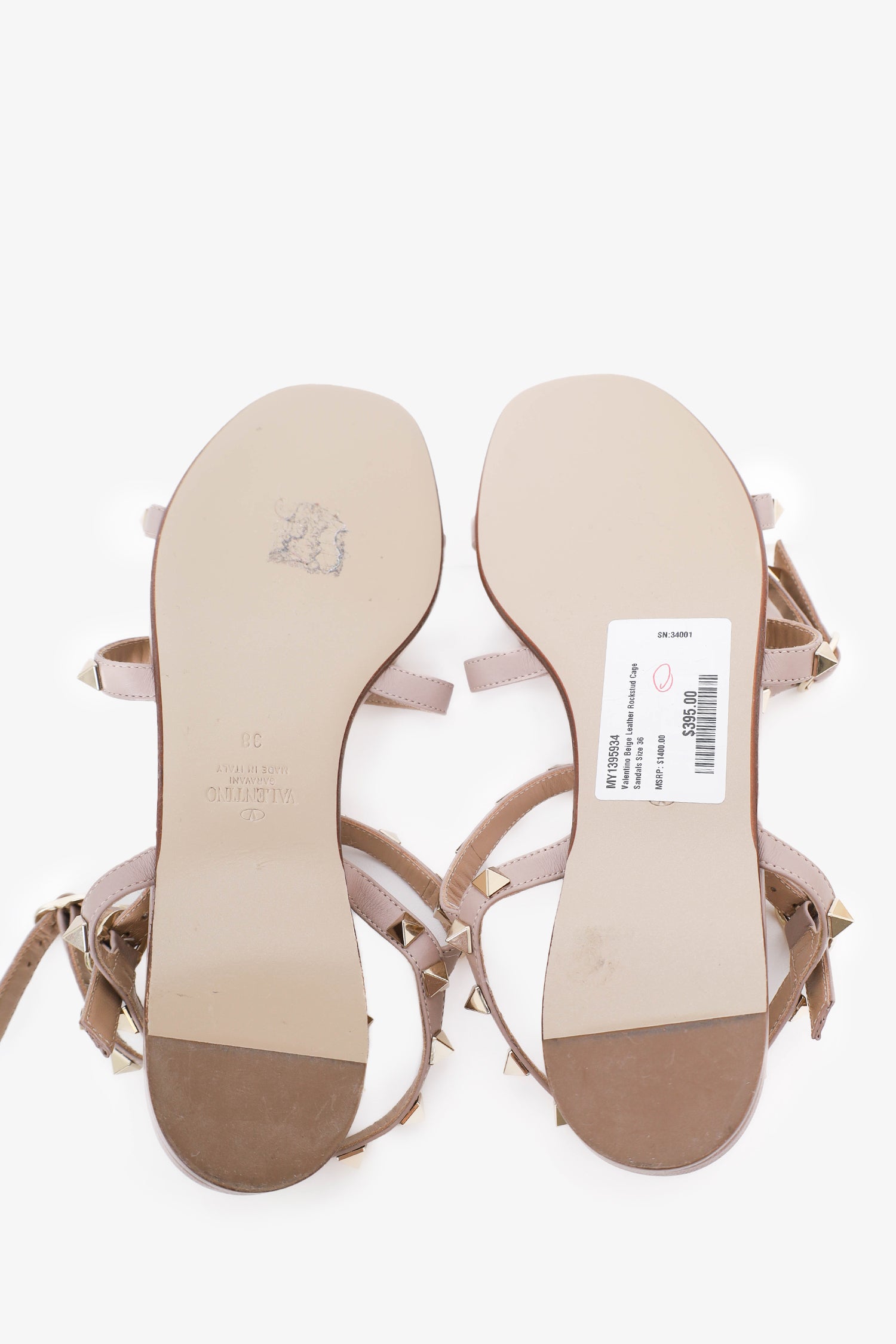 Valentino Beige Leather Rockstud Cage Sandals Size 38