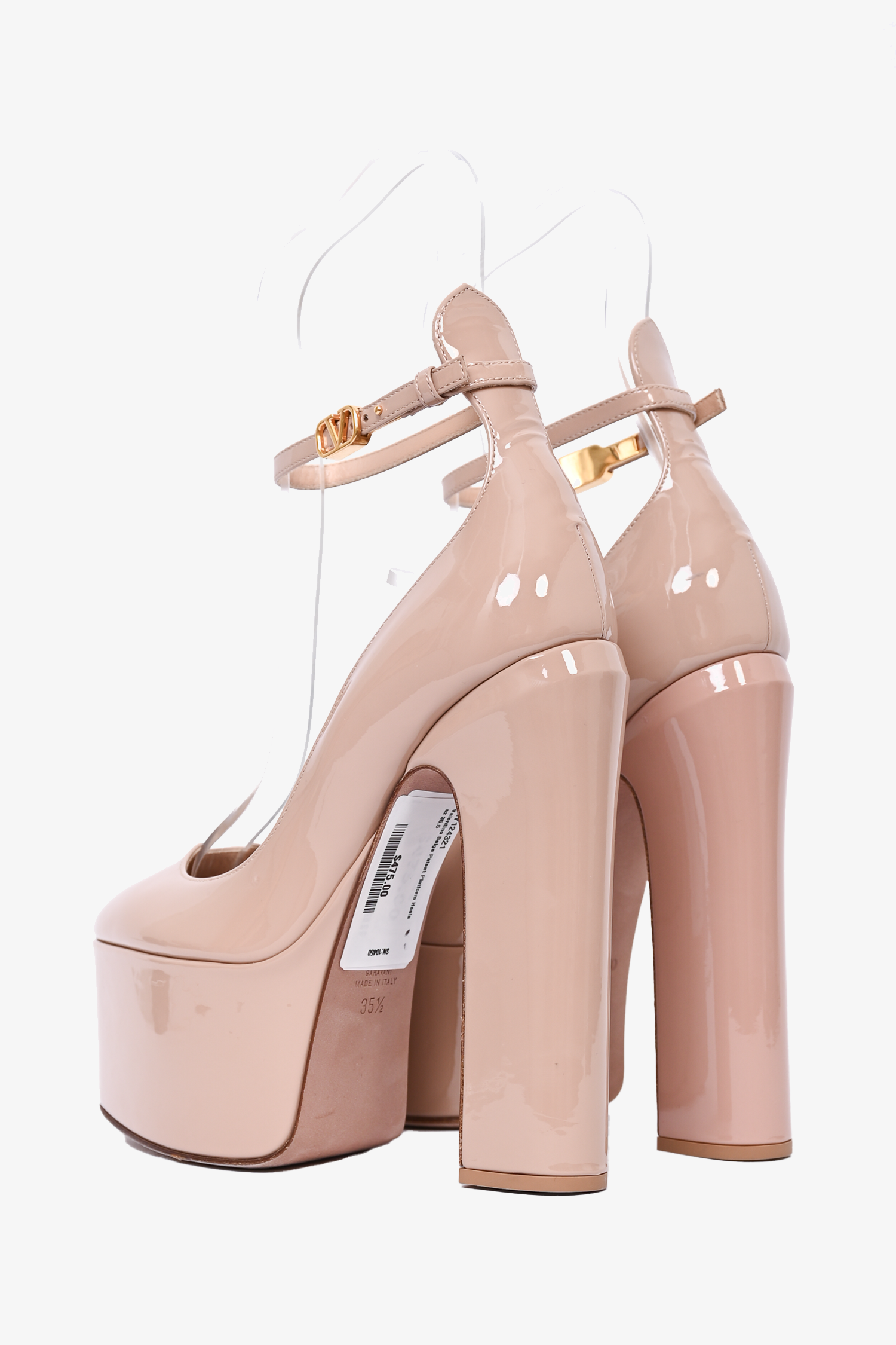 Valentino Beige Patent Platform Tan-Go Heels Size 35.5