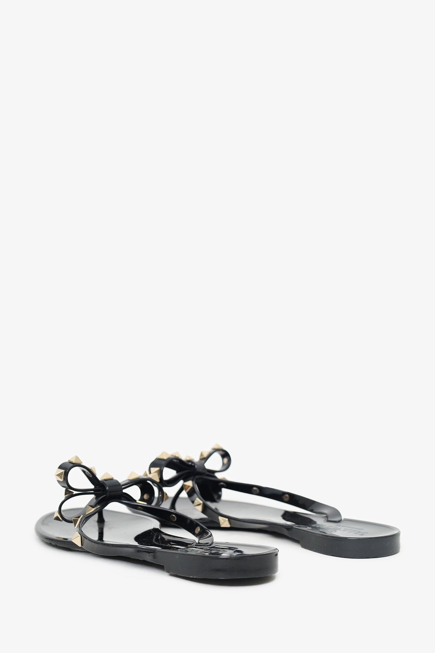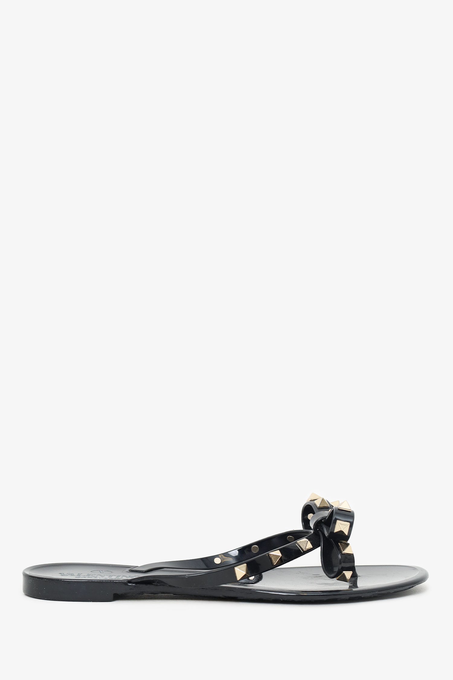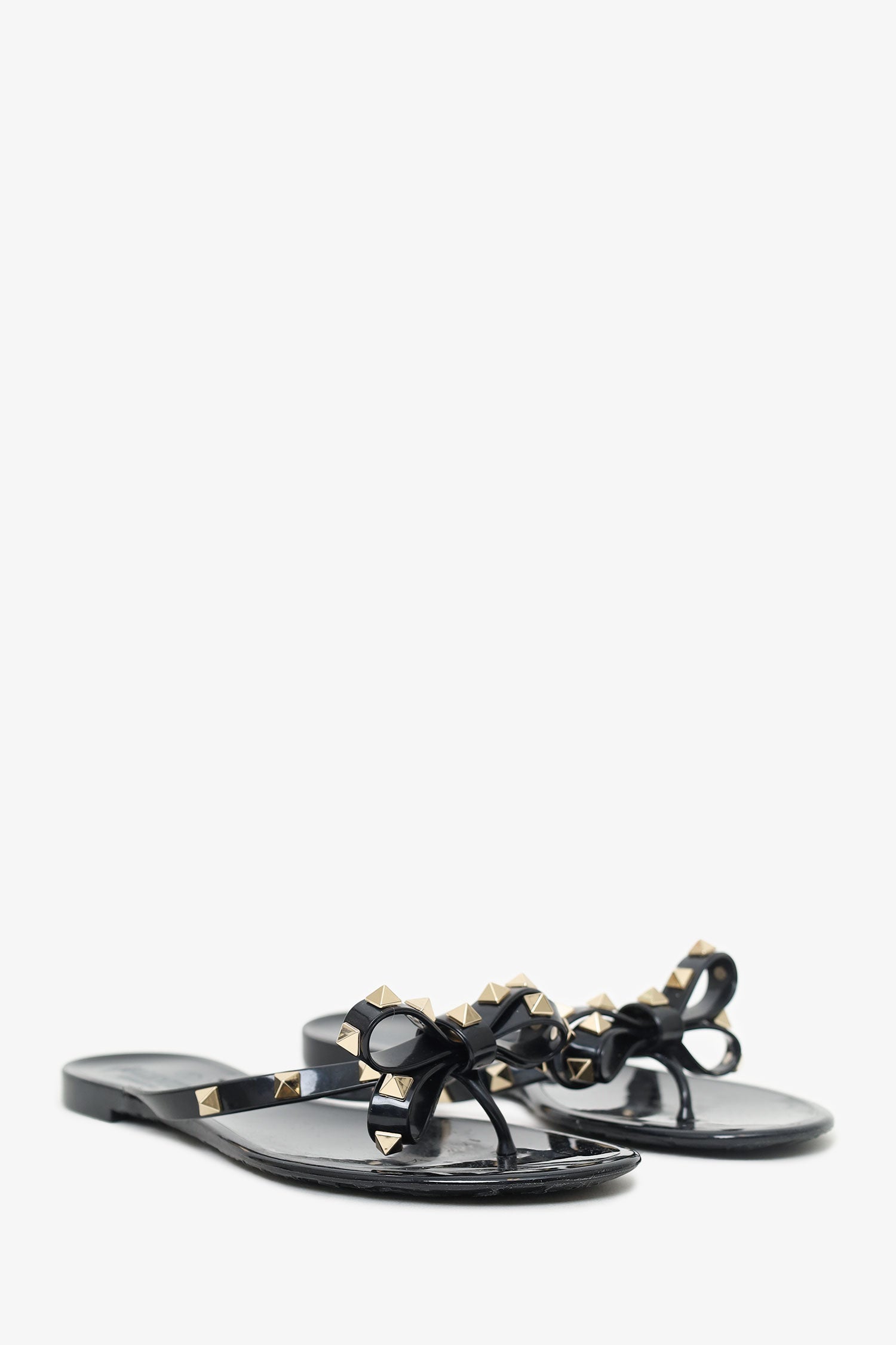 Refresh availabilityValentino Black Bow Detail Rockstud Flip Flops. Slip-on. Pointed-round-toe. Thong toe. Gold-tone hardware. Tonal stitching.