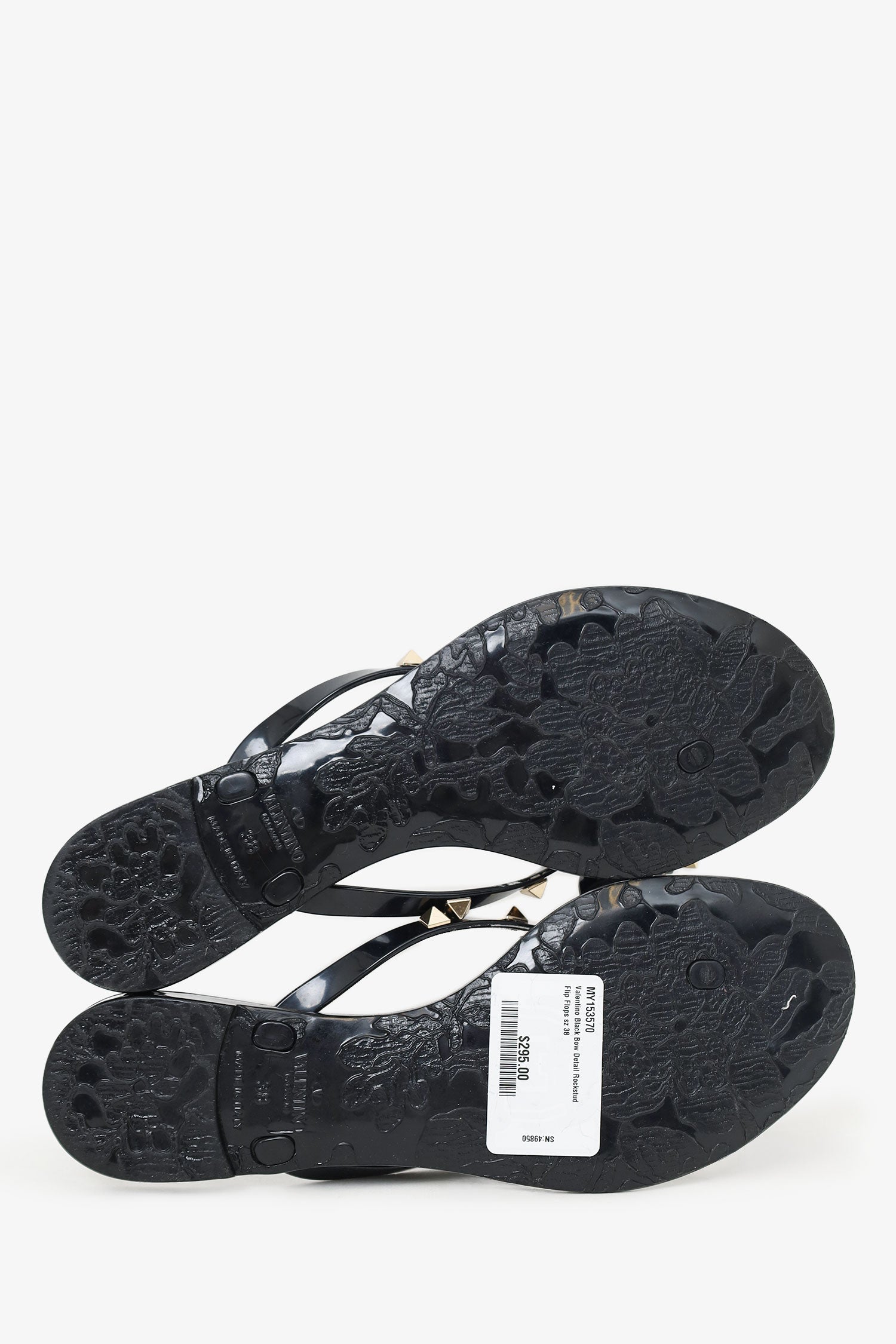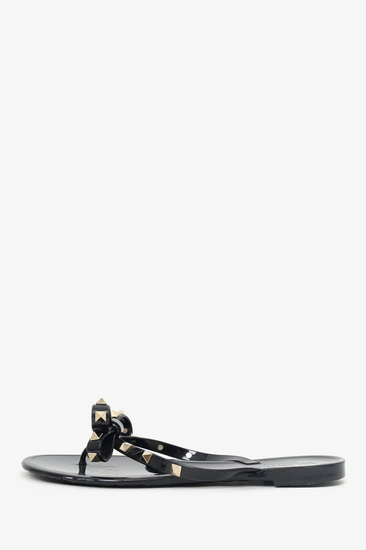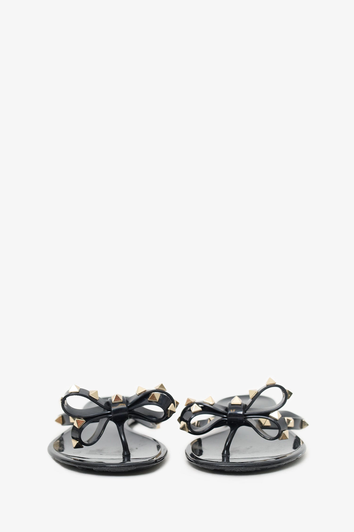 Refresh availabilityValentino Black Bow Detail Rockstud Flip Flops. Slip-on. Pointed-round-toe. Thong toe. Gold-tone hardware. Tonal stitching.