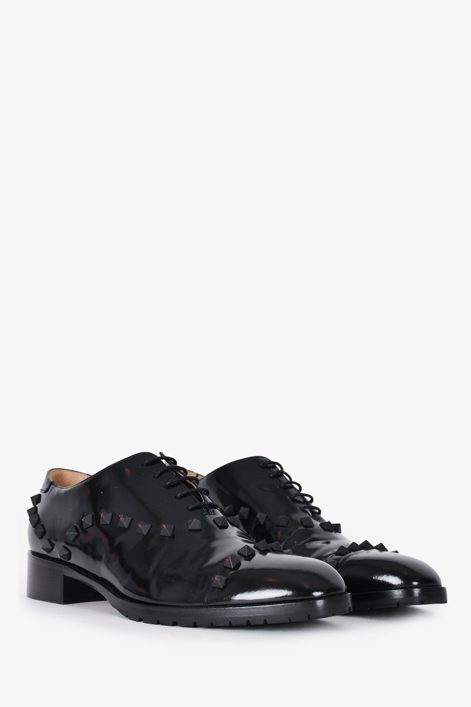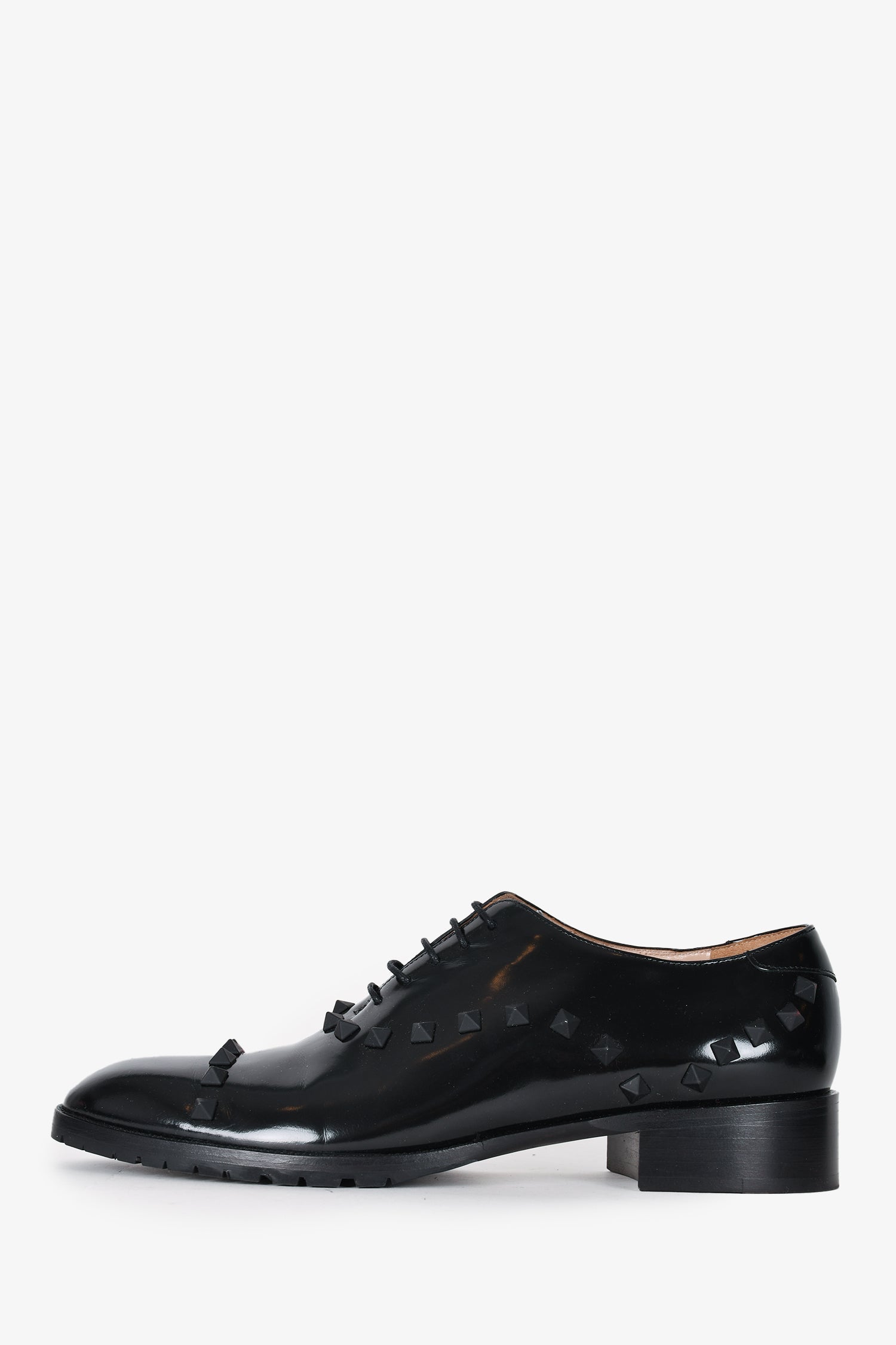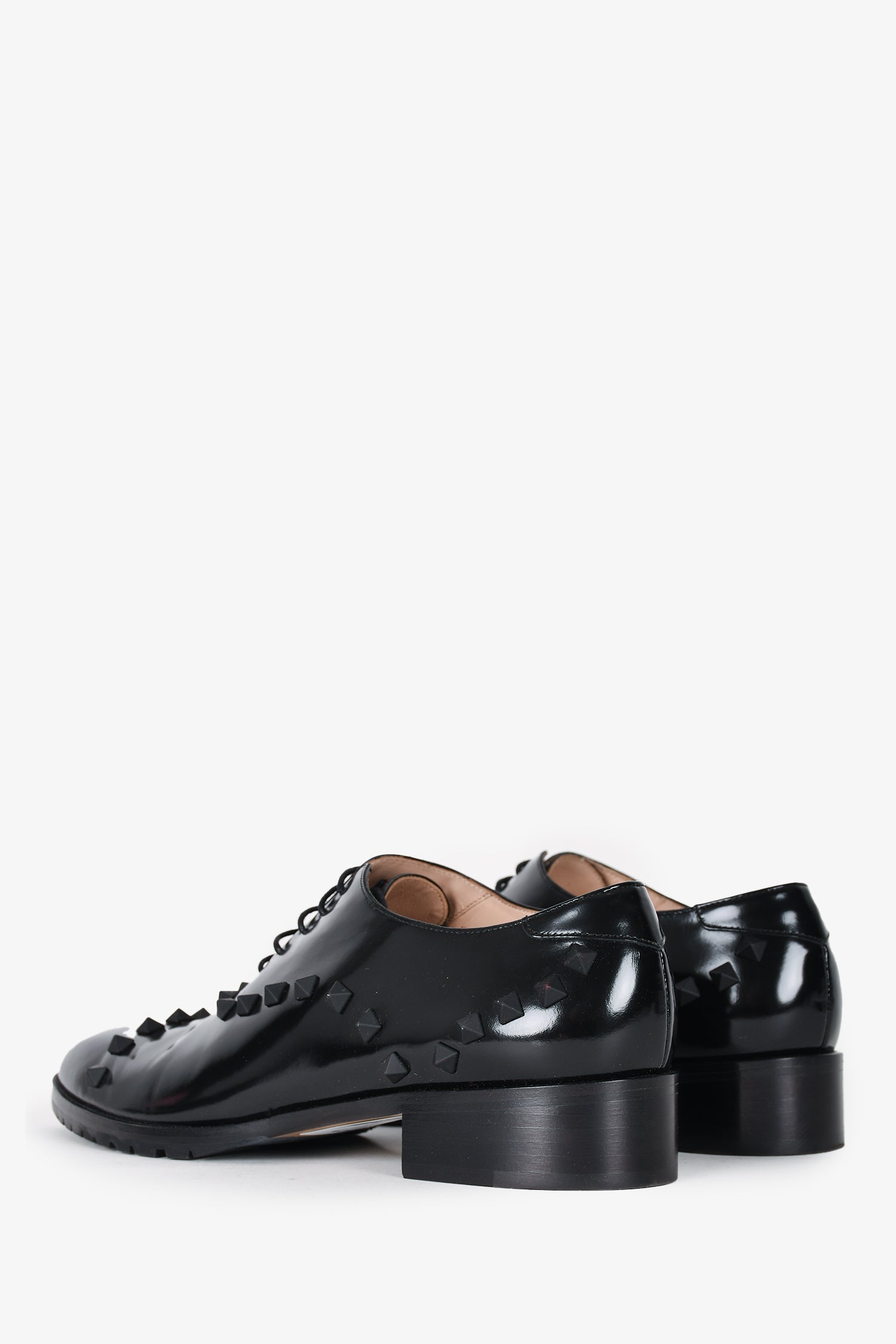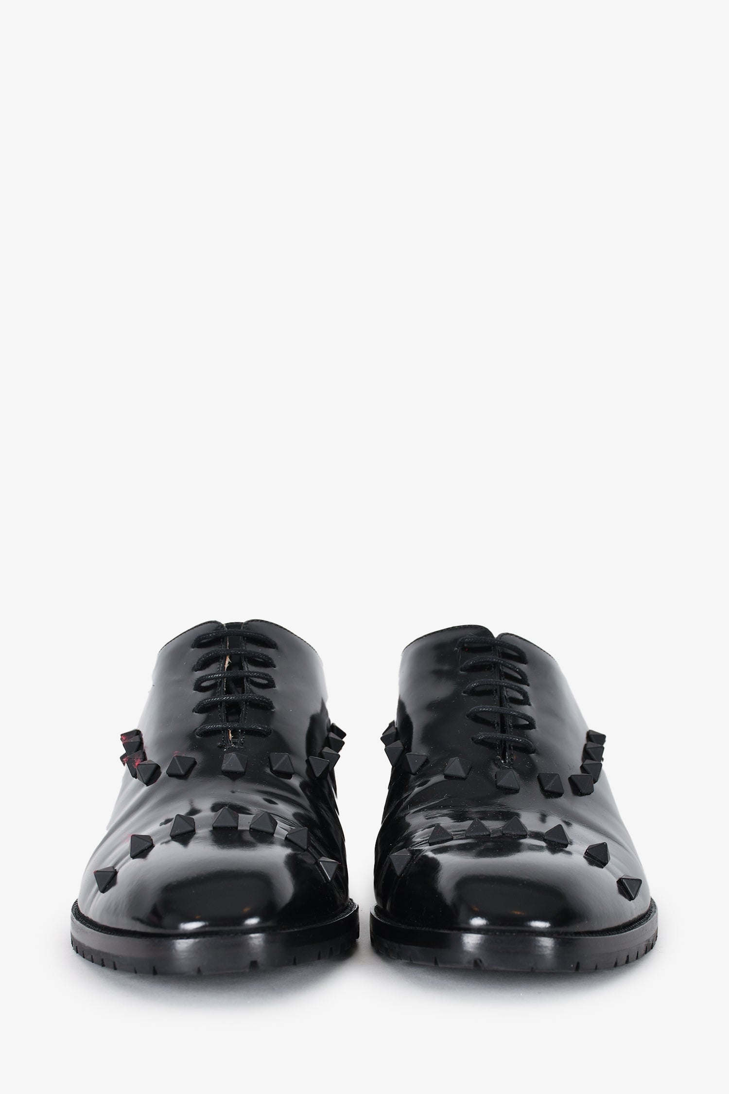 Refresh availabilityValentino Black Brushed Leather Rockstud Loafers. Top tie up closure. Tonal stitching.