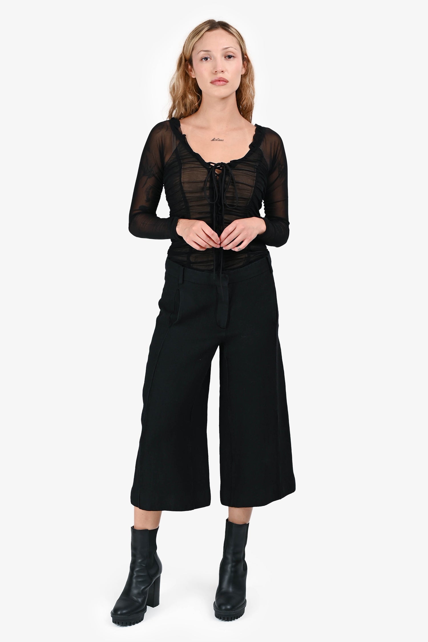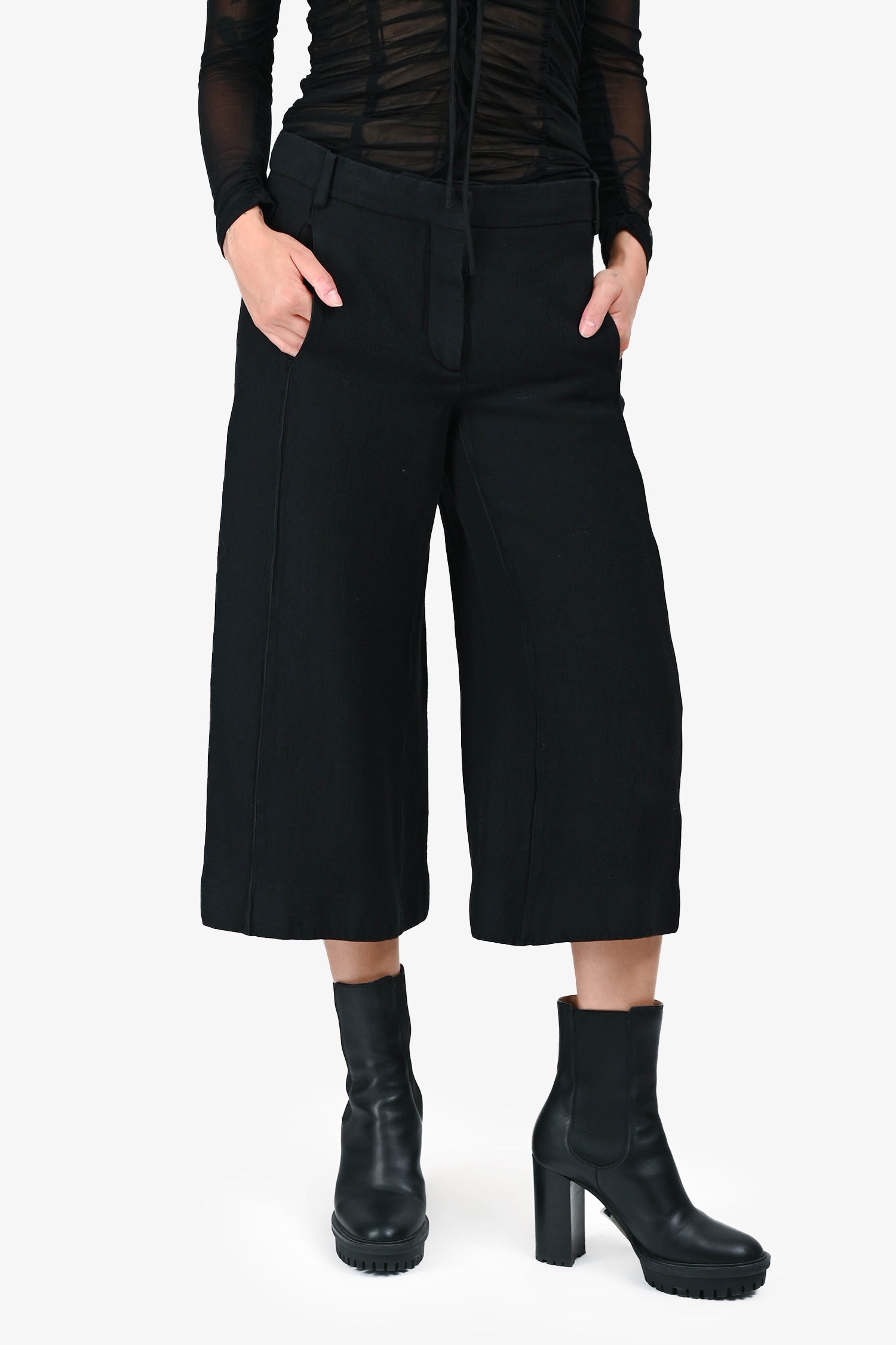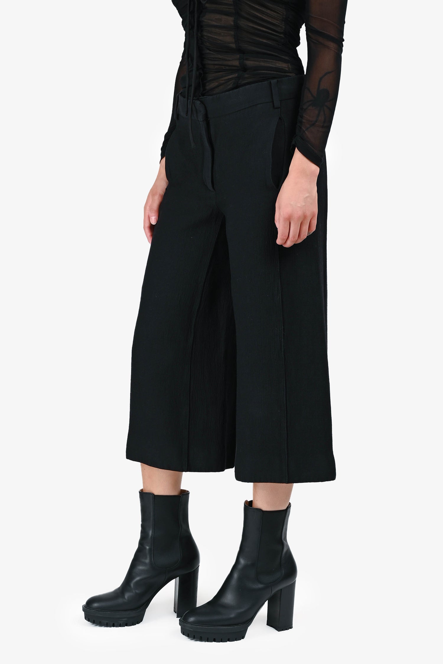 Refresh availabilityValentino Black Capri Wide Leg Pants. Front zip, hook and button closure. Waist belt loops. Front and rear pockets.