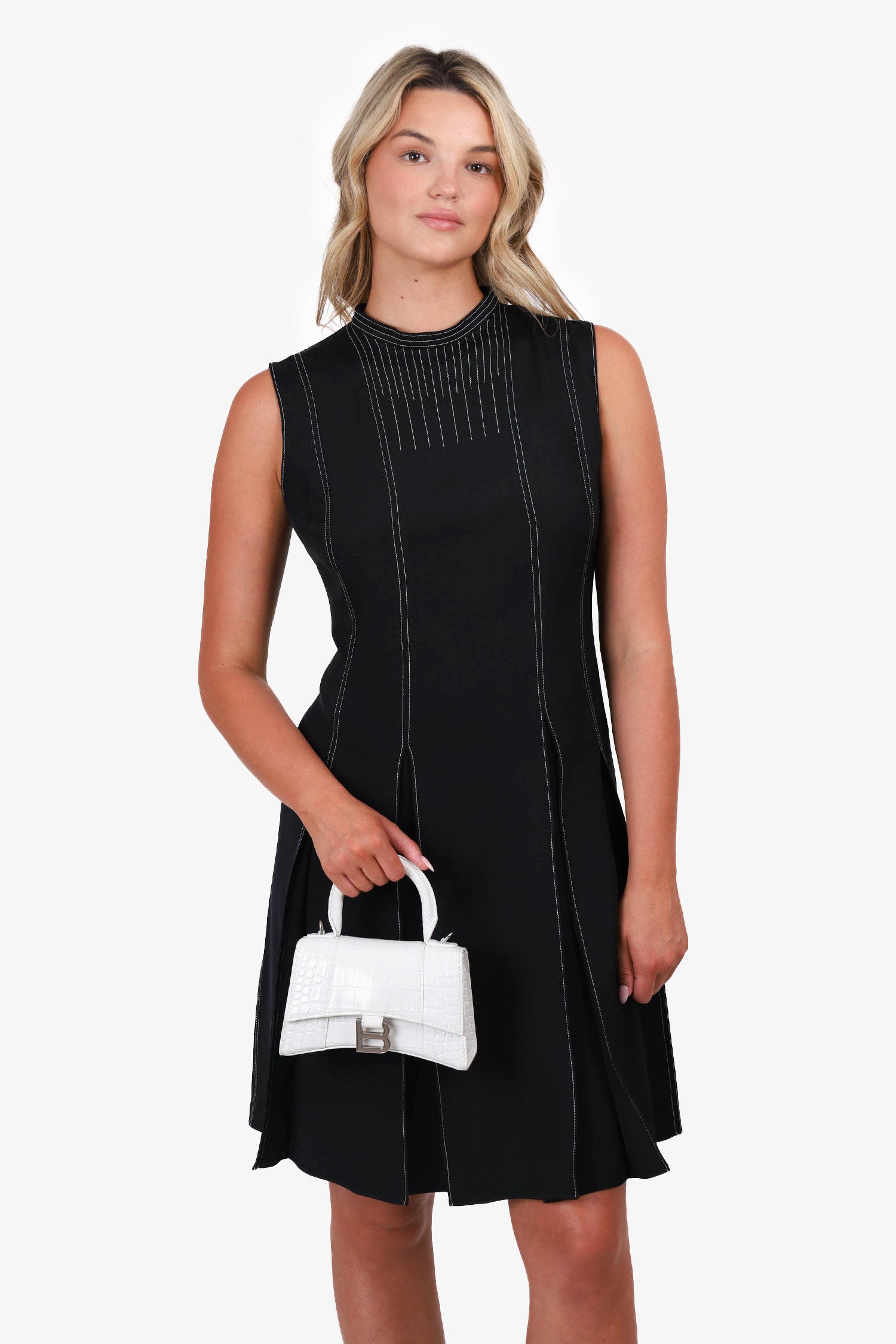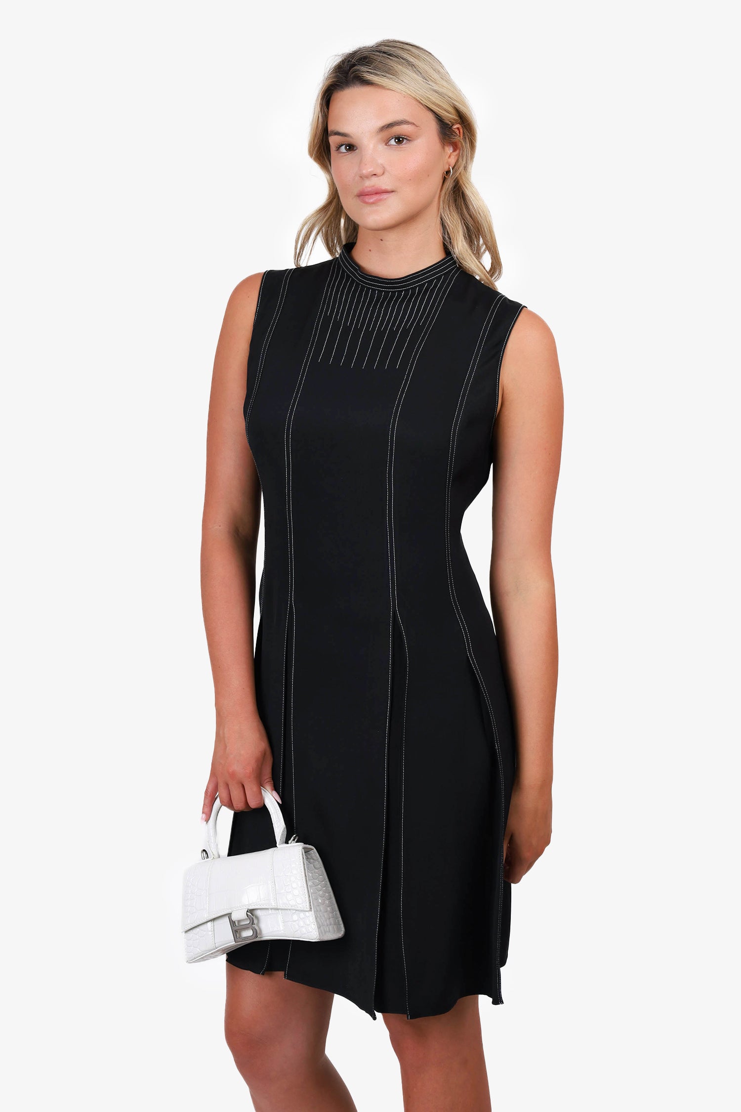 Refresh availabilityValentino Black Contrast Stitch Sleeveless Midi Dress. High collar neckline. Rear zipper closure. Contrast stitching.