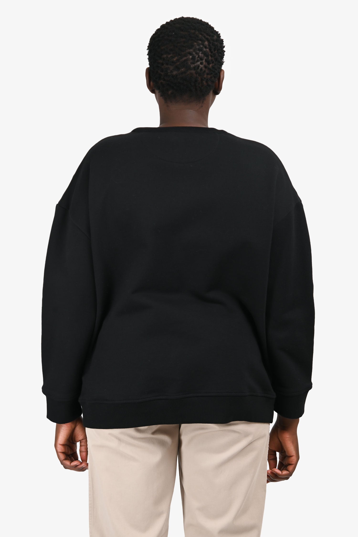 Refresh availabilityValentino Black Cotton Floral Cutout Long Sleeve Crewneck Sweater. Slip-on. Crew neckline. Ribbed neckline, cuffs, and hem. Tonal stitching.