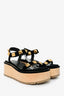 Valentino Black/Gold Velvet 'Roman Stud' Platform Sandals Size 40
