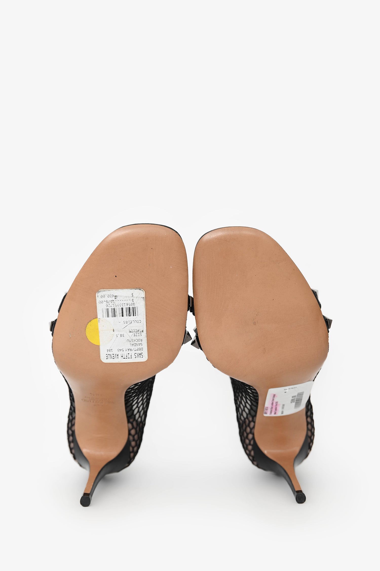 Valentino Black Leather Alcove Rockstud Mesh Sandals Size 38.5