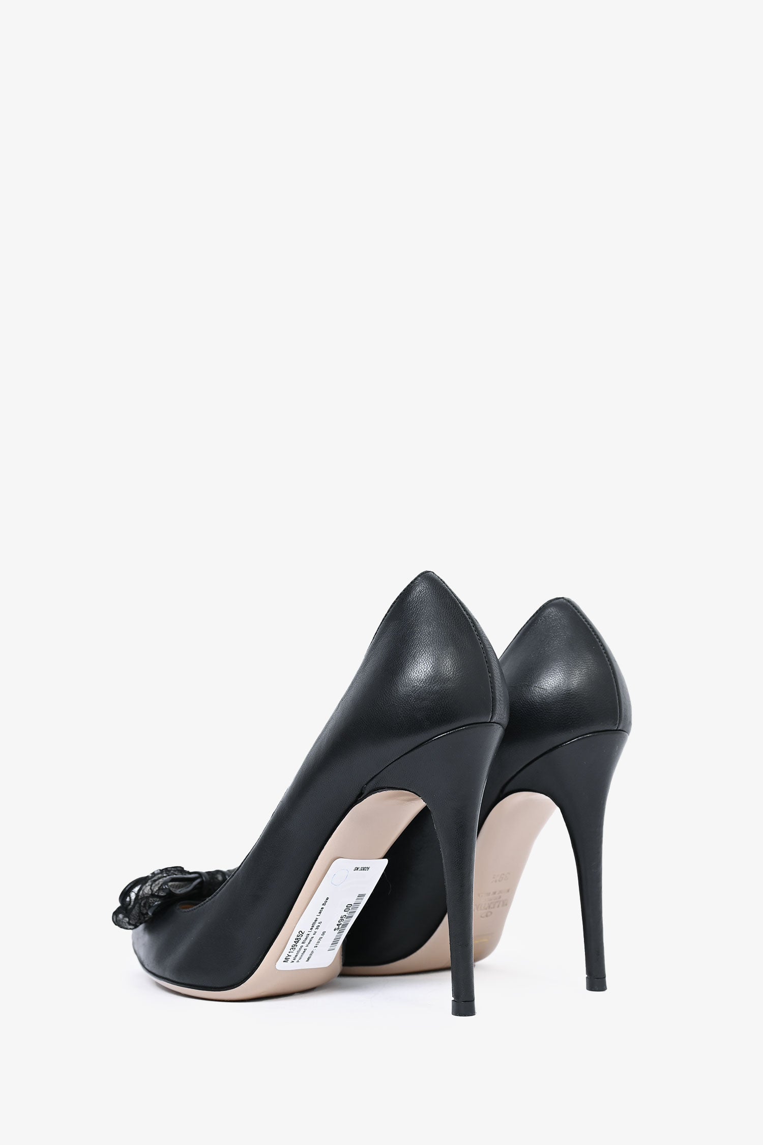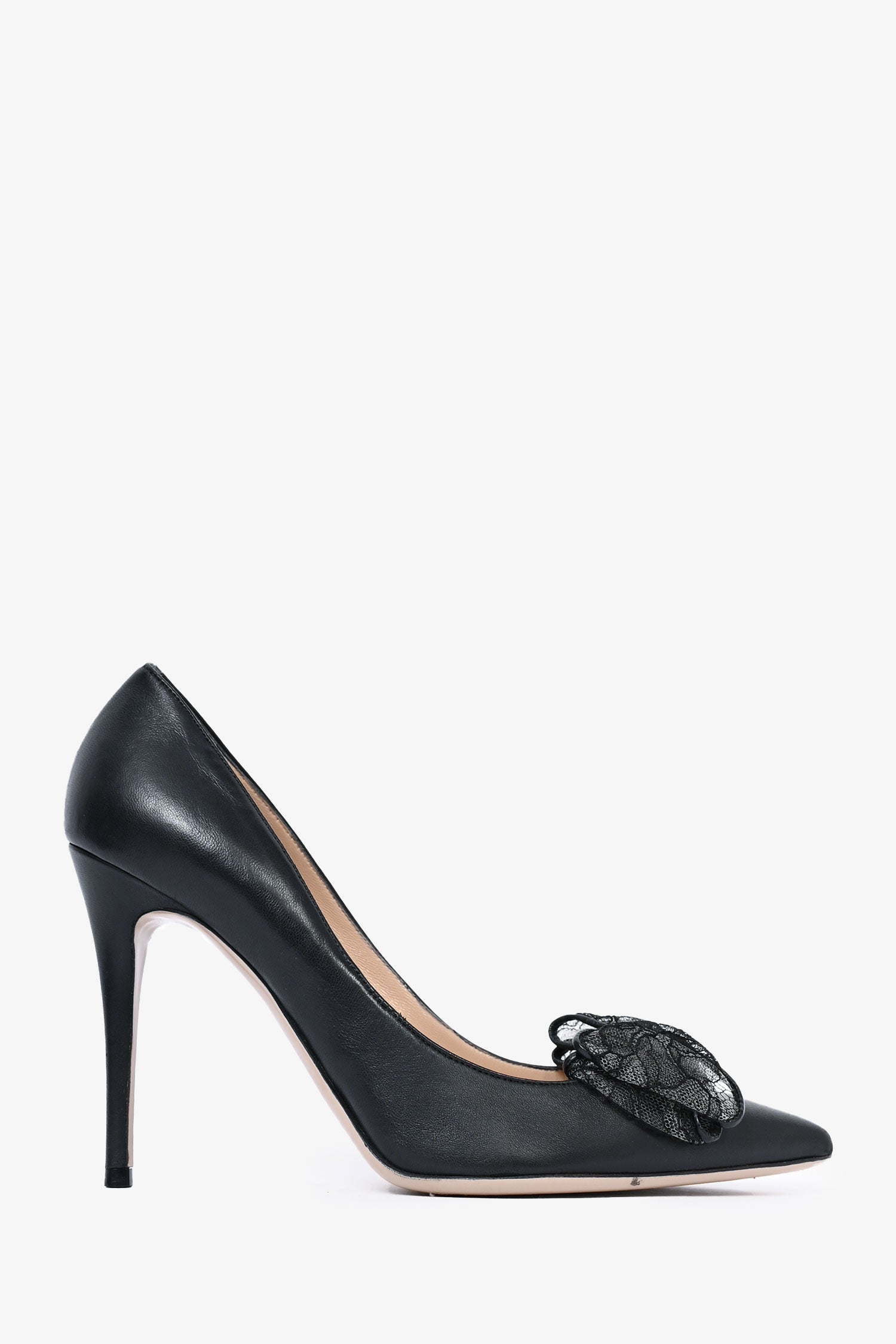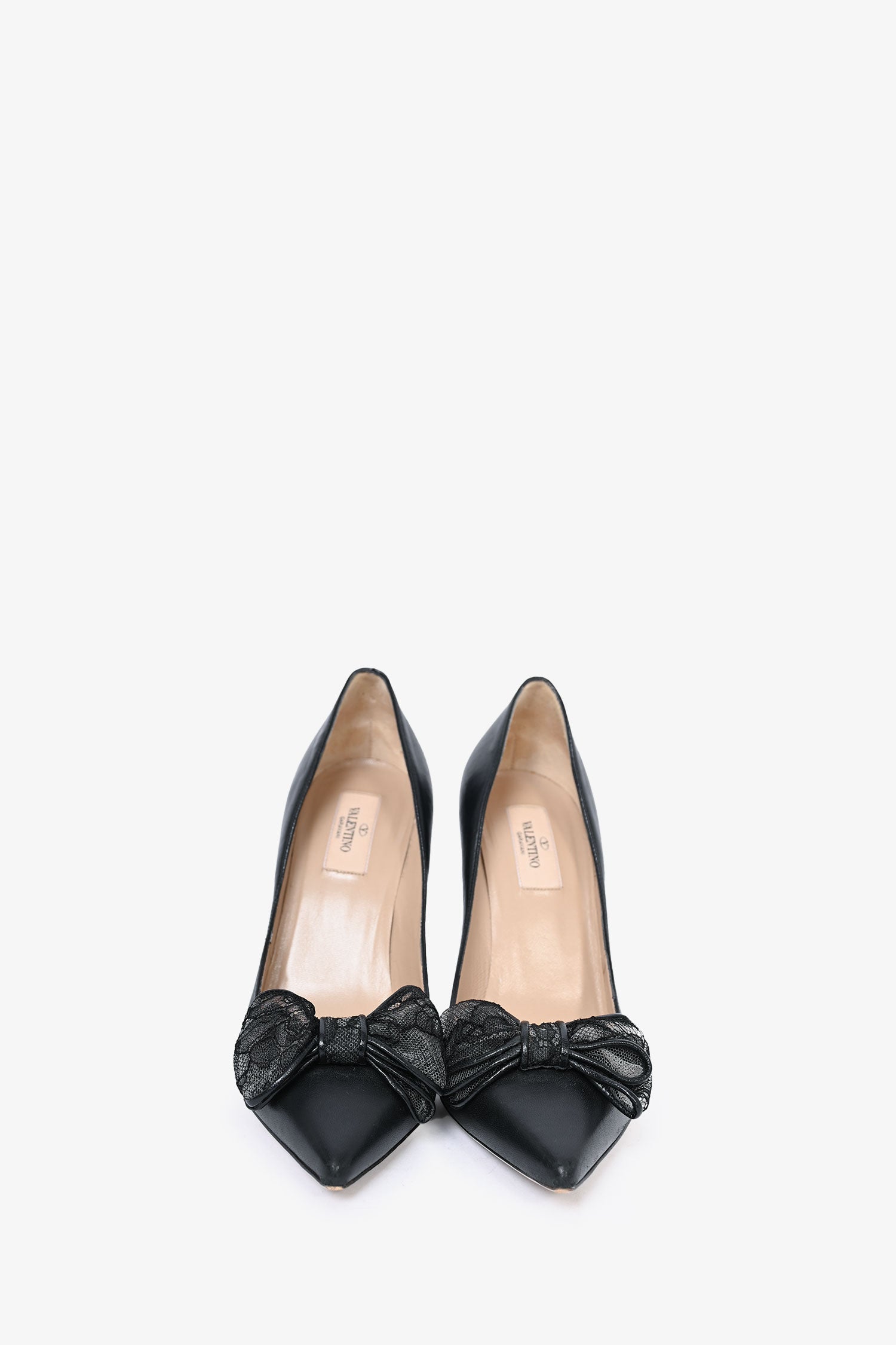 Refresh availabilityValentino Black Leather Lace Bow Pointed Heels. Pointed toe front. Stiletto heels.