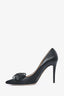 Valentino Black Leather Lace Bow Pointed Heels Size 39.5