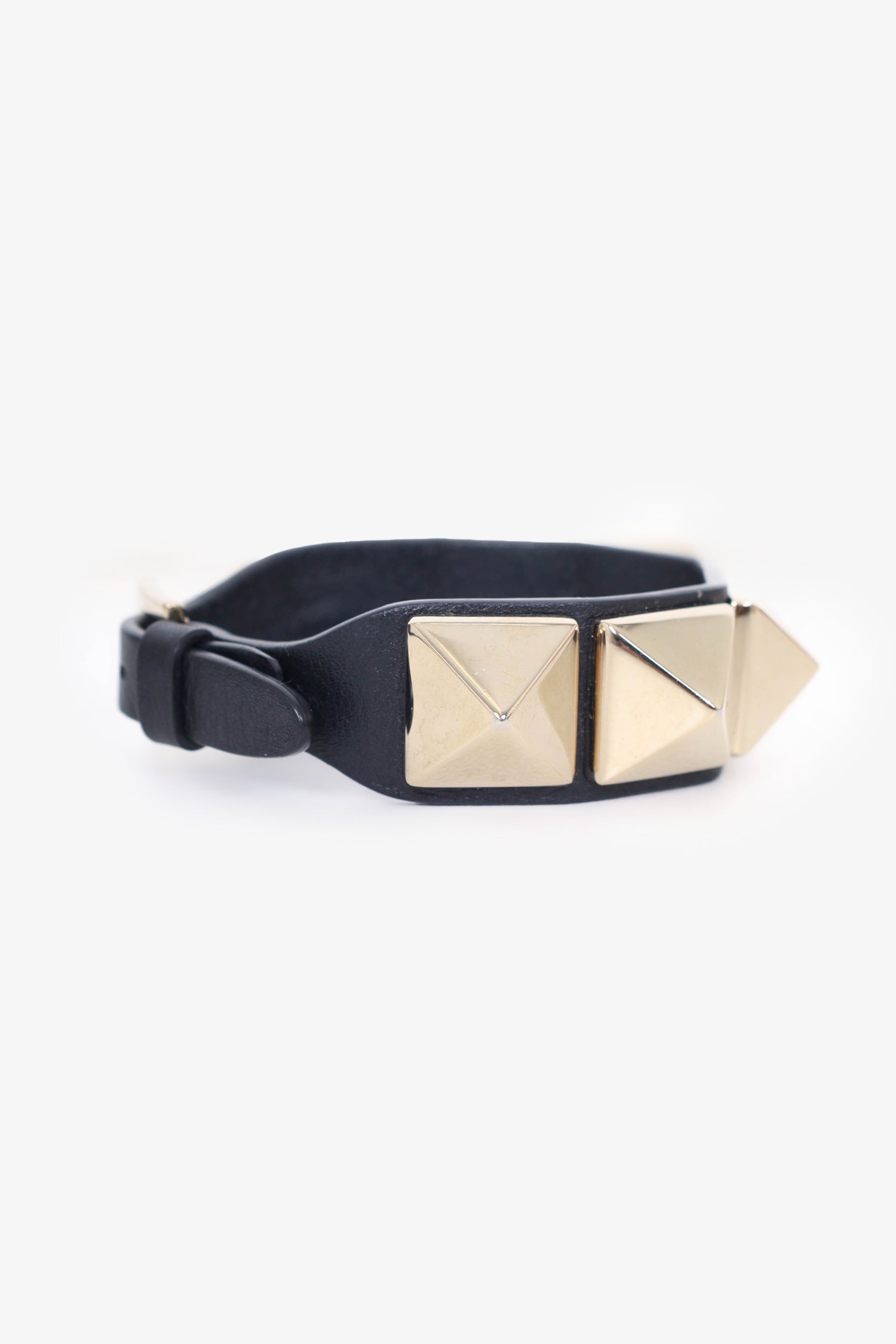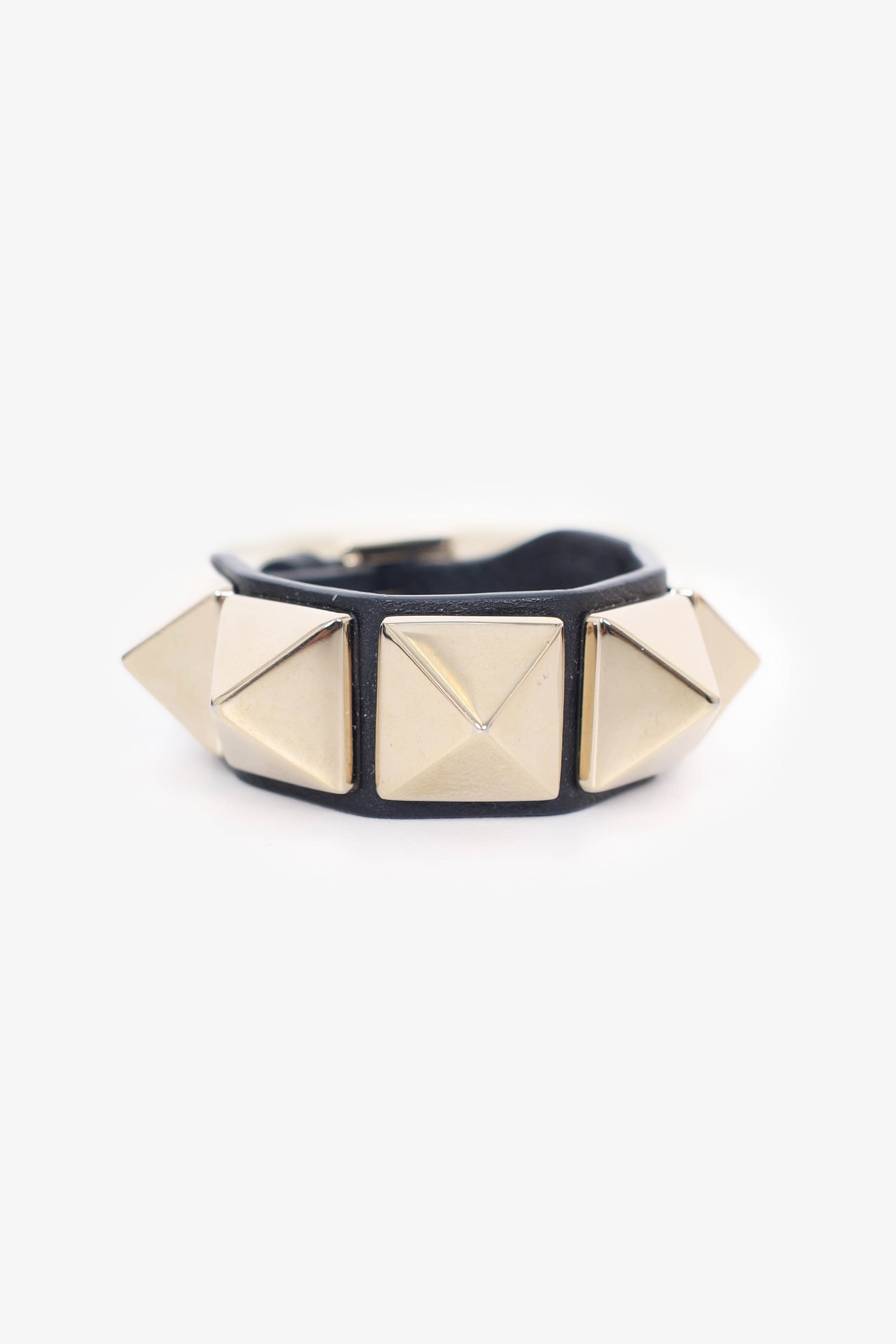 Refresh availabilityValentino Black Leather Large Rockstud Bracelet. Buckle closure. Gold-tone hardware.