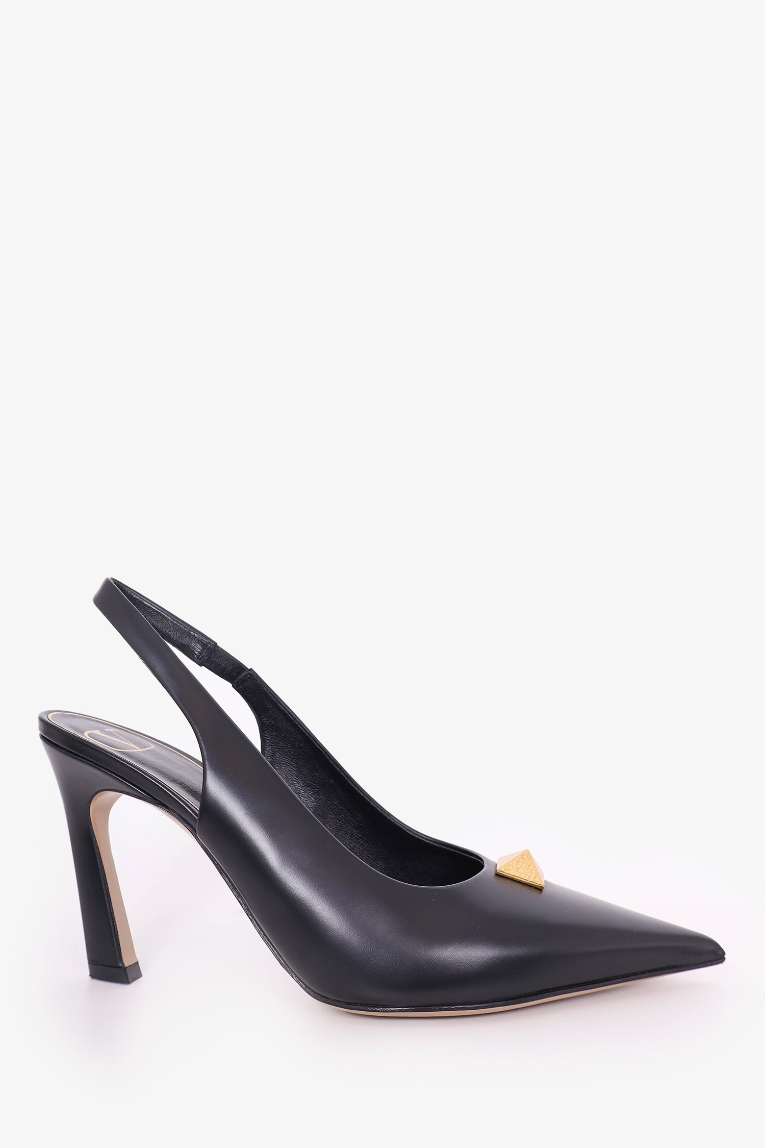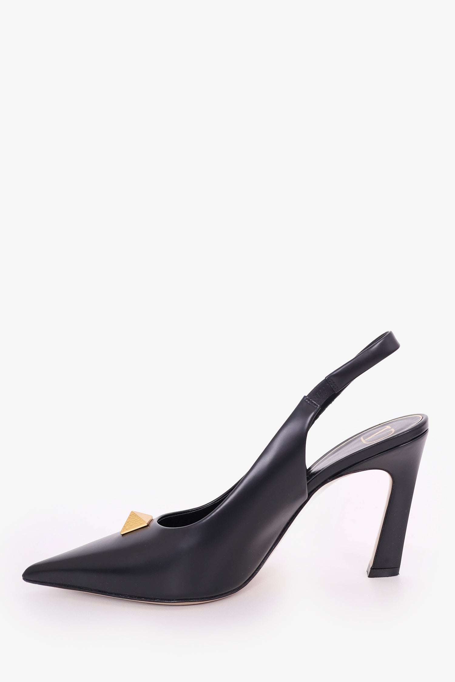 Refresh availabilityValentino Black Leather One Rockstud Slingback Heels. Pointed toe. Stiletto heel. Tonal stitching.