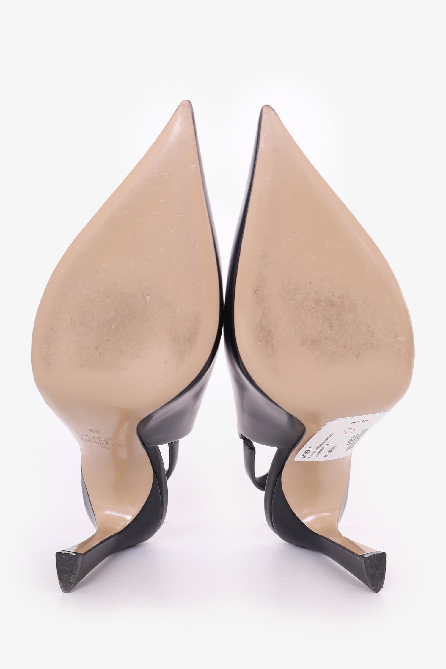 Valentino Black Leather One Rockstud Slingback Heels Size 39