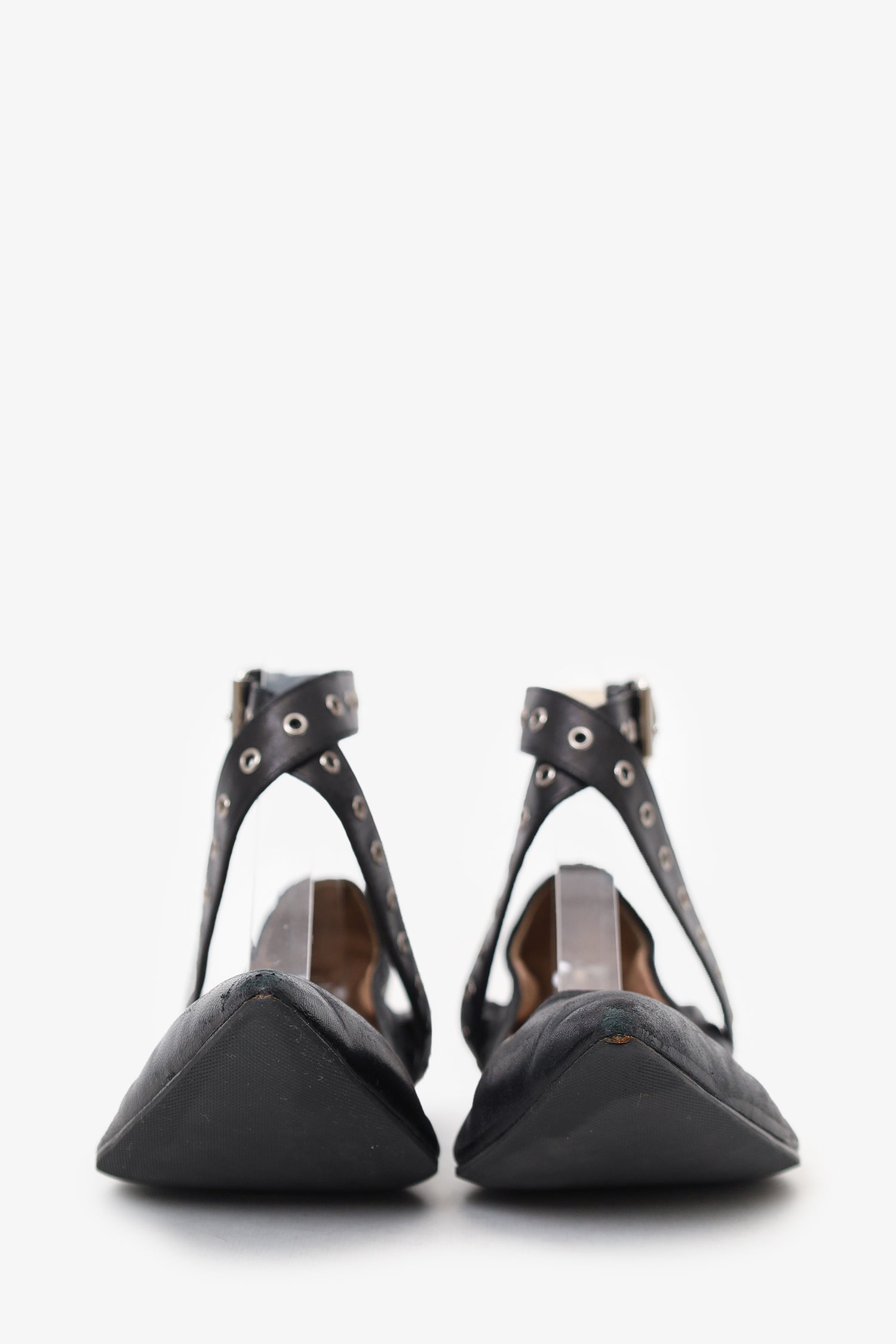 Valentino Black Leather Pointed Ankle Strap Flats Size 36.5 (As is)