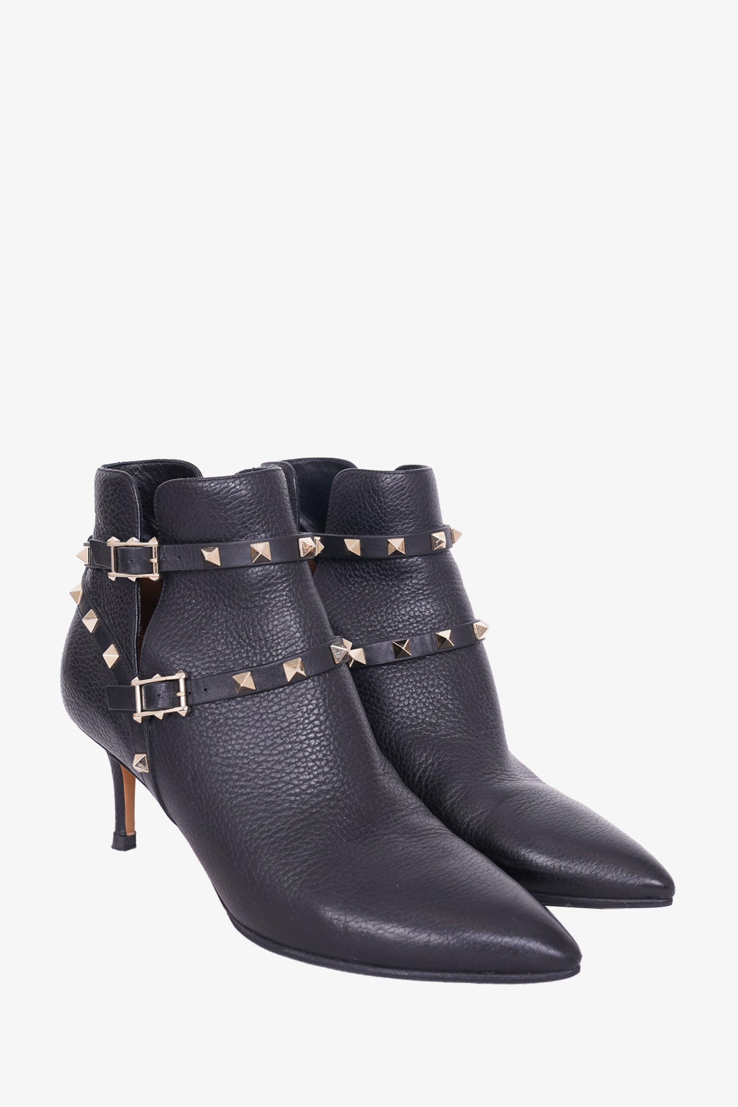 Valentino Black Leather Rockstud Ankle Boots Size 39