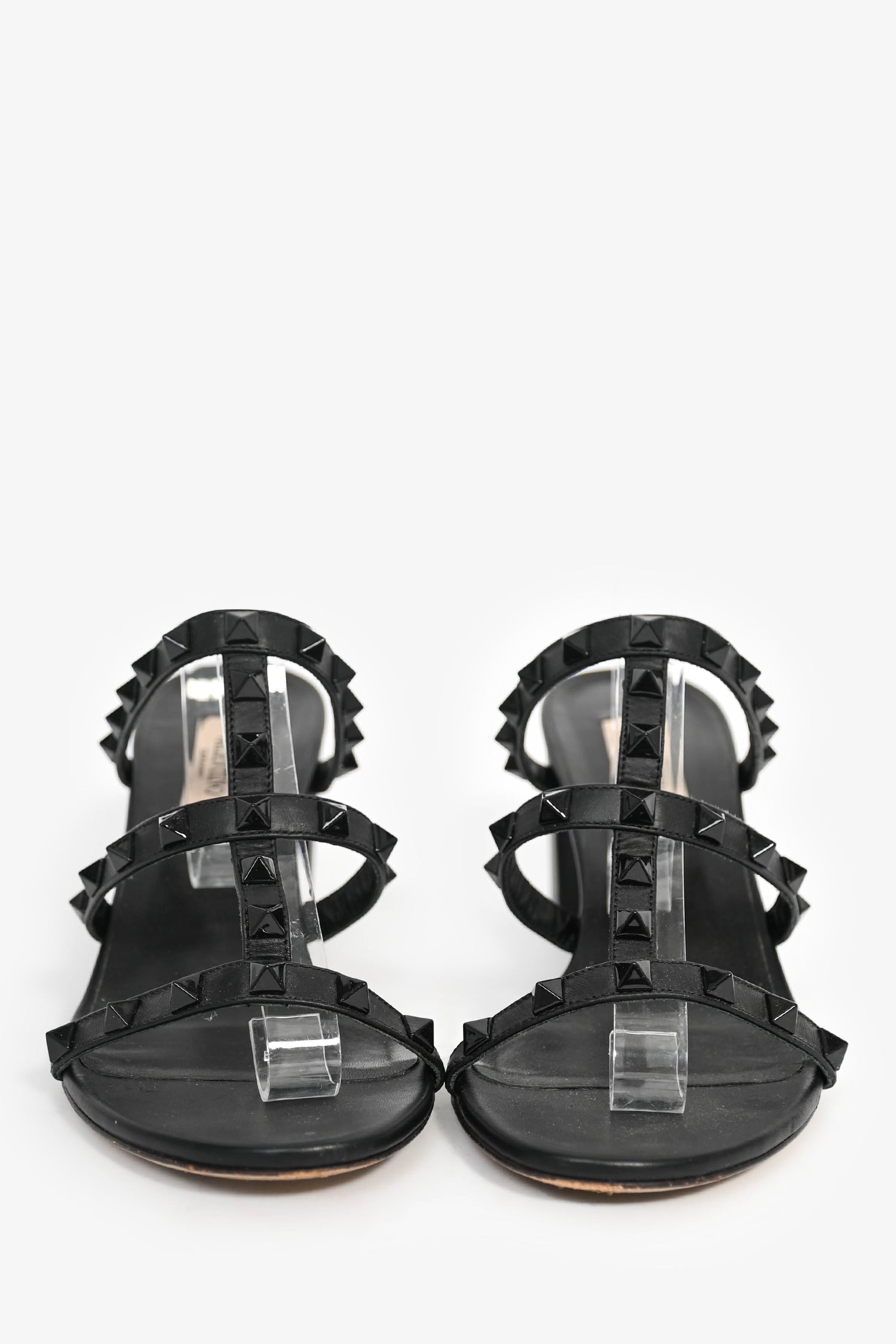 Valentino Black Leather Rockstud Cage Block Sandals Size 38