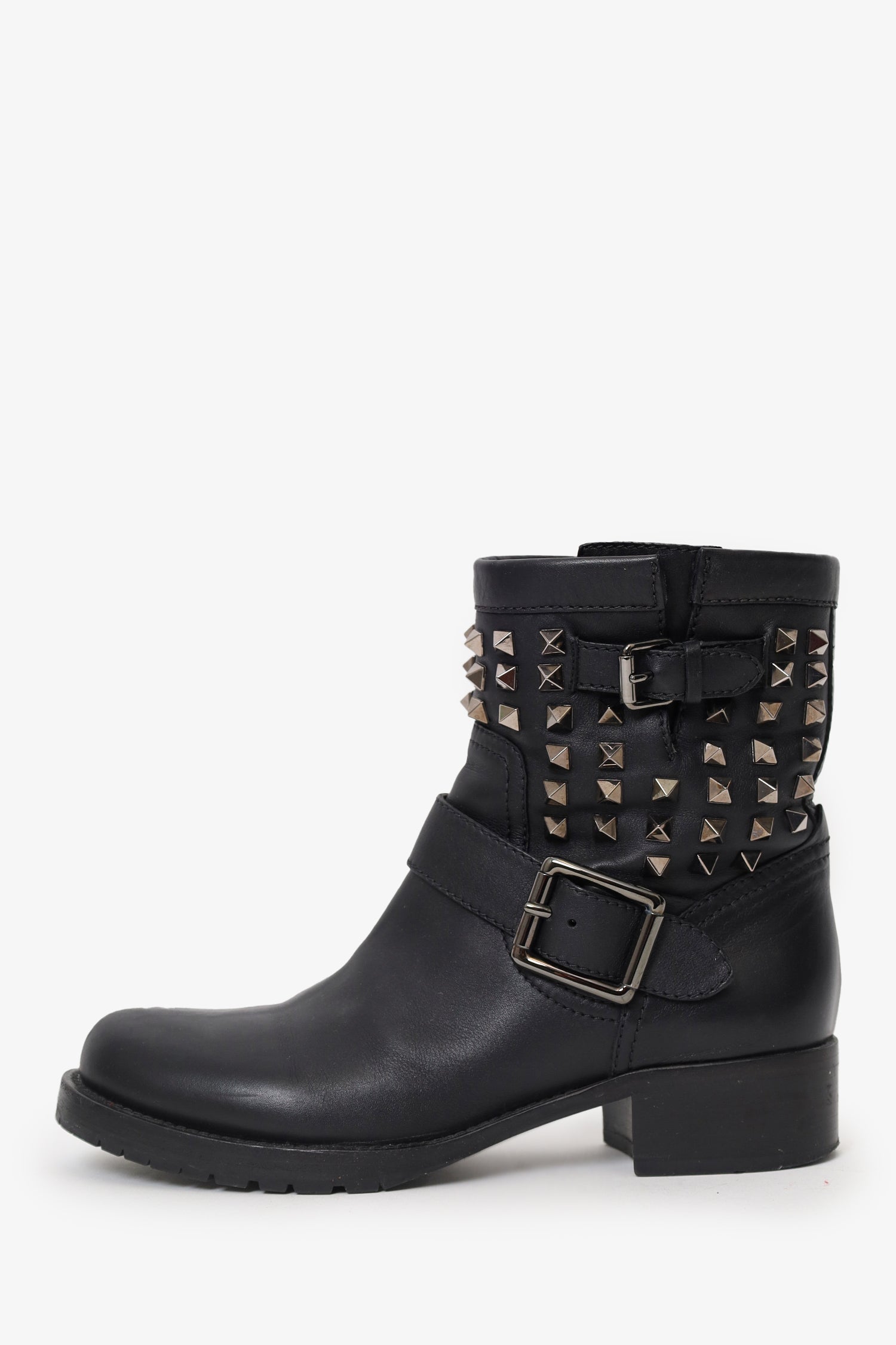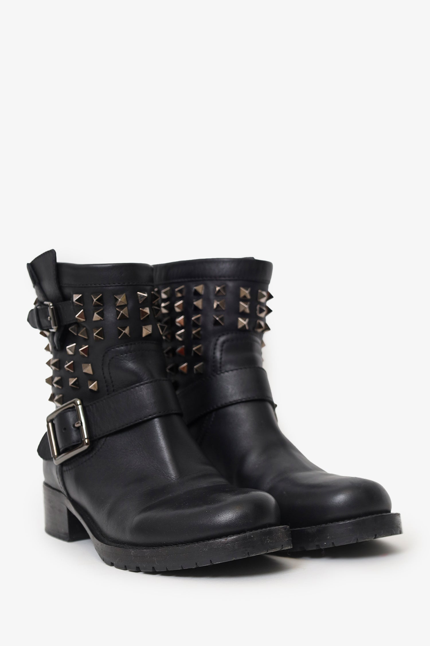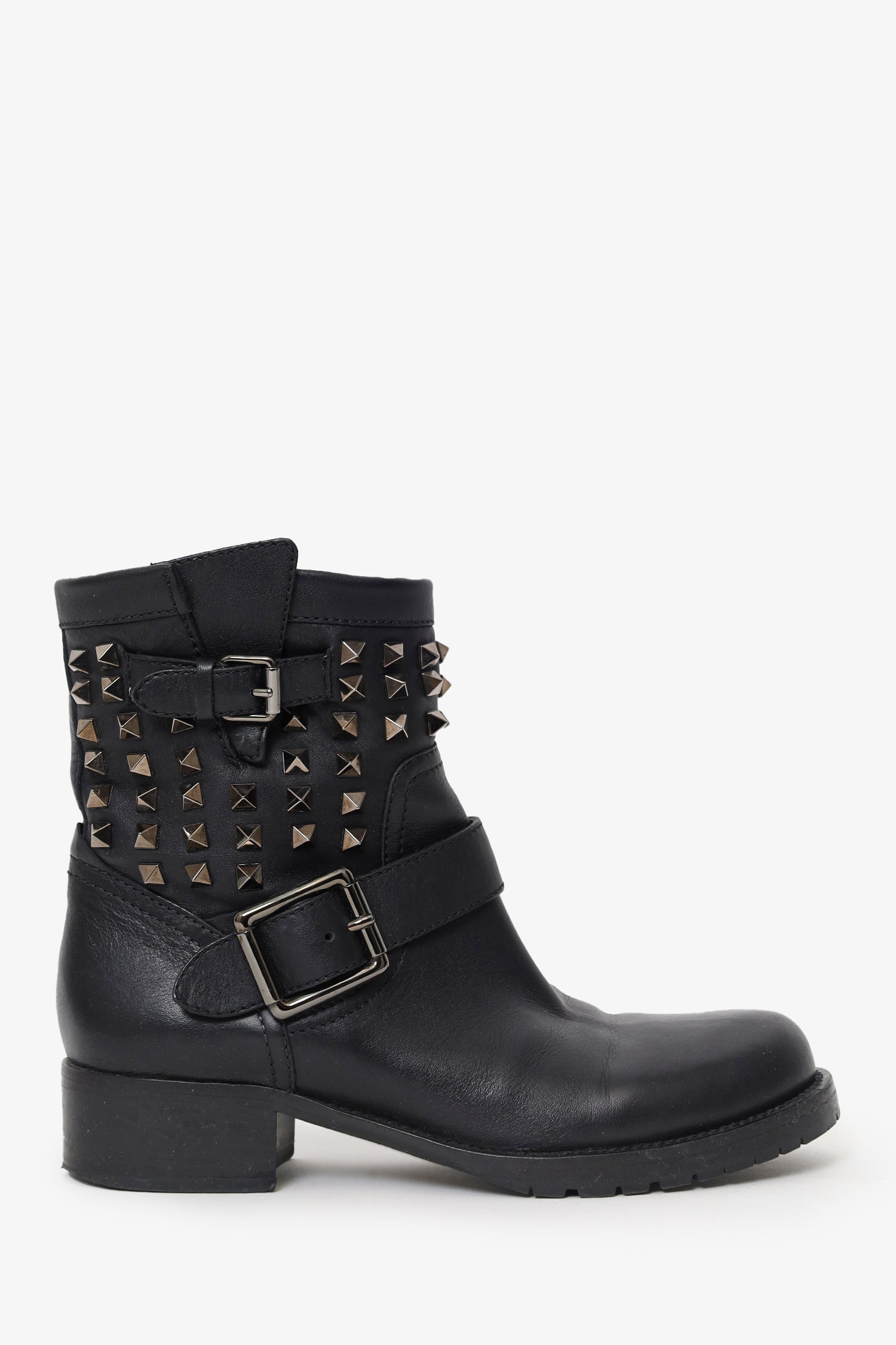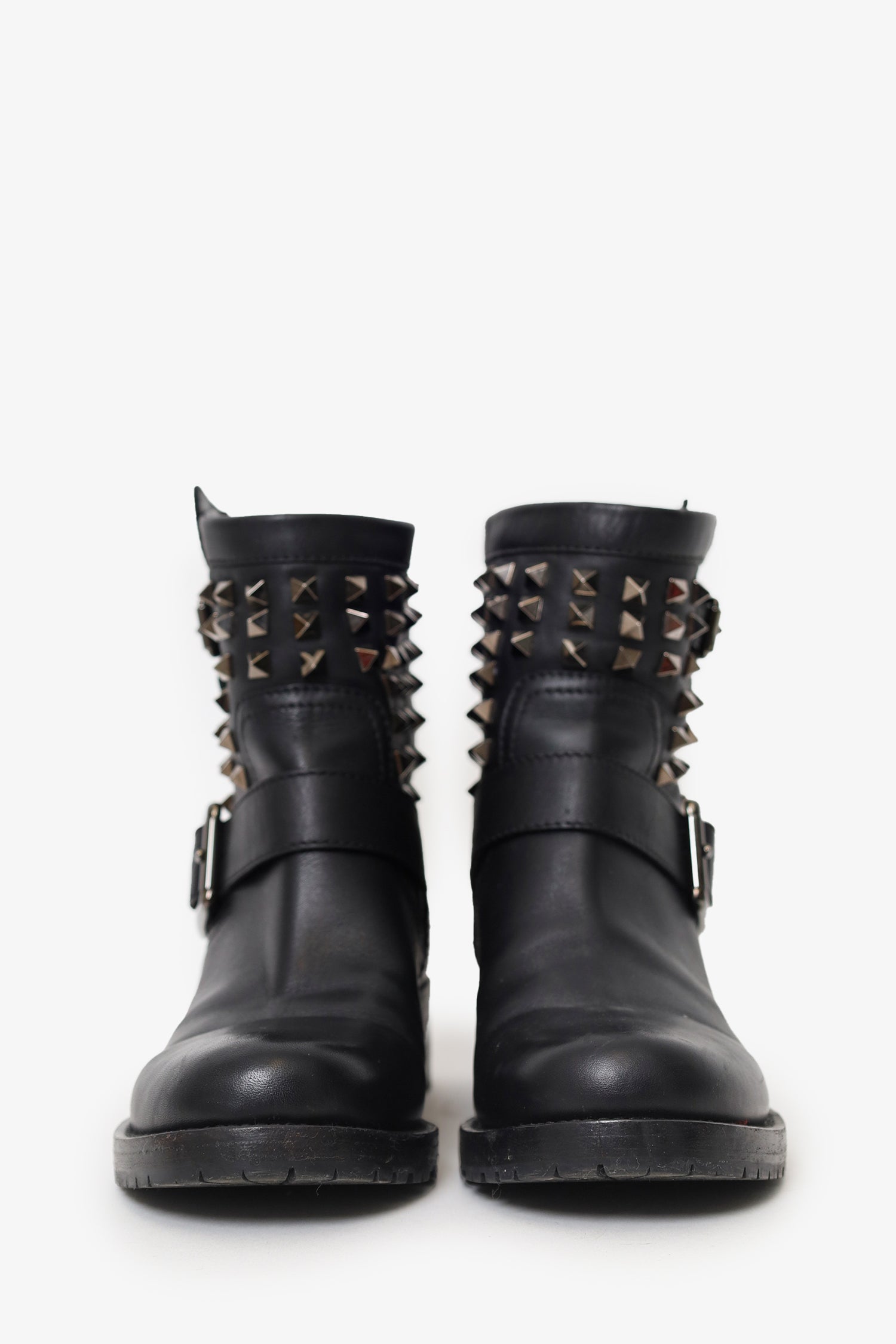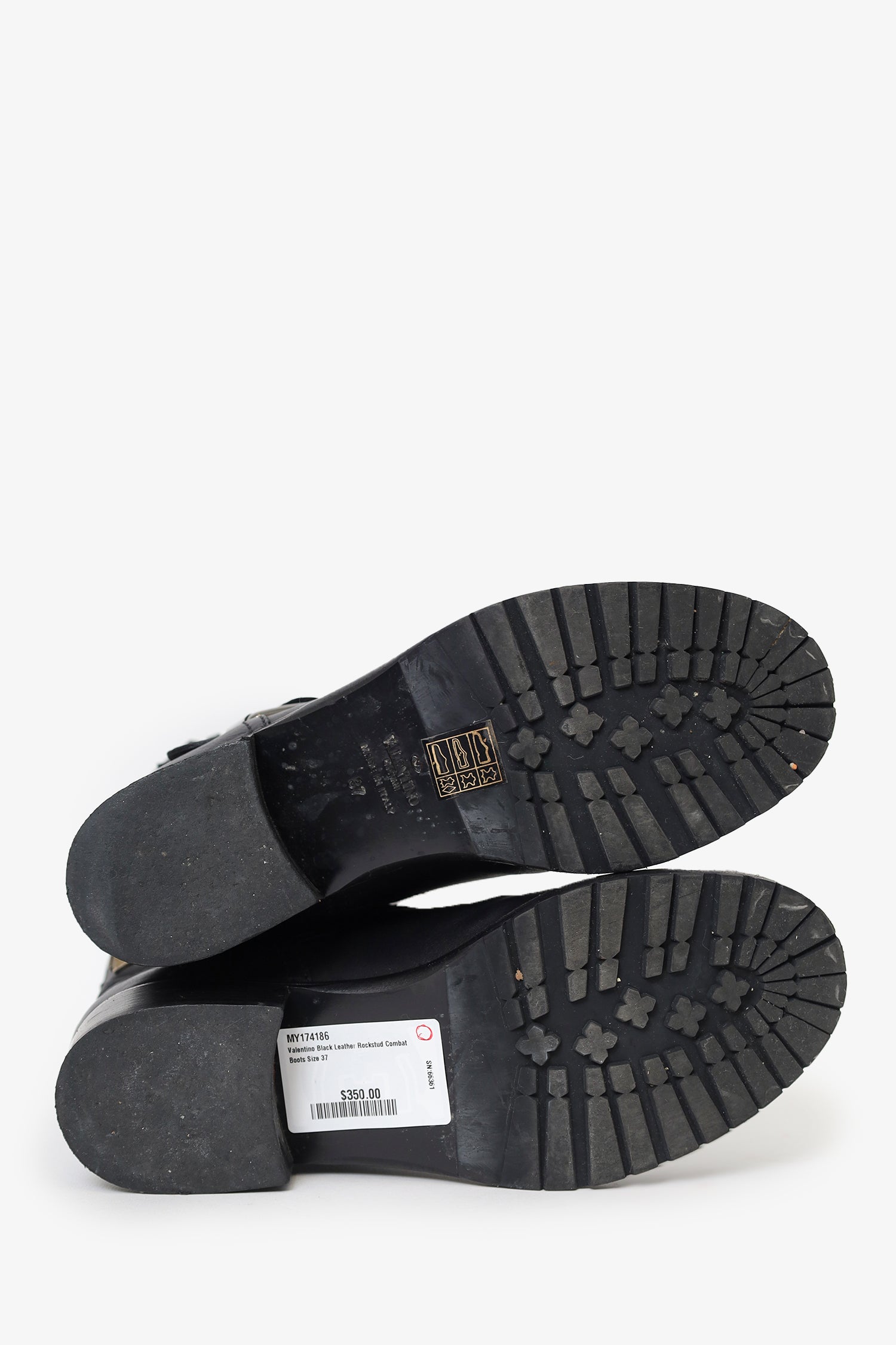 Valentino Black Leather Rockstud Combat Boots Size 37