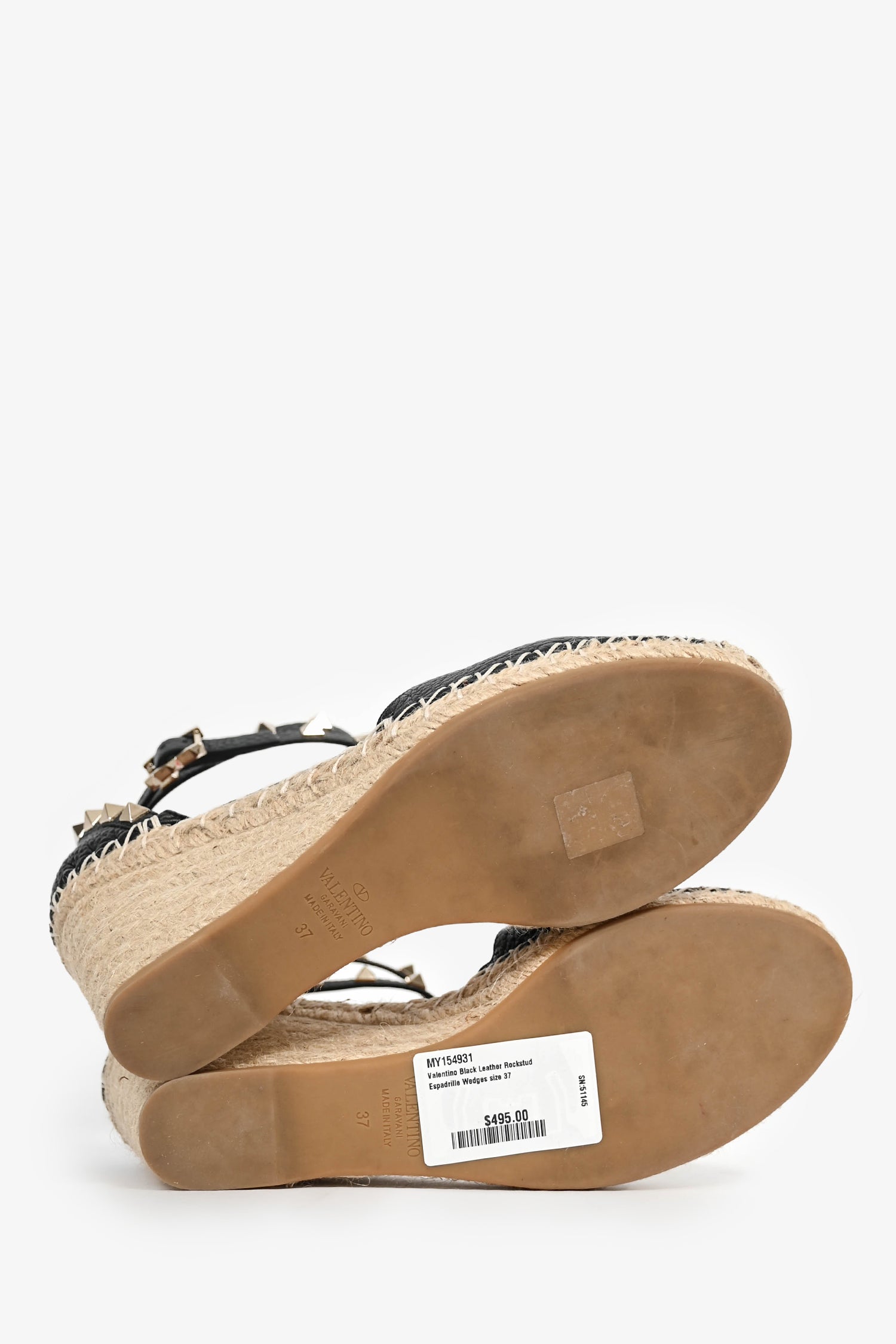 Valentino Black Leather Rockstud Espadrille Wedges Size 37