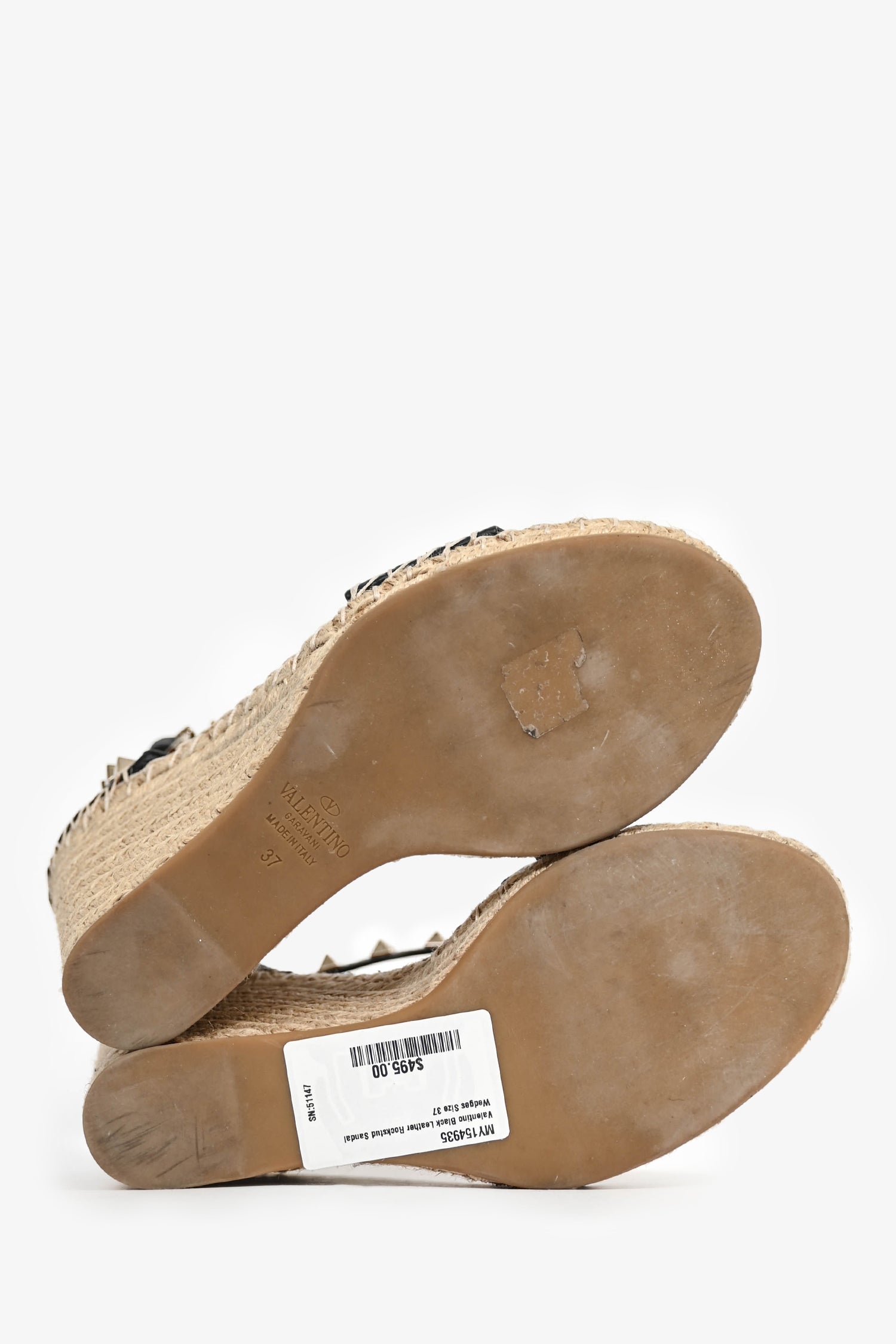 Valentino Black Leather Rockstud Sandal Wedges Size 37