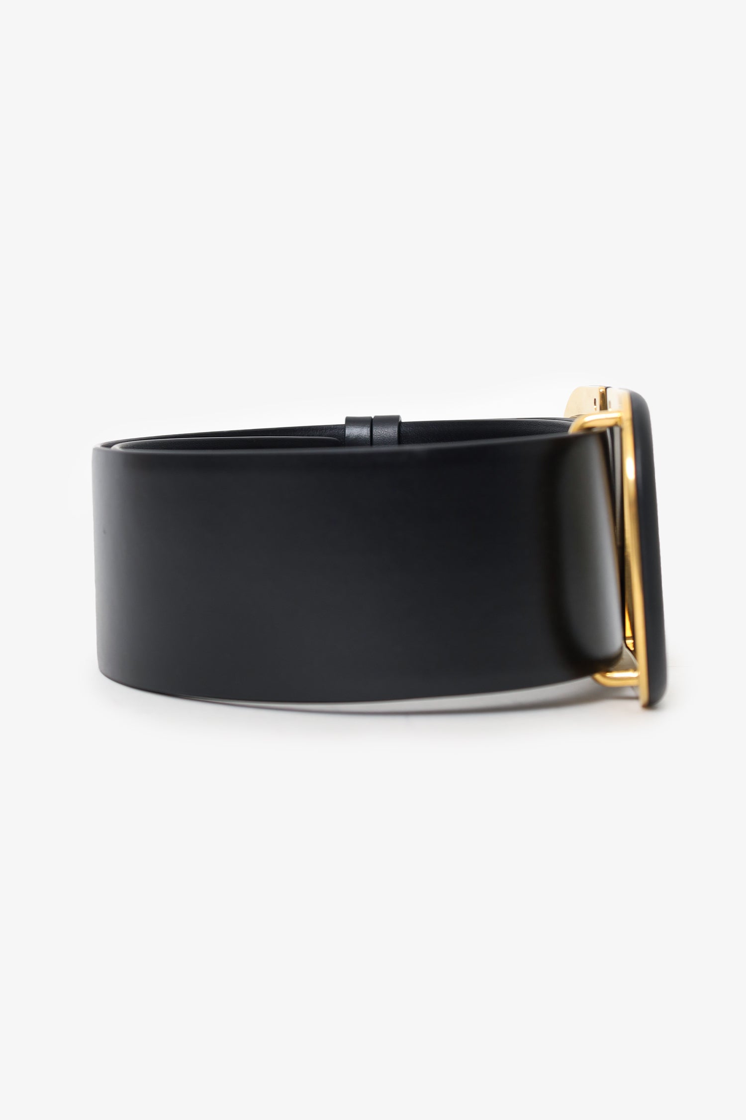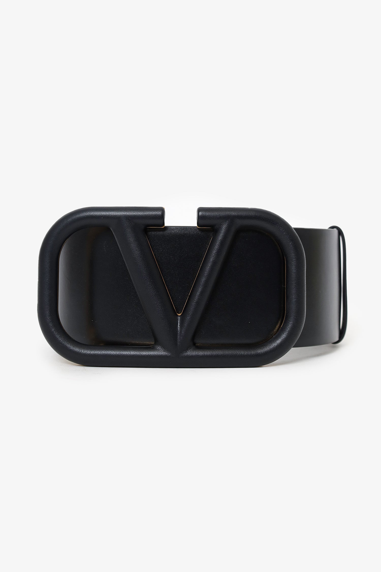 Valentino Black Leather V-Logo Wide Waist Belt
