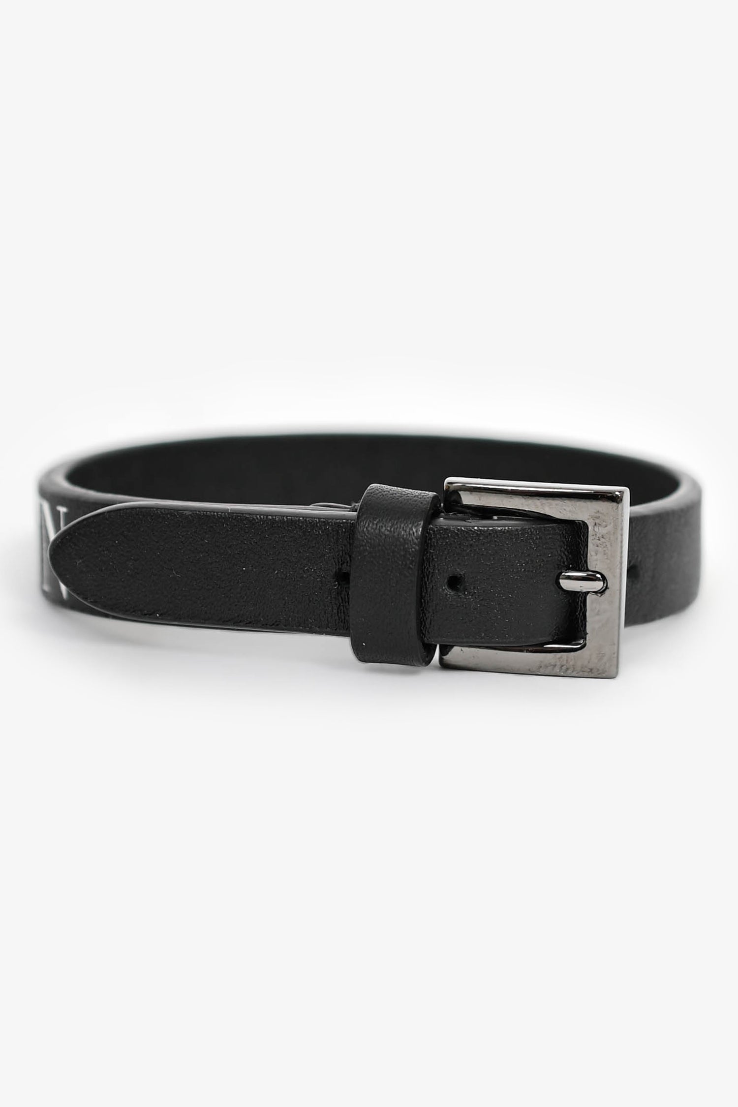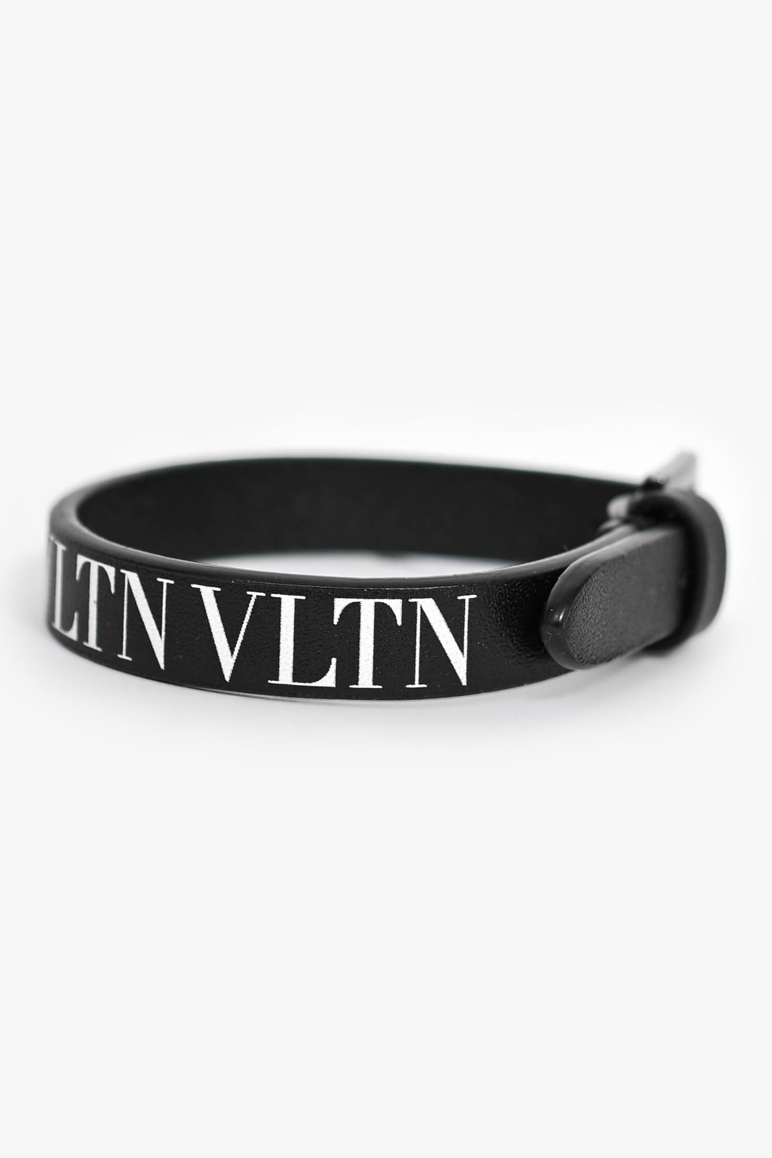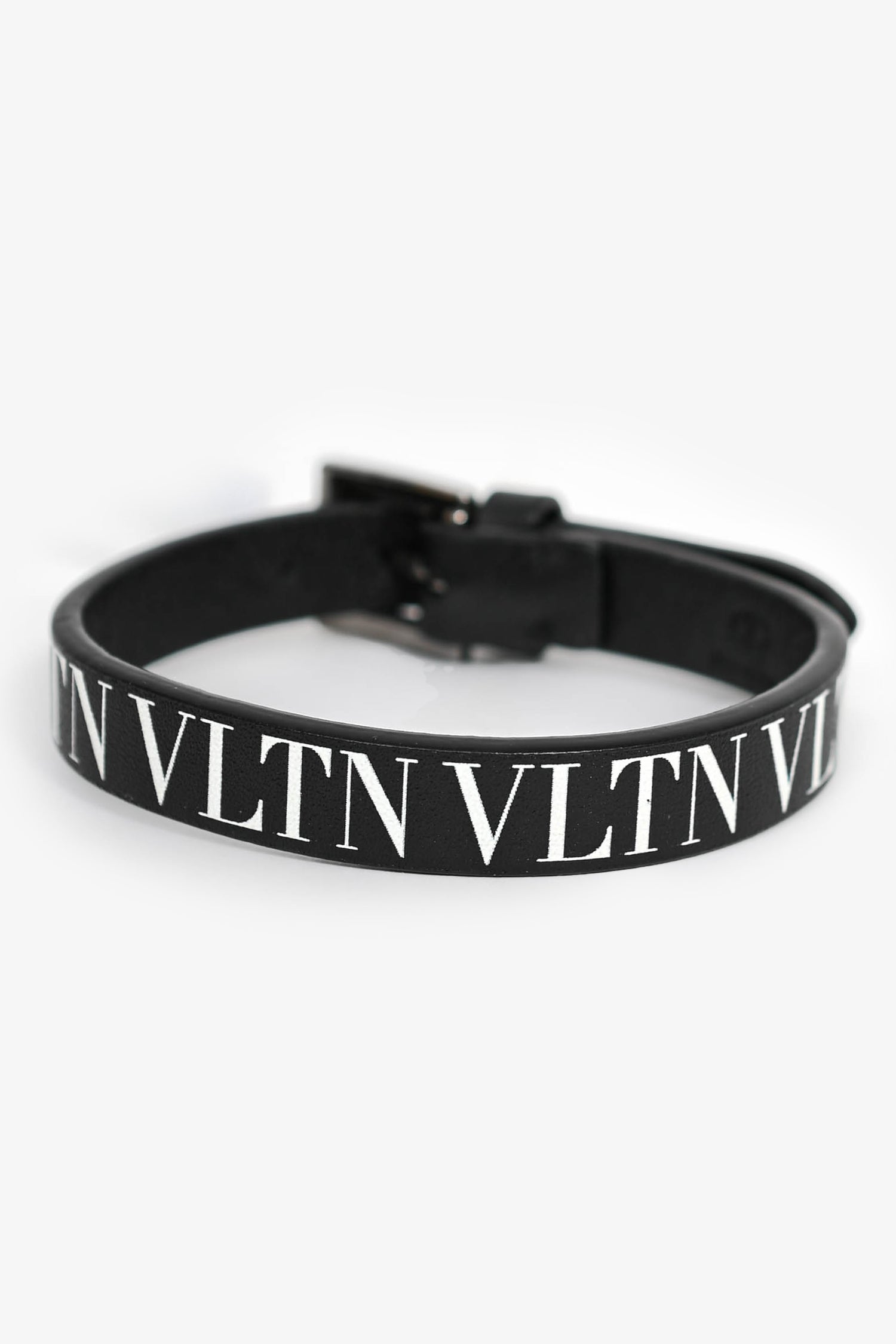 Refresh availabilityValentino Black Leather 'VLTN' Bracelet. Adjustable buckle closure. Black-tone hardware. White brand logo print throughout. Tonal stitching.
