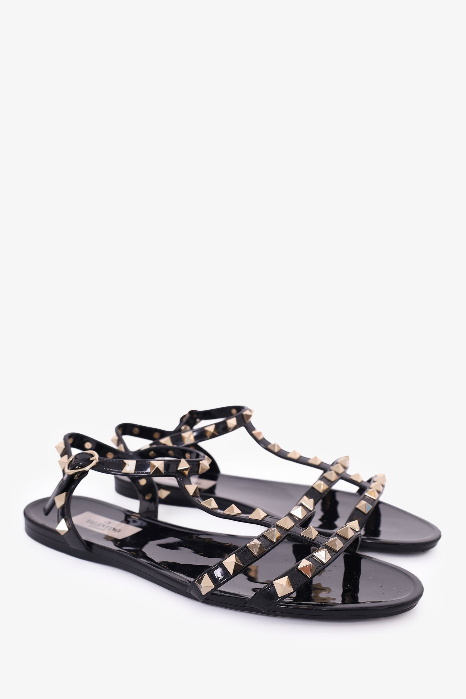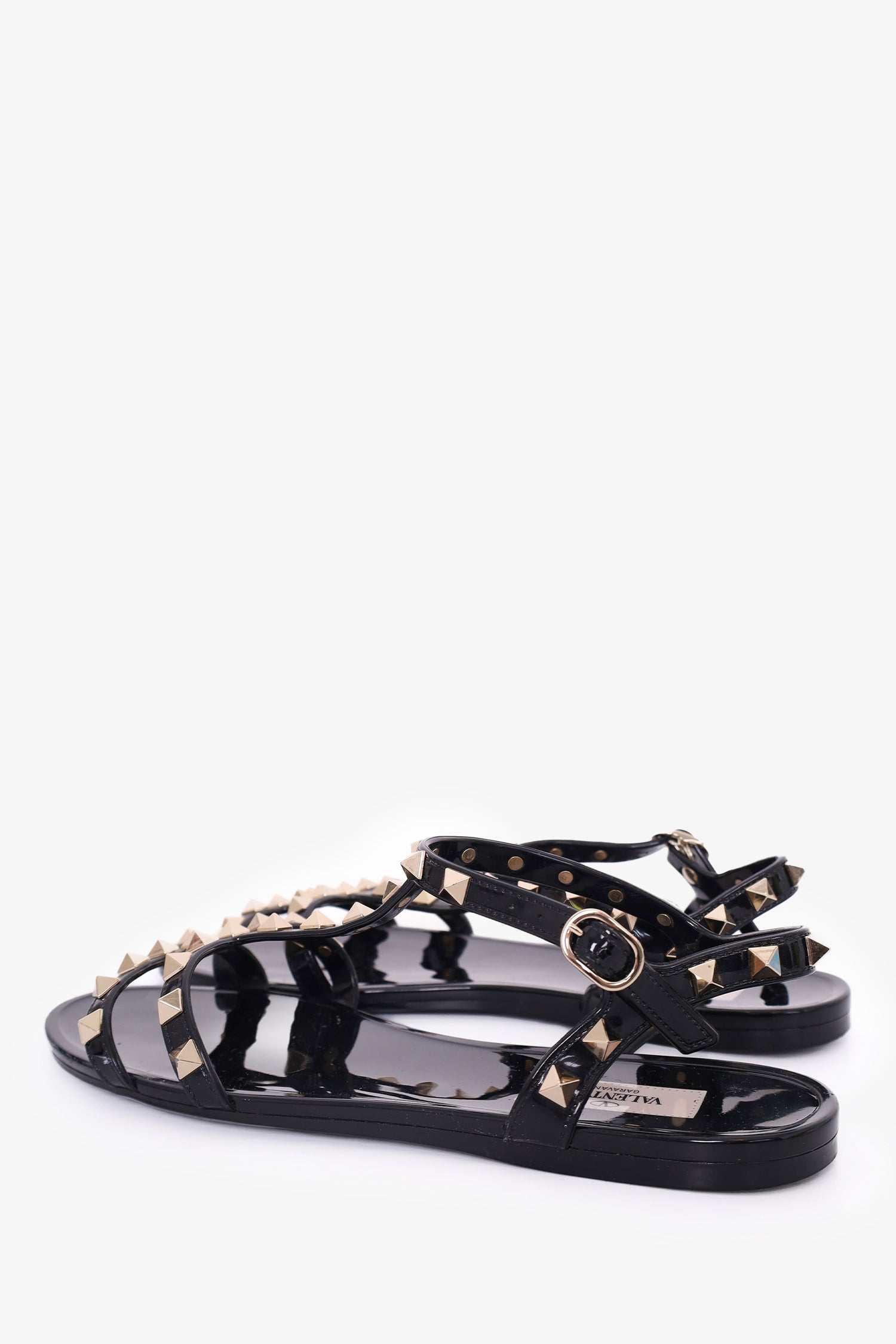 Valentino Black Rubber Rockstud Cage Sandals Size 38