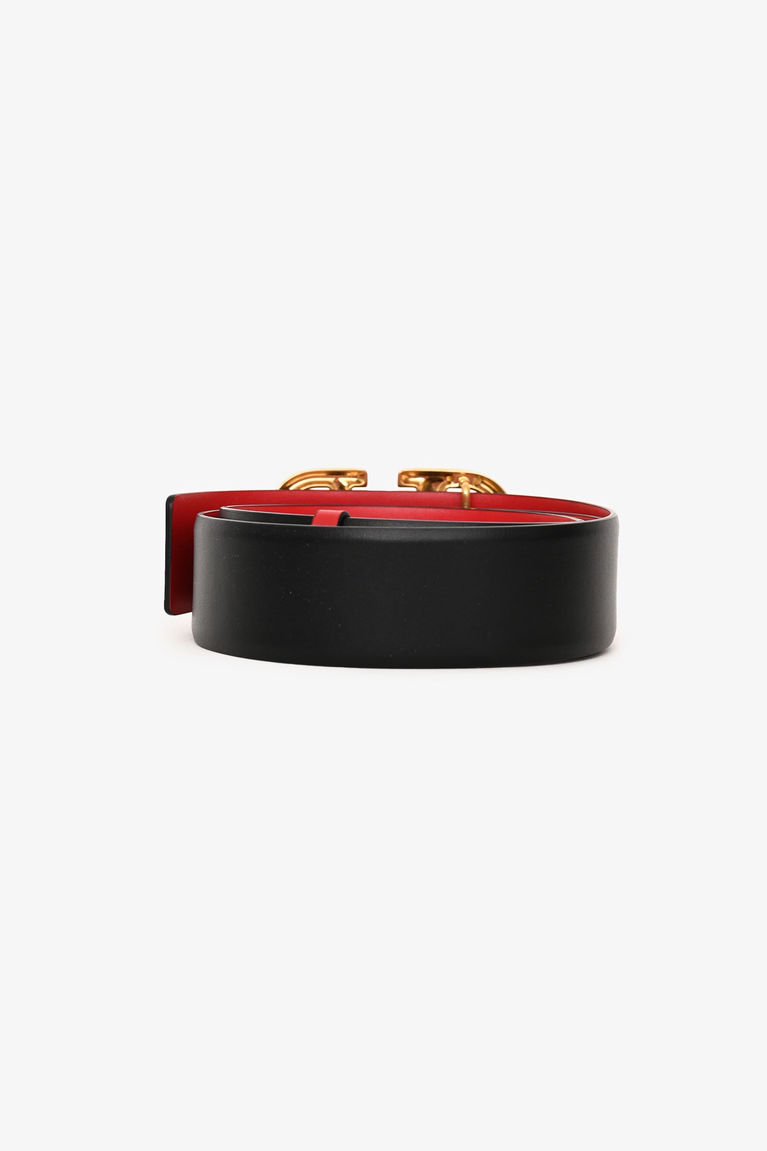 Refresh availabilityValentino Black/Red Calfskin Reversible V Logo Signature Belt. Adjustable pull-through closyre. Gold-tone hardware. Tonal stitching.