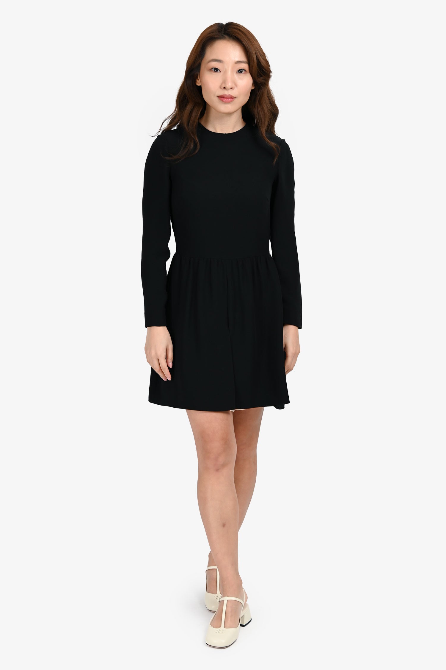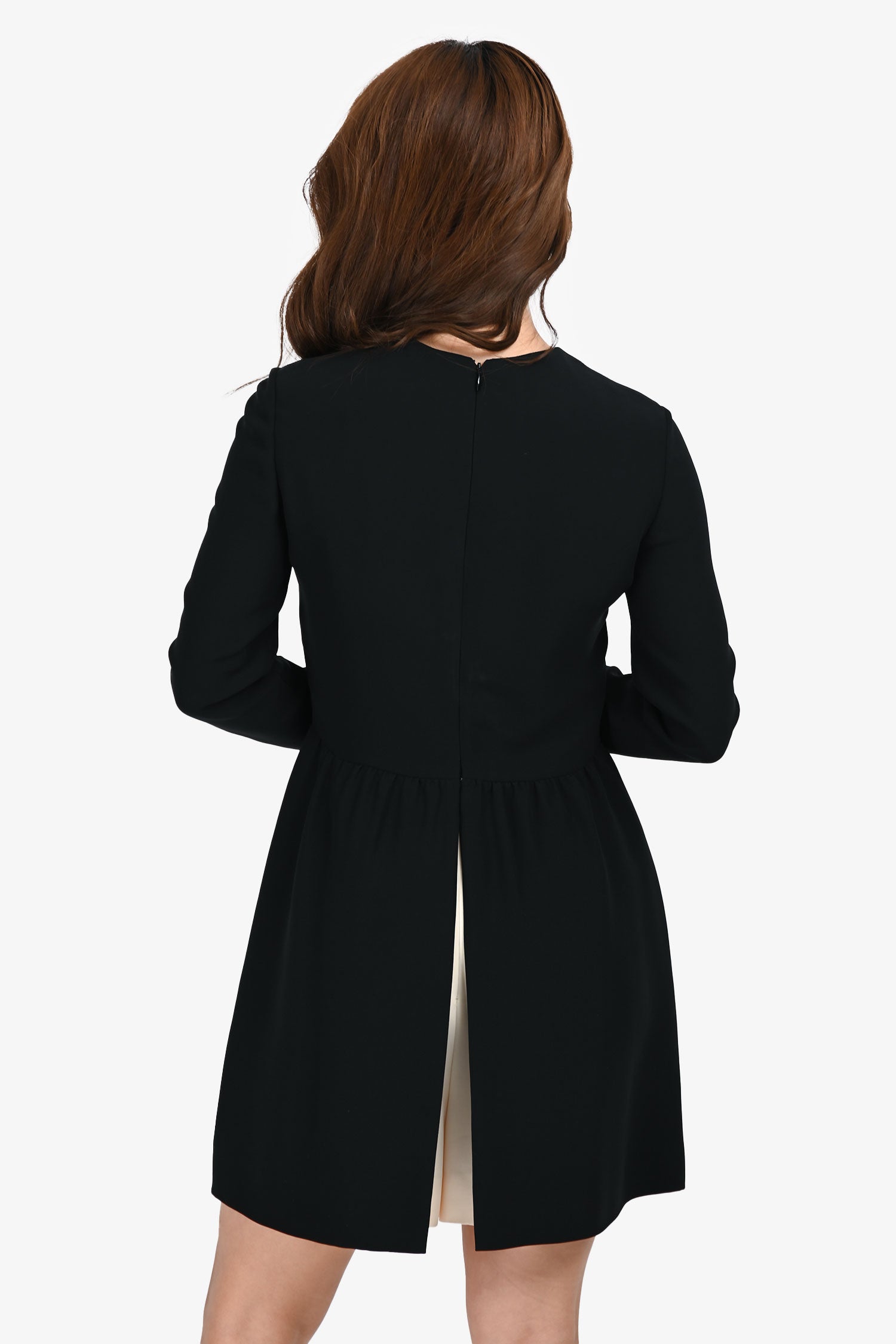 Refresh availabilityValentino Black/White Silk Long Sleeves Romper. Pull-on. Round neckline. Hidden zipper and hook-and-eye closure in the back. 2 exterior pockets on the sides. Tonal hardware. Tonal stitching.